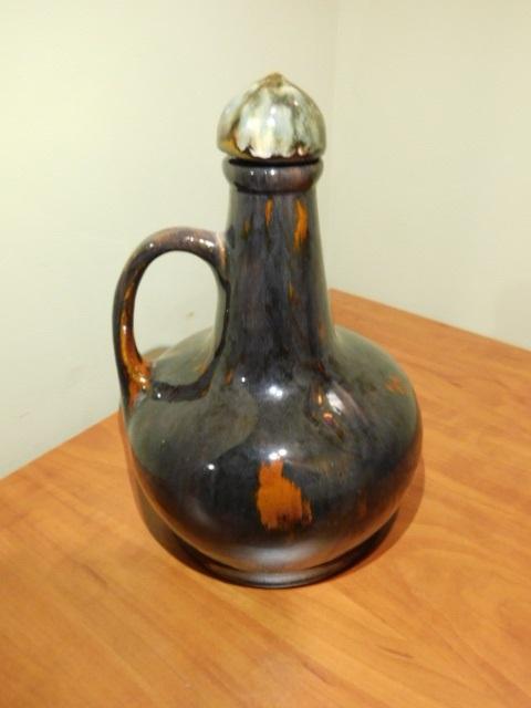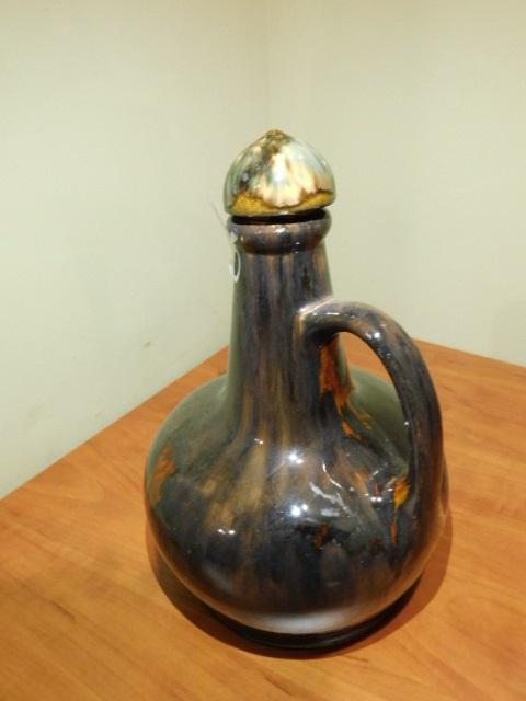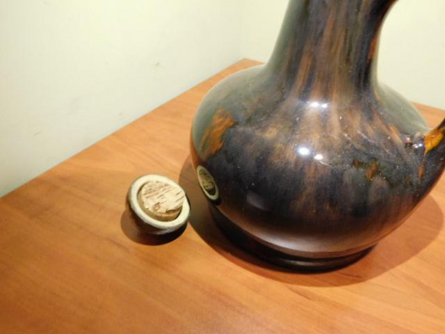 Porcelain Liquer Bottle High Glaze Finish with Music Box cork is damaged. Very colorful and heavy