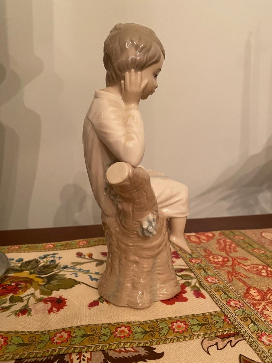 Lladro LITTLE BOY THINKING w BOOK SITTING ON TREE STUMP #4876 ISS 1974 RET 1993