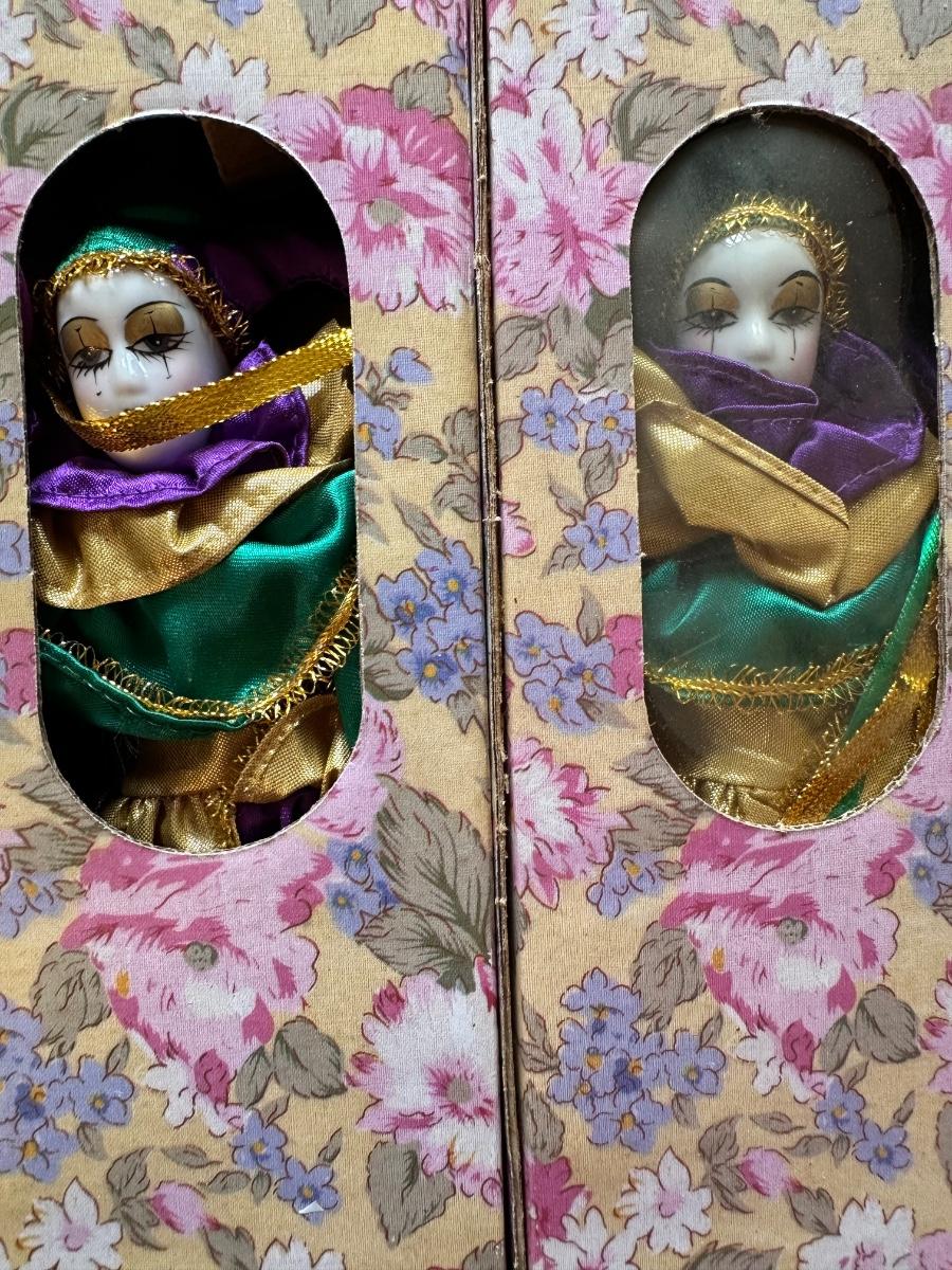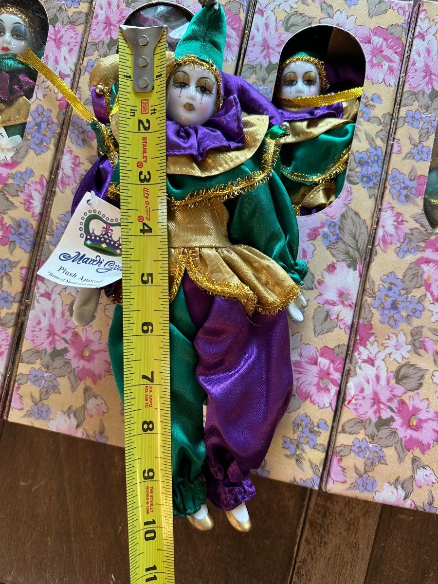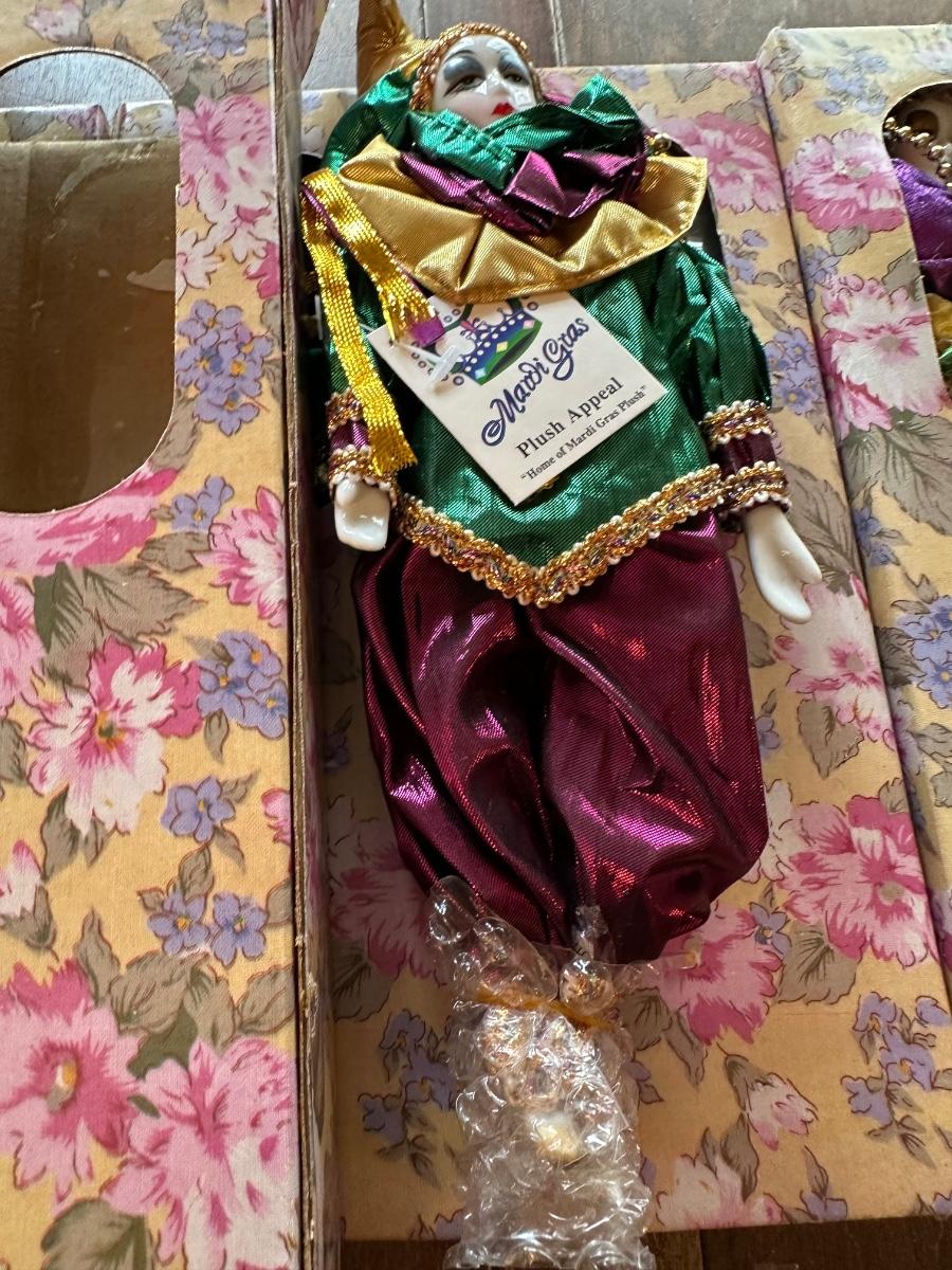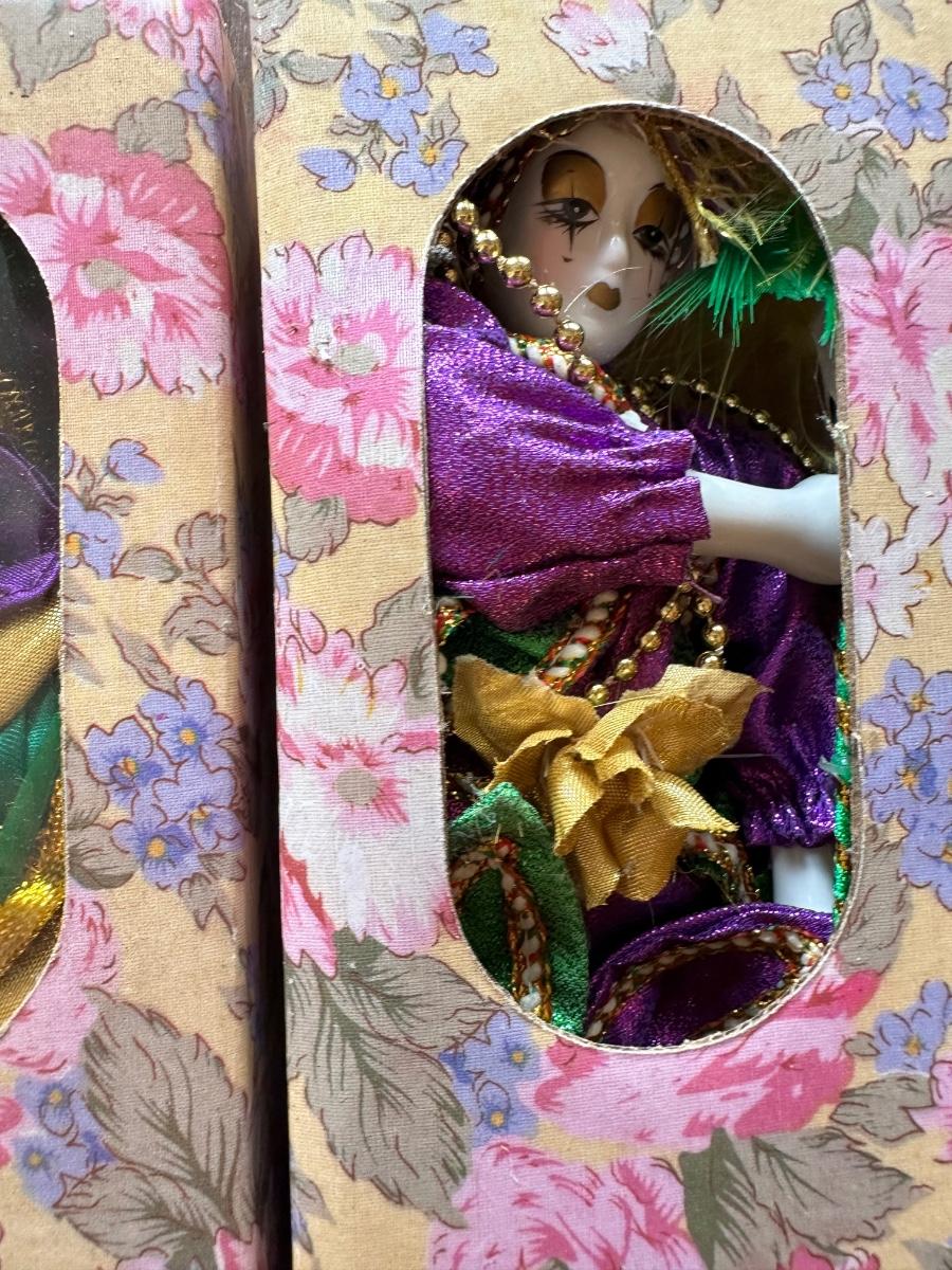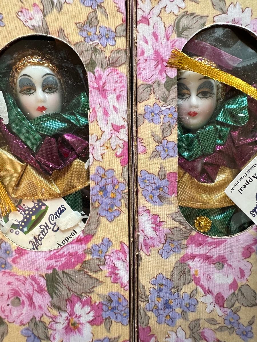 Porcelain Mardi Gras Jester Dolls in Original Boxes