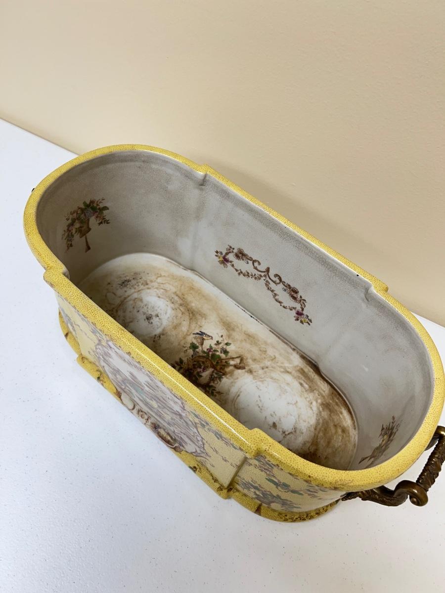 Porcelain Planter With Brass Handles