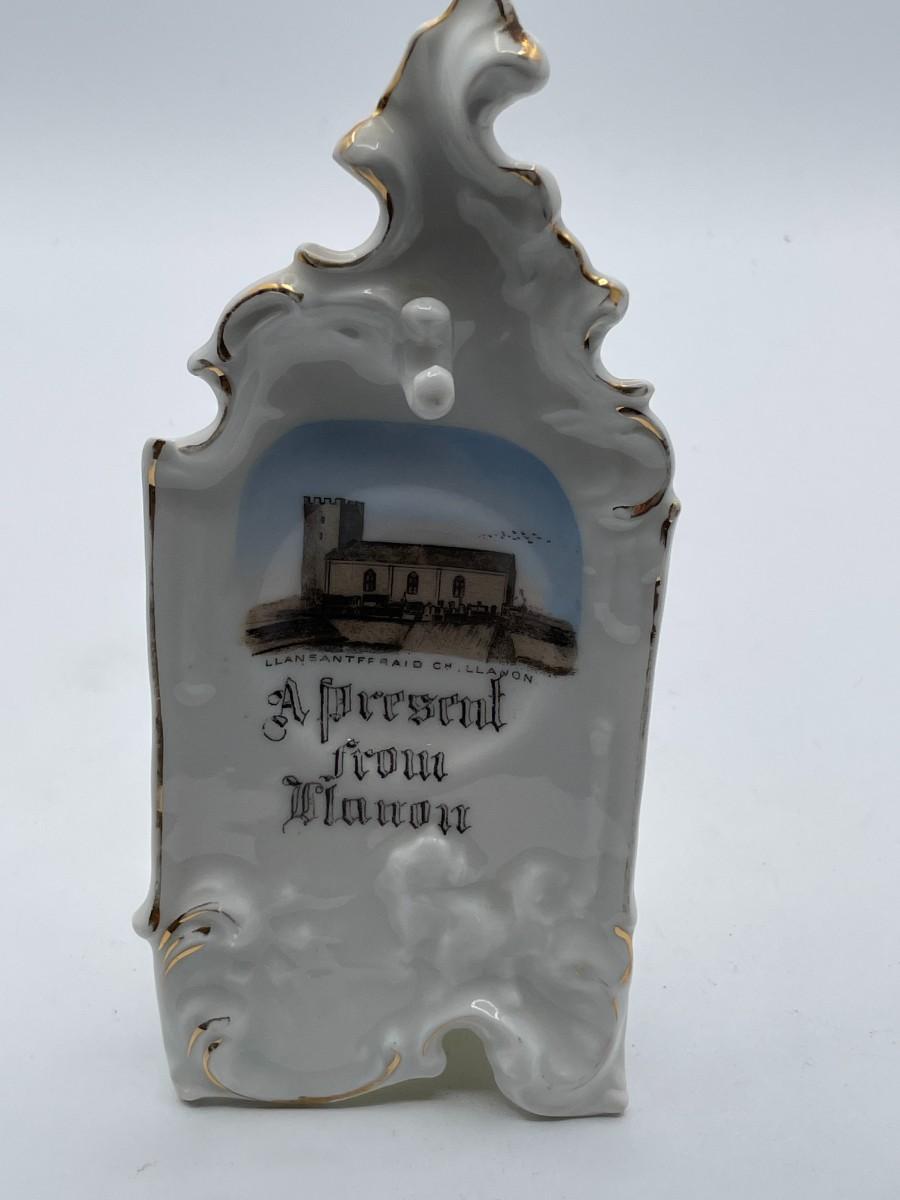 Porcelain Pocket Watch Holder; Front says " A present from Llanon. 7.5" x 3.5" w/hook.