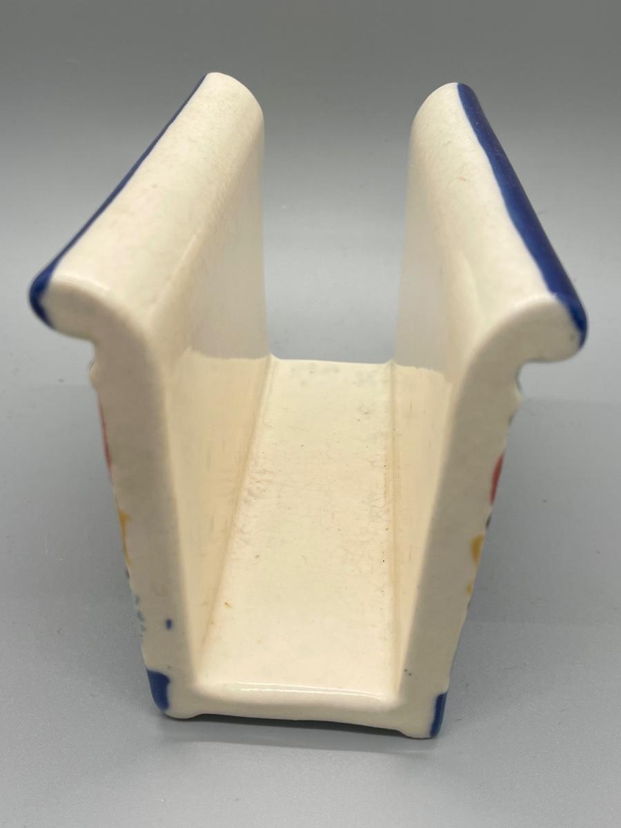 This item is in great condition and has no noticeable damages. It is approximately 3.5” tall and 5” long. It is perfect for being a decoration on the table as well as holding all your napkins. There is a maker mark on the bottom but cannot make it out.