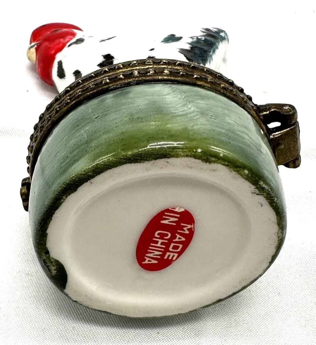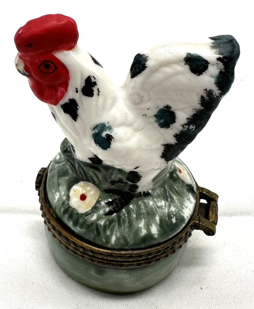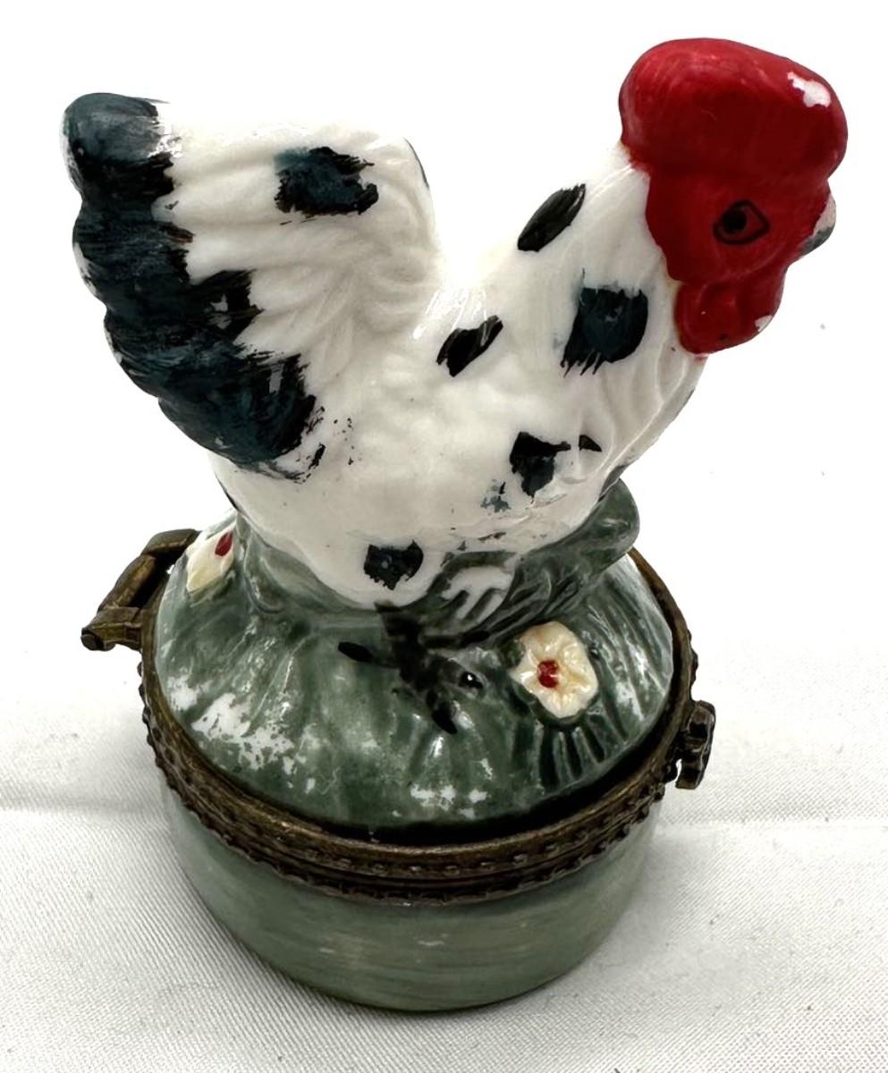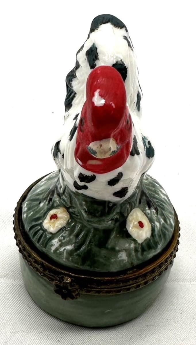 Porcelain Rooster Trinket Box with Bronze Hinged Lid Vintage