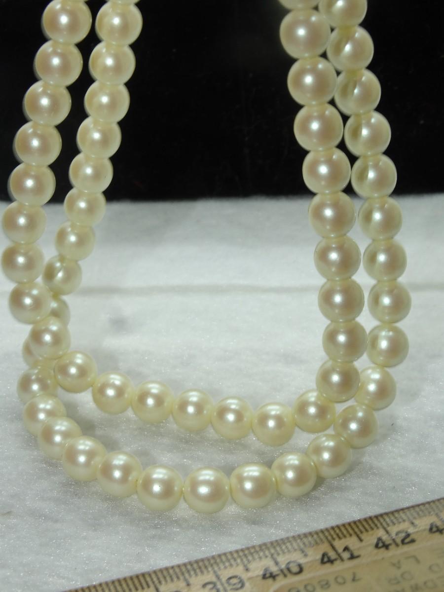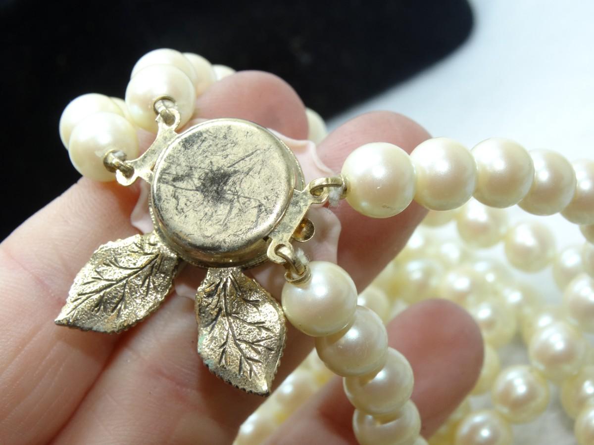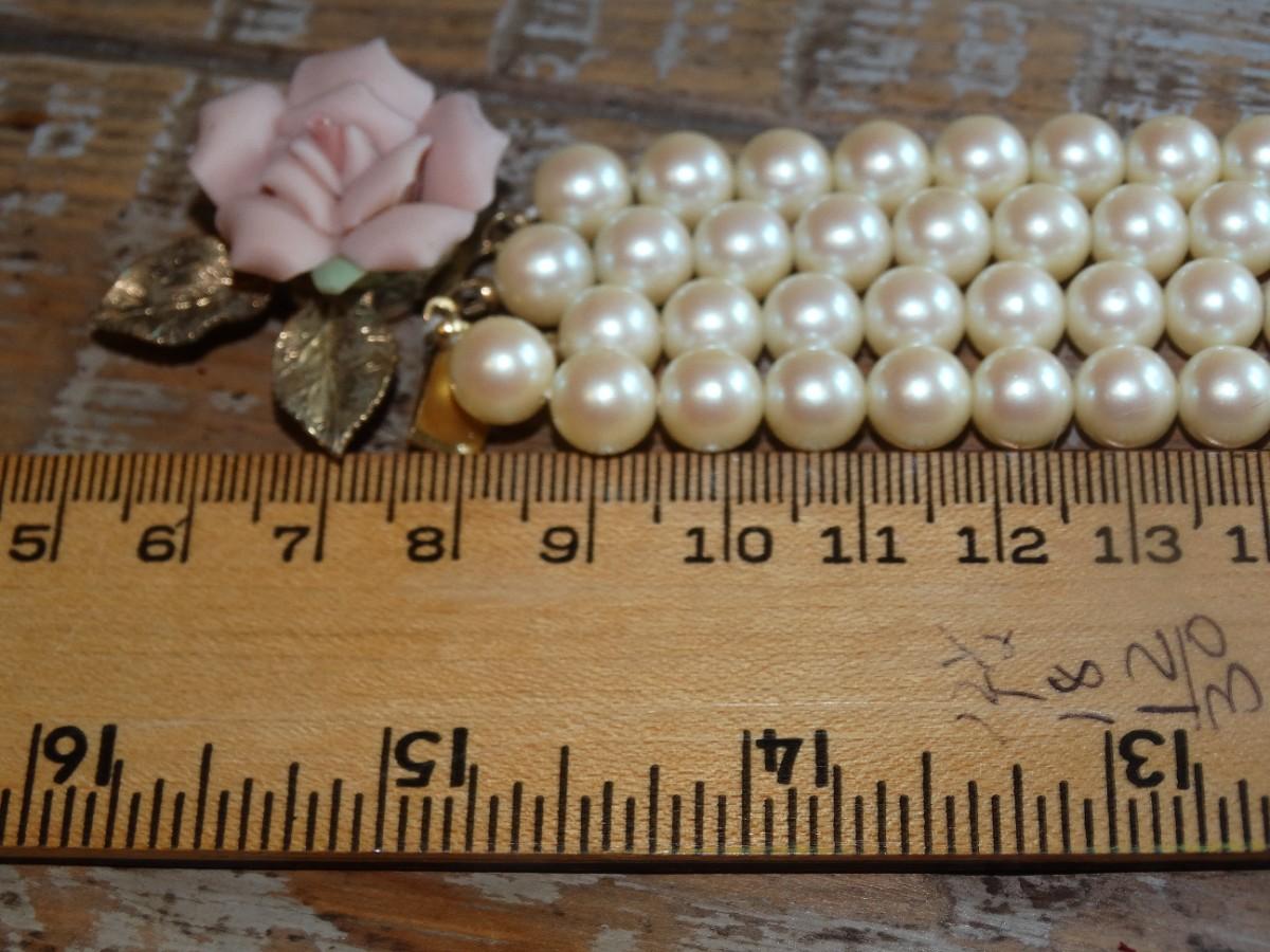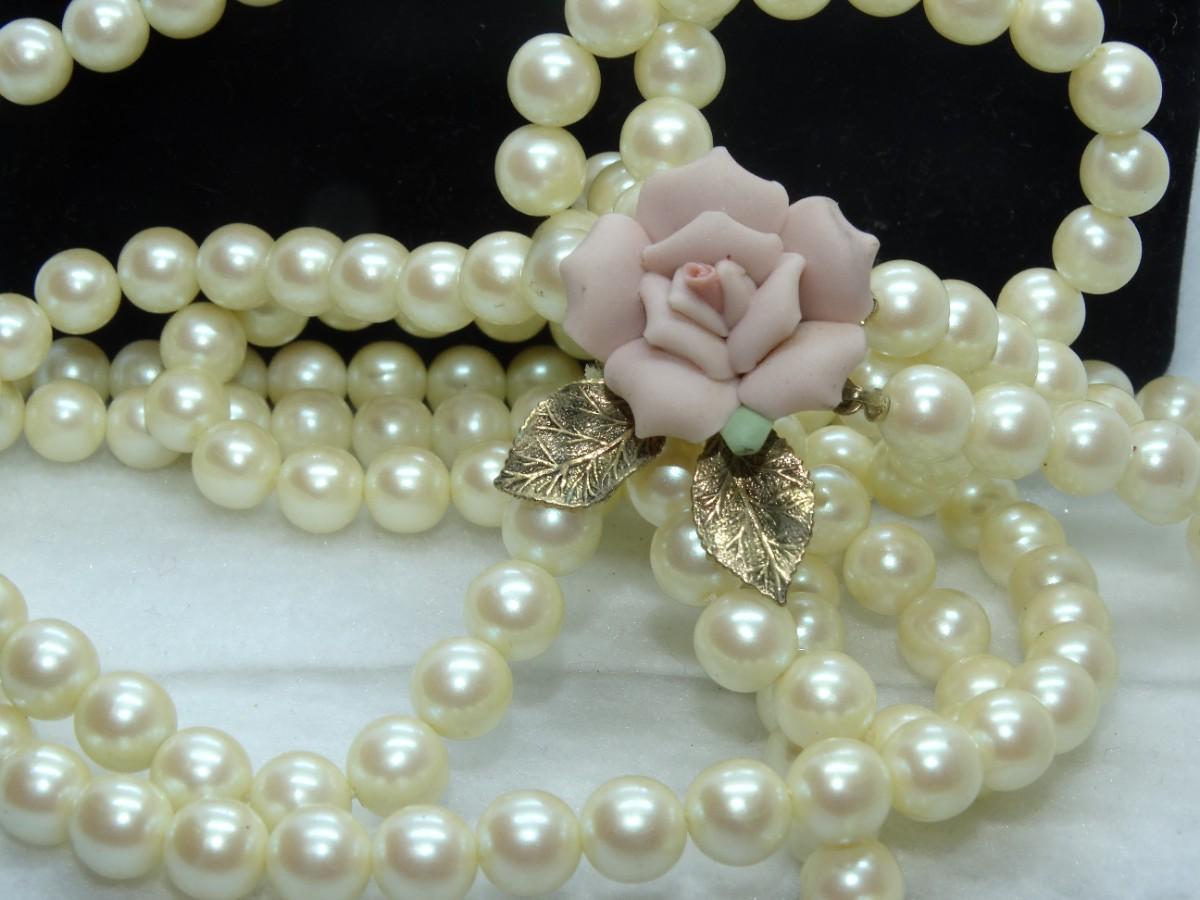 Porcelain Rose Clasp Pearl Necklace Double Strand