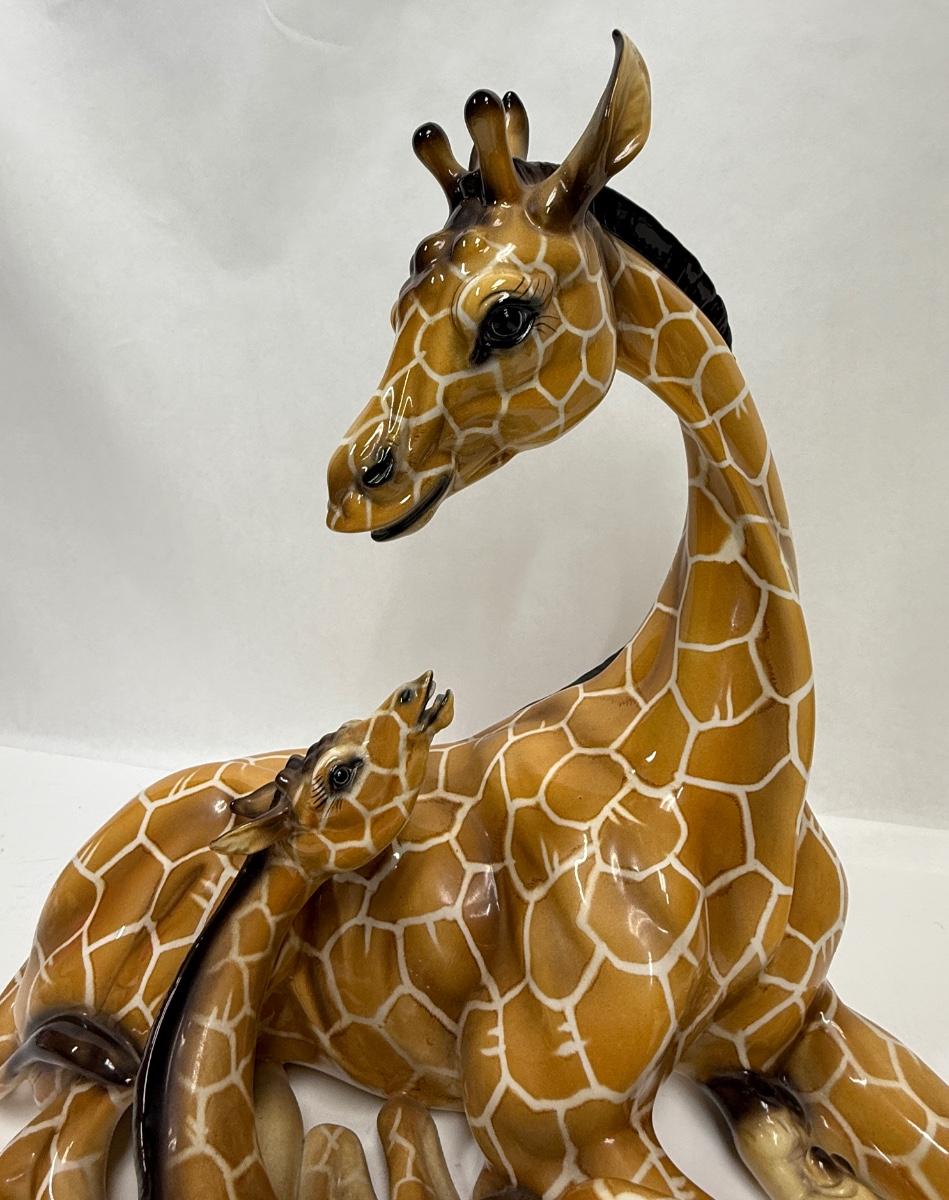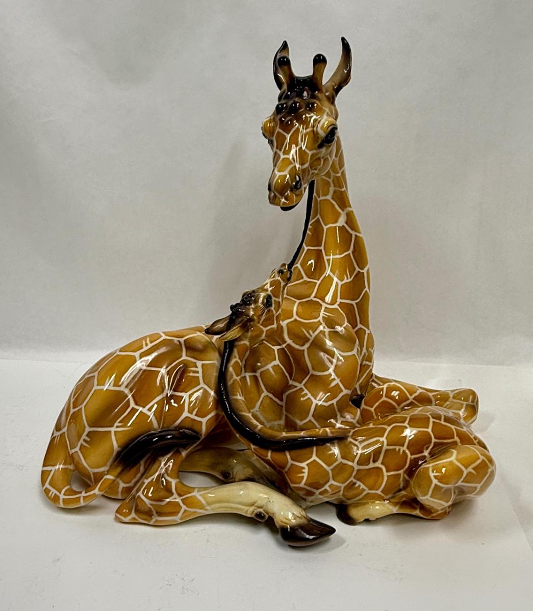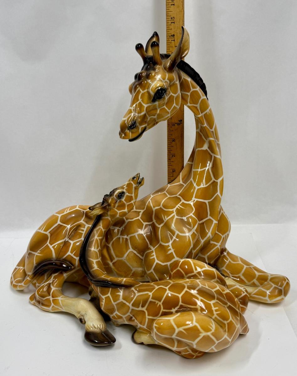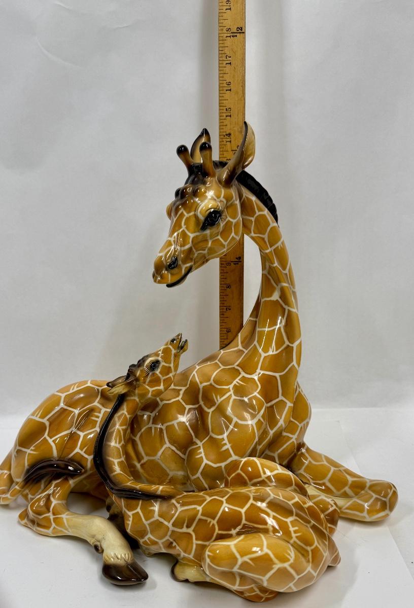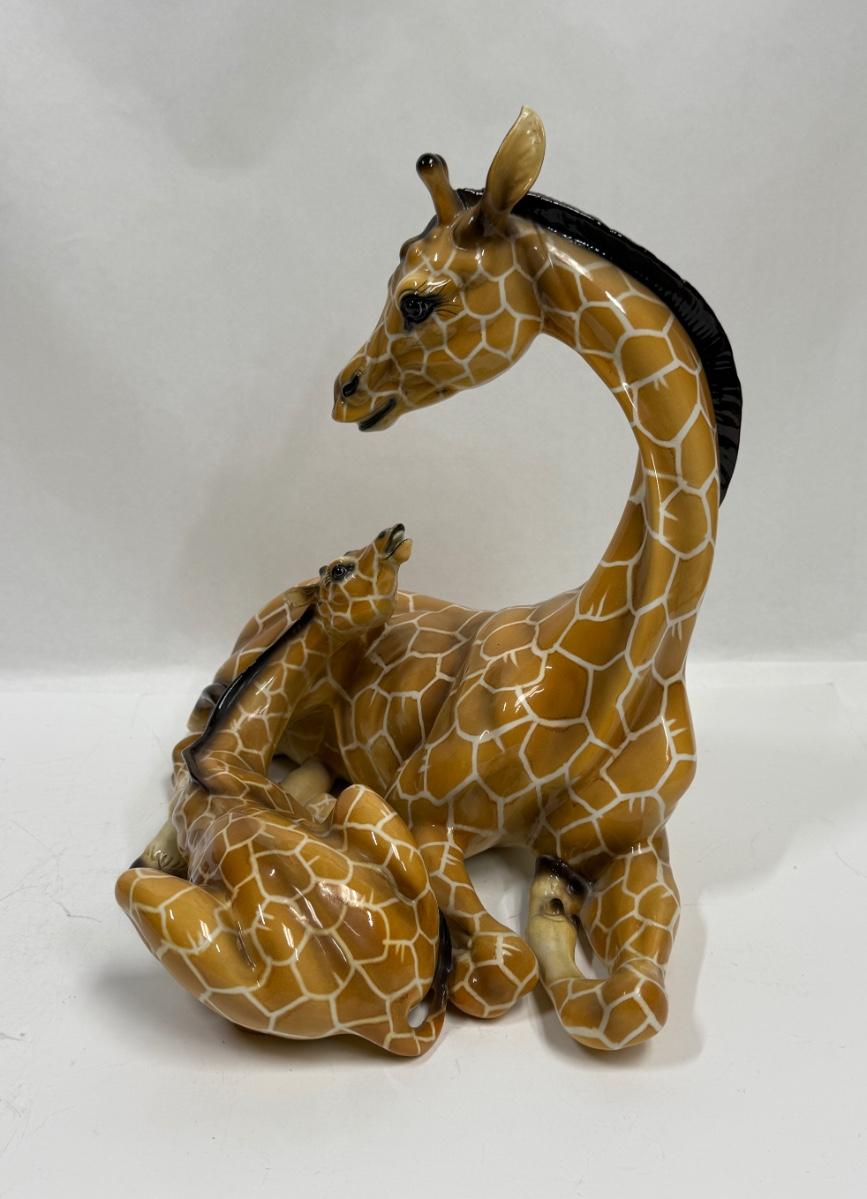 Porcelain Statue Giraffe Mom and Baby #1570 made in Italy Giovanni Ronzan approx. 15" high 17"wide