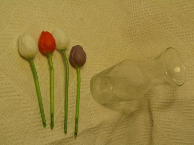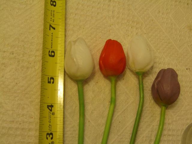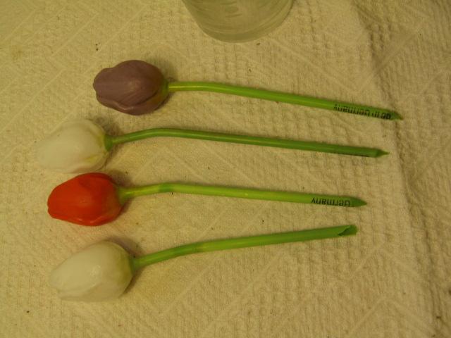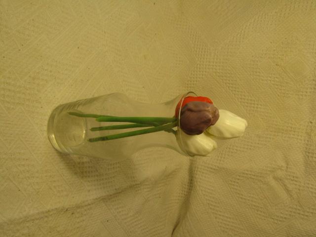 Satin Art Glass Tulips- German Made. Nice Coloring, ends of stems have some cracking and breakage.