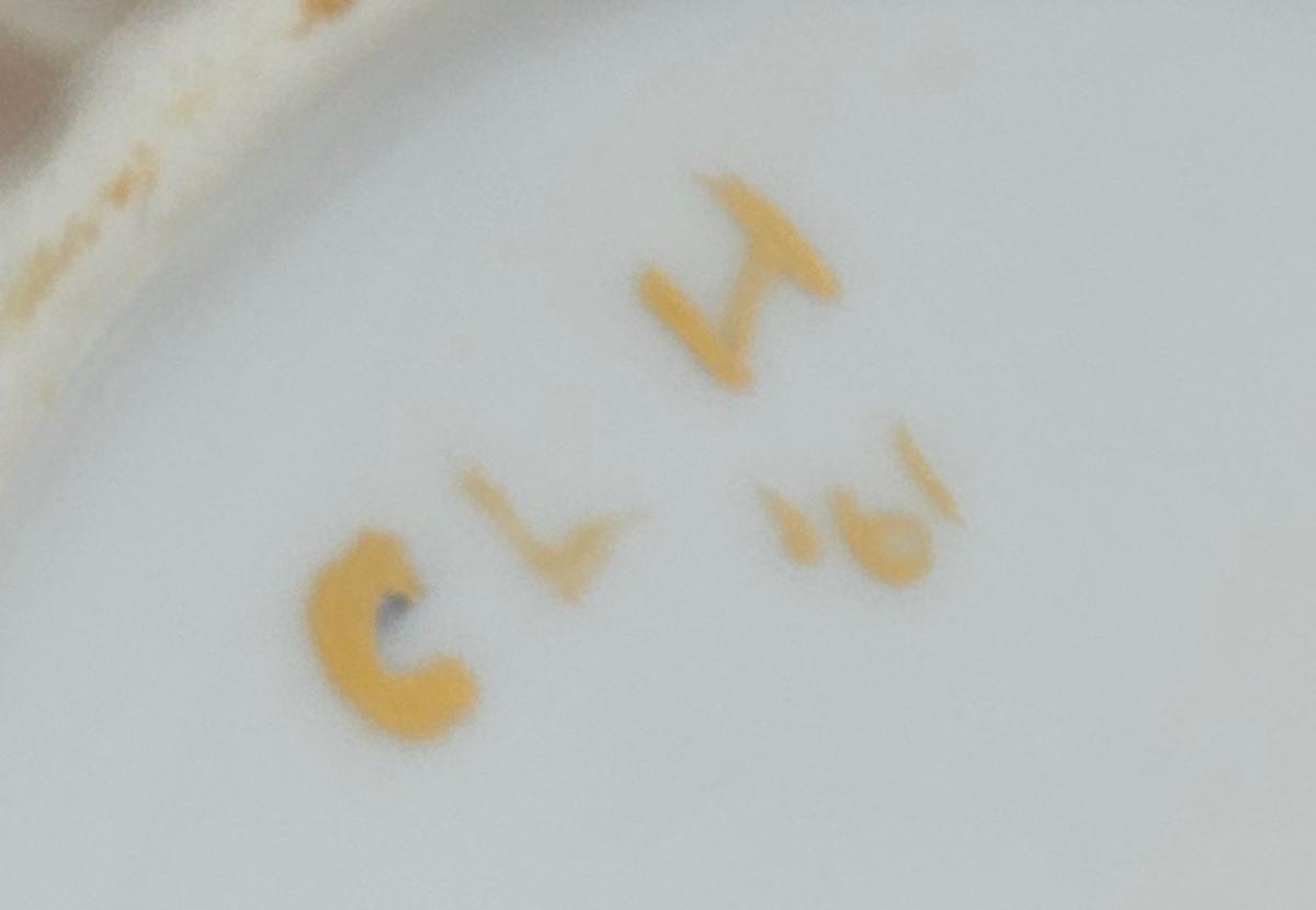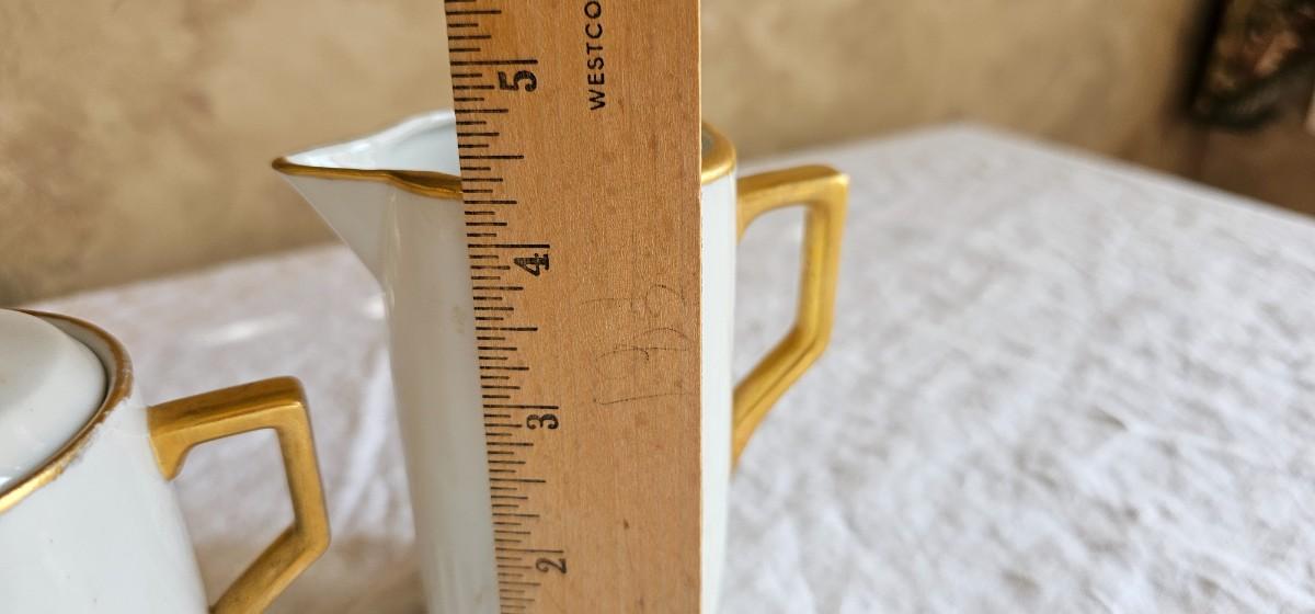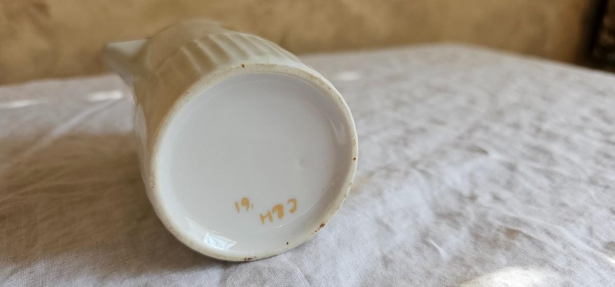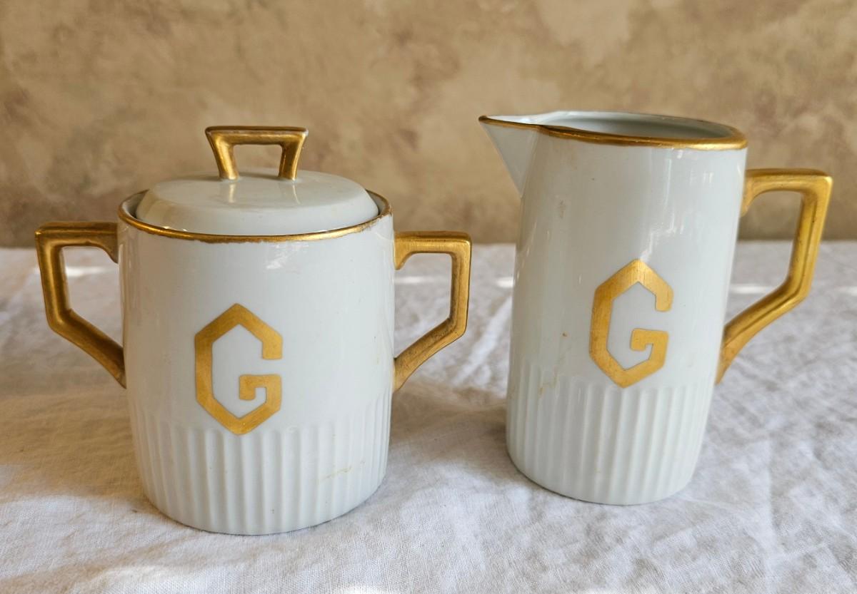 Porcelain Sugar bowl and creamer, monogrammed "G"