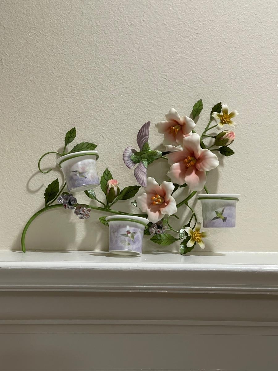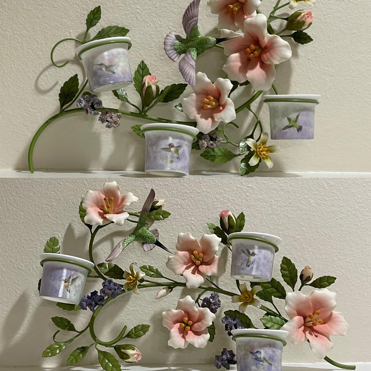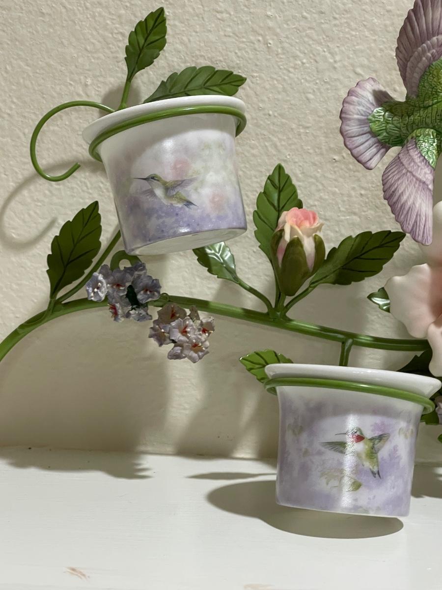 Pair (2) ~ Porcelain Hummingbird & Floral Tea Light Wall Hangings