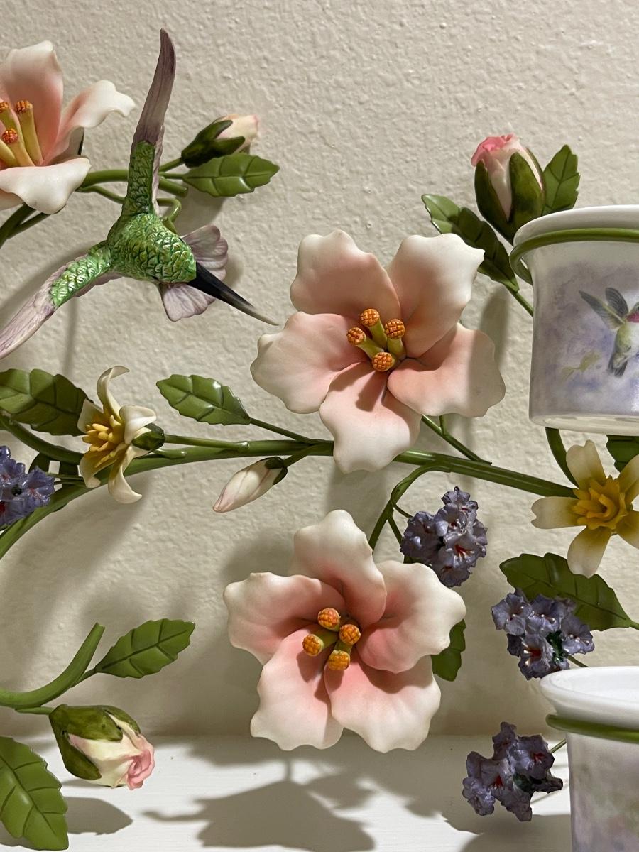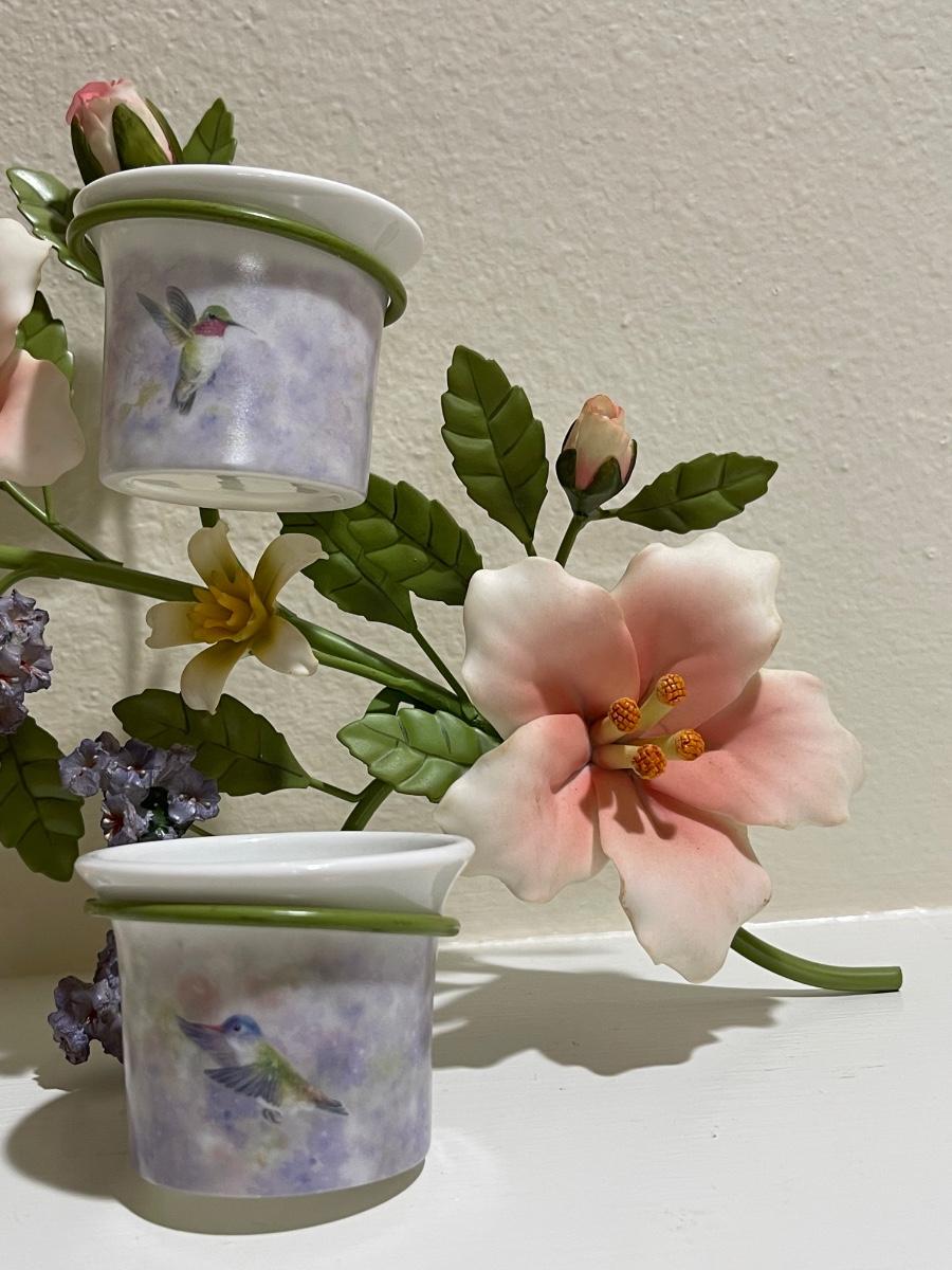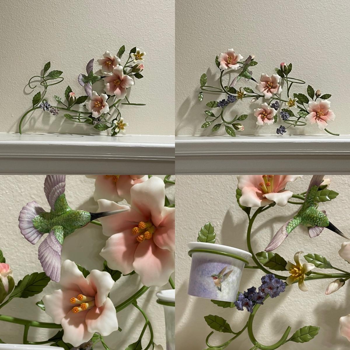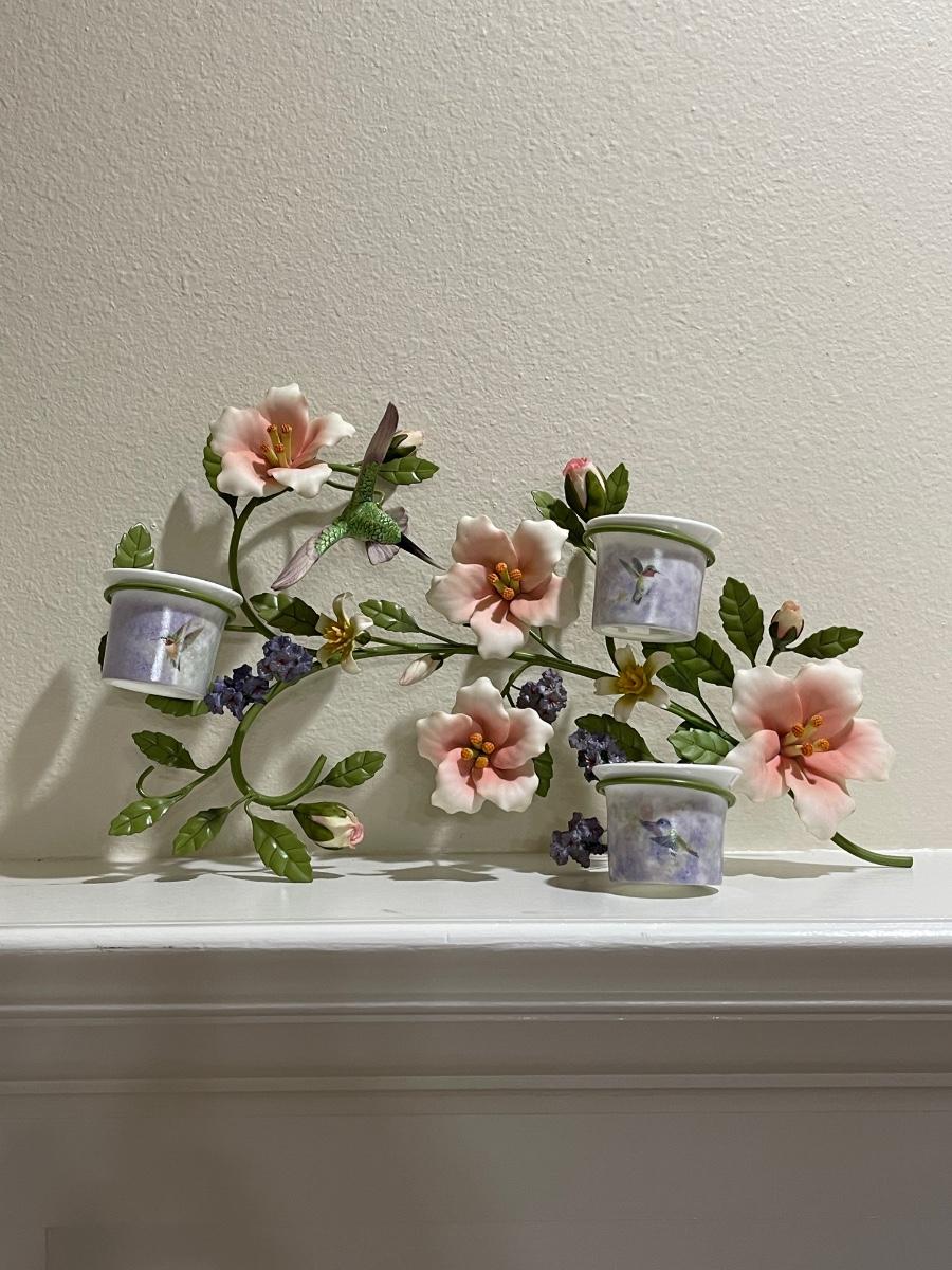 Pair (2) ~ Porcelain Hummingbird & Floral Tea Light Wall Hangings