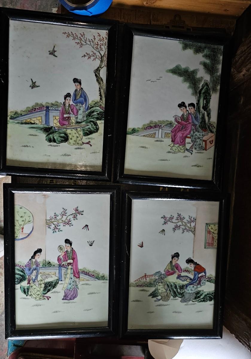 4 Chinese Hand painted Porcelain Tiles Famille Rose