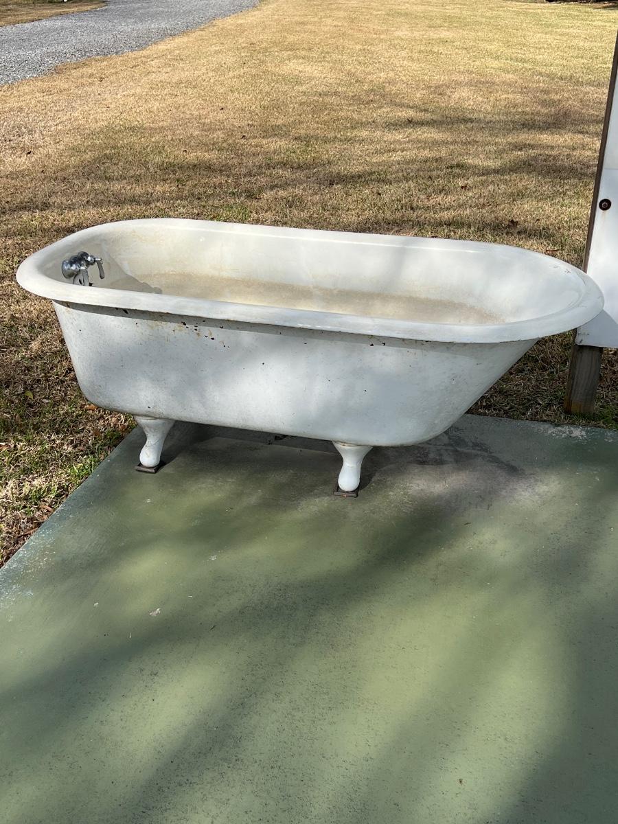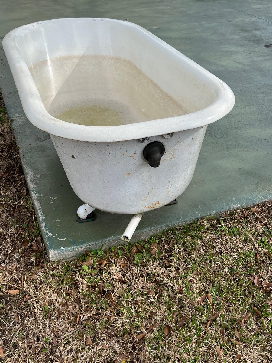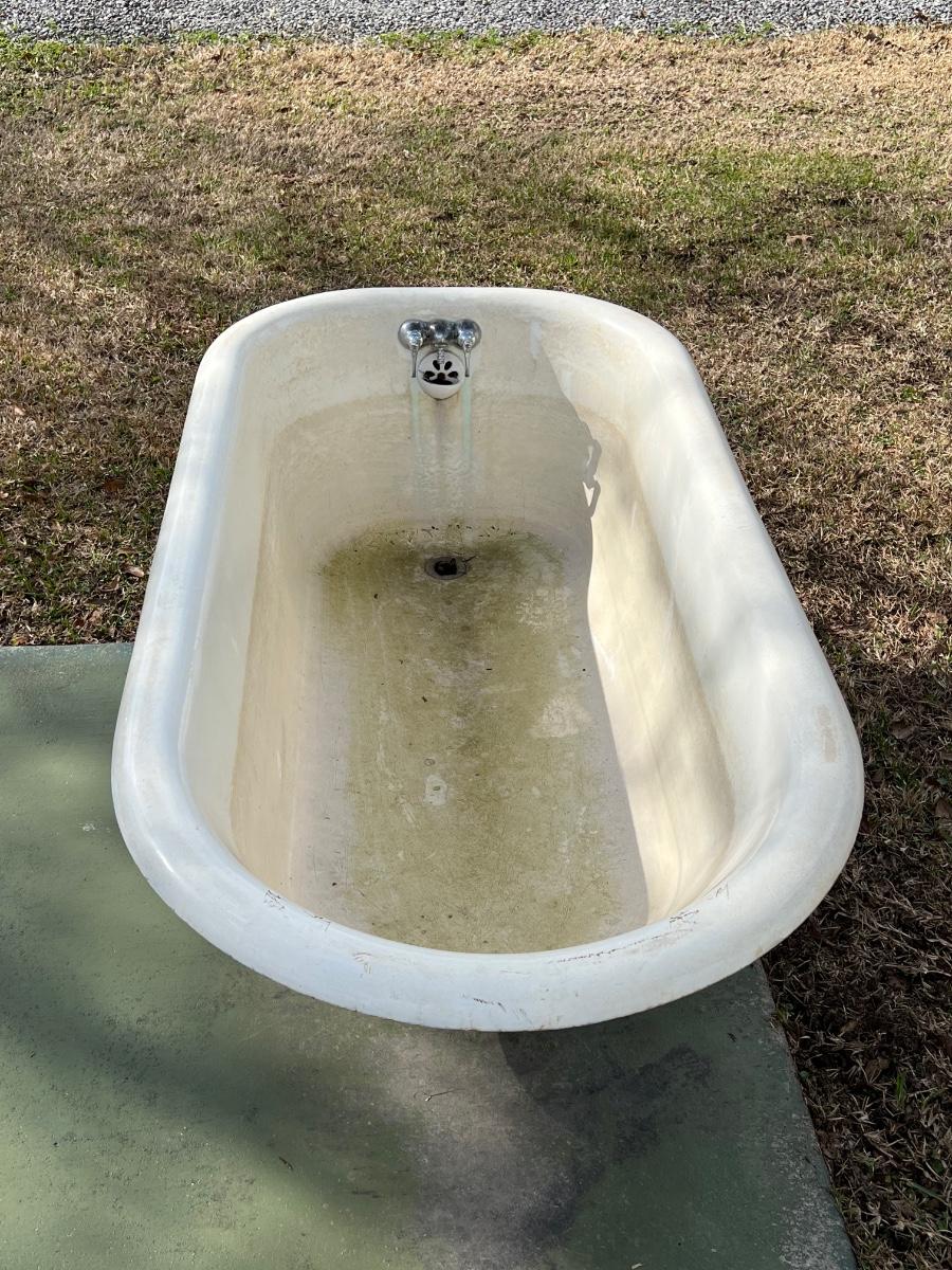 Tub has been kept outside & used as a lily pond. ~ 23” H x 30” W x 60” D ~ Bottom of tub to top is approximately = 17”