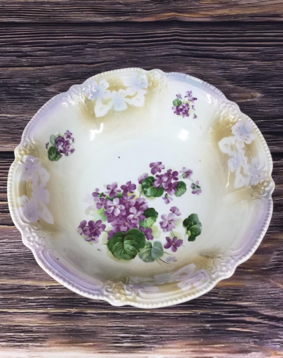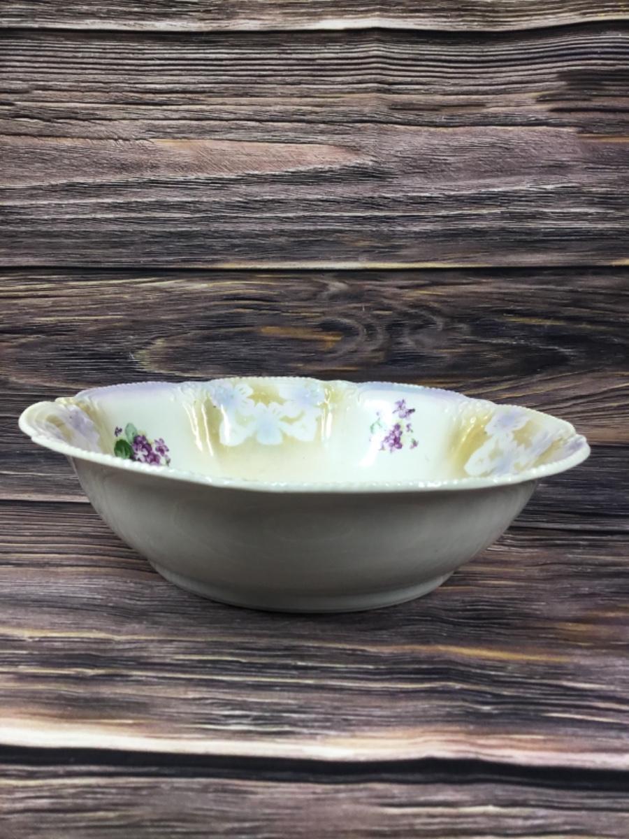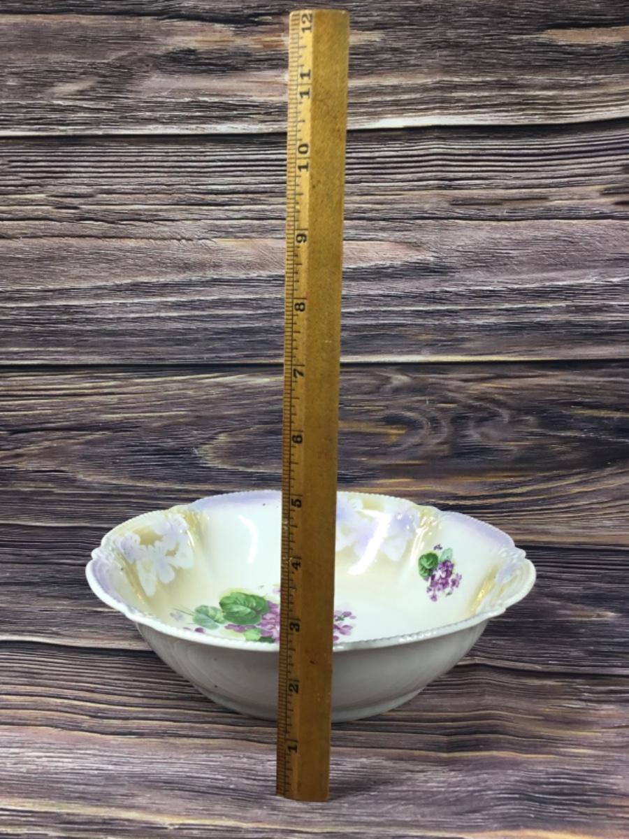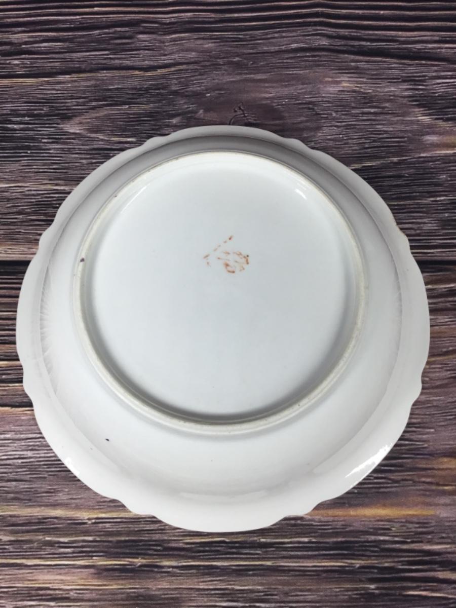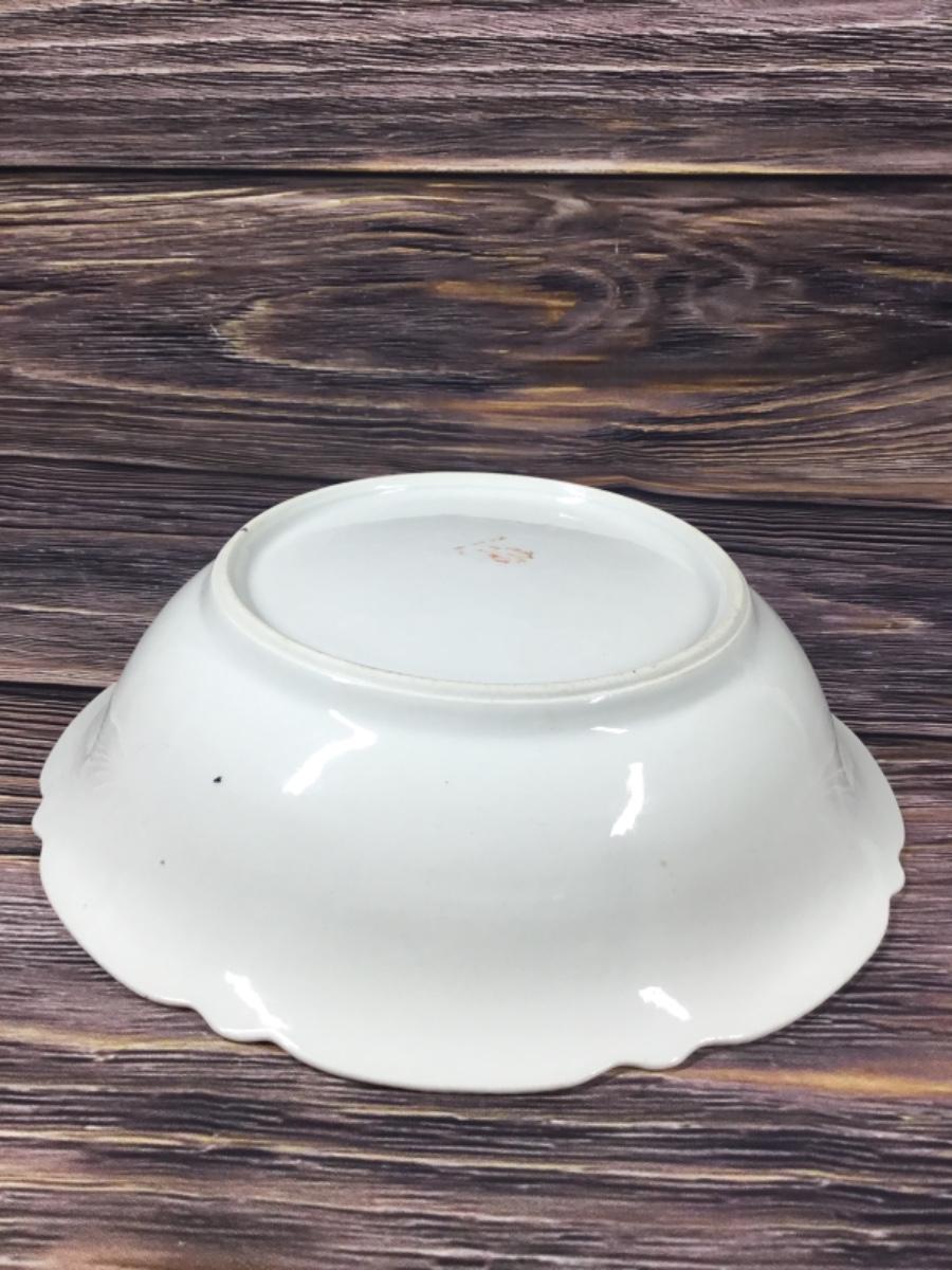Bowl is in great condition. There is some discoloration all over the bowl but those spots aren’t too noticeable. The bowl is approximately 2.5” deep. Marked on the bottom.