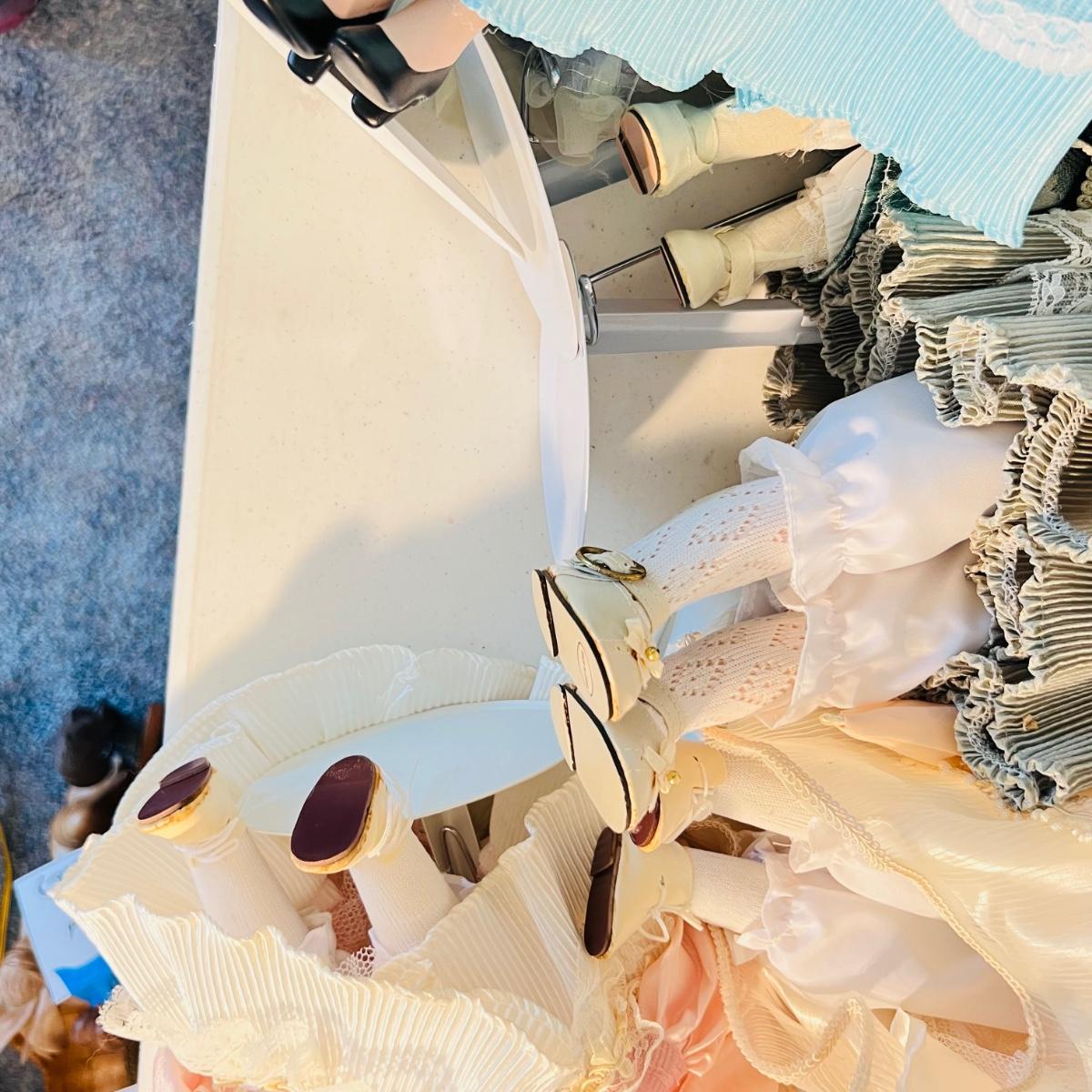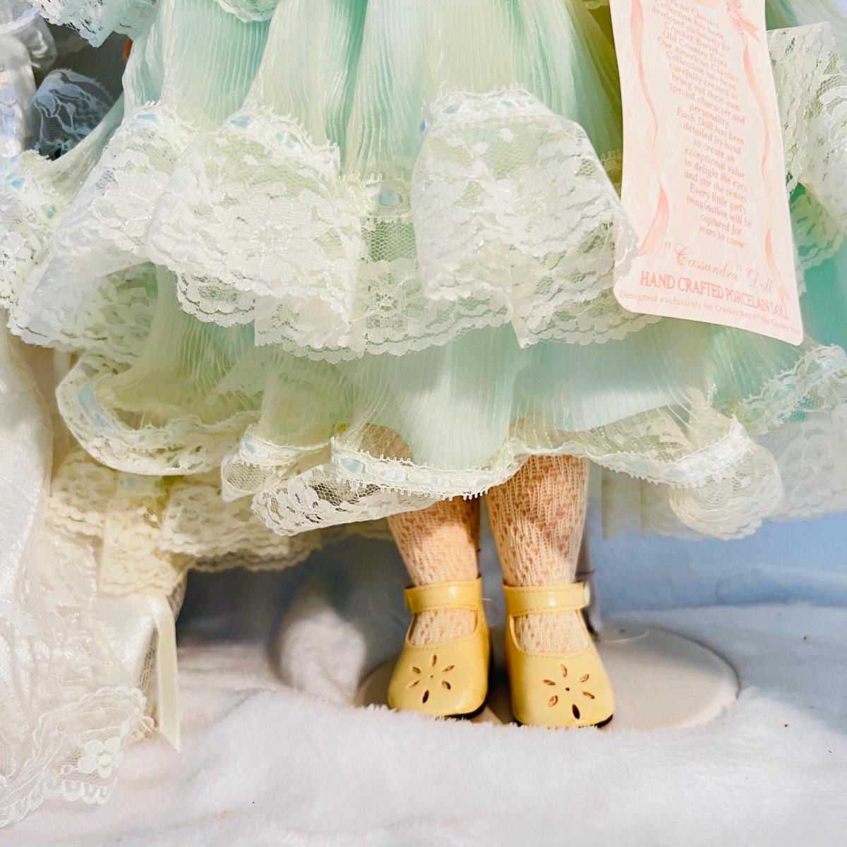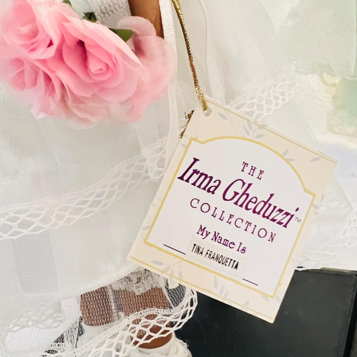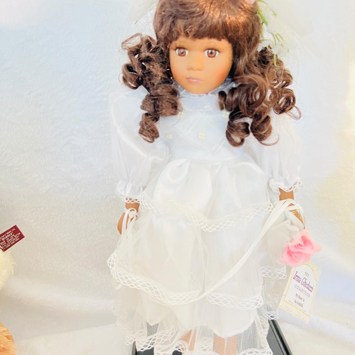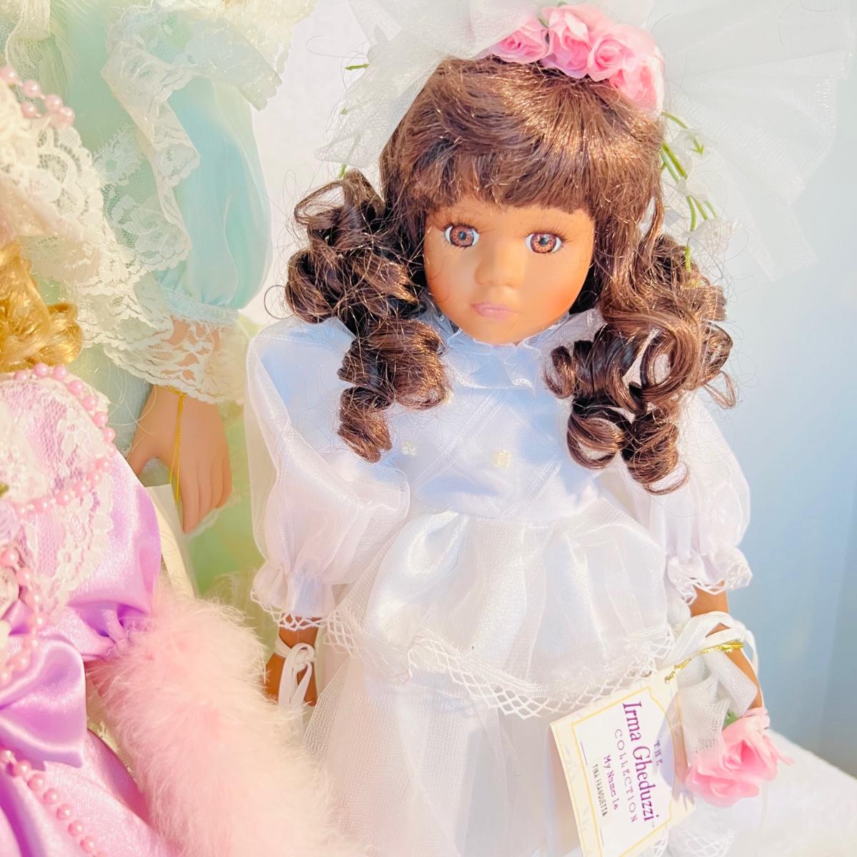Collection includes five beautifully dressed porcelain dolls ready for a wedding including “Leslie” and a “Cassandra” Bride Dolls from American Classics and one Irma Gheduzzi Collection “Tina Franquetta” doll. All kept under plastic cases and in excellent condition. Leslie, in green, measures 24”H.