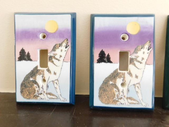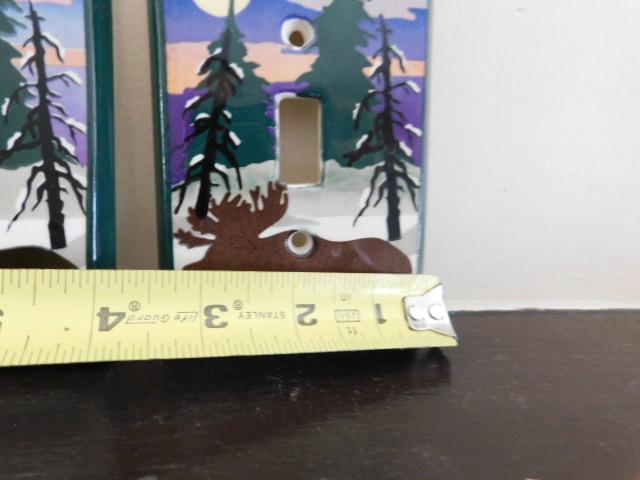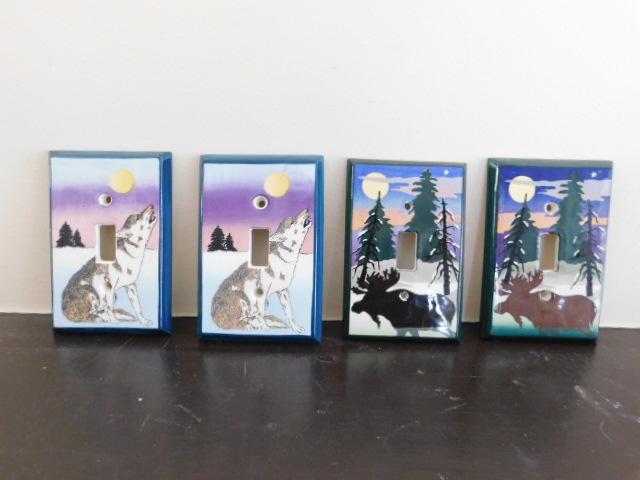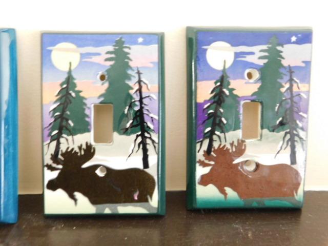Porcelain Wildlife Nature Wall Switch Plates 4 pcs one moose plate has chip on flat side as shown