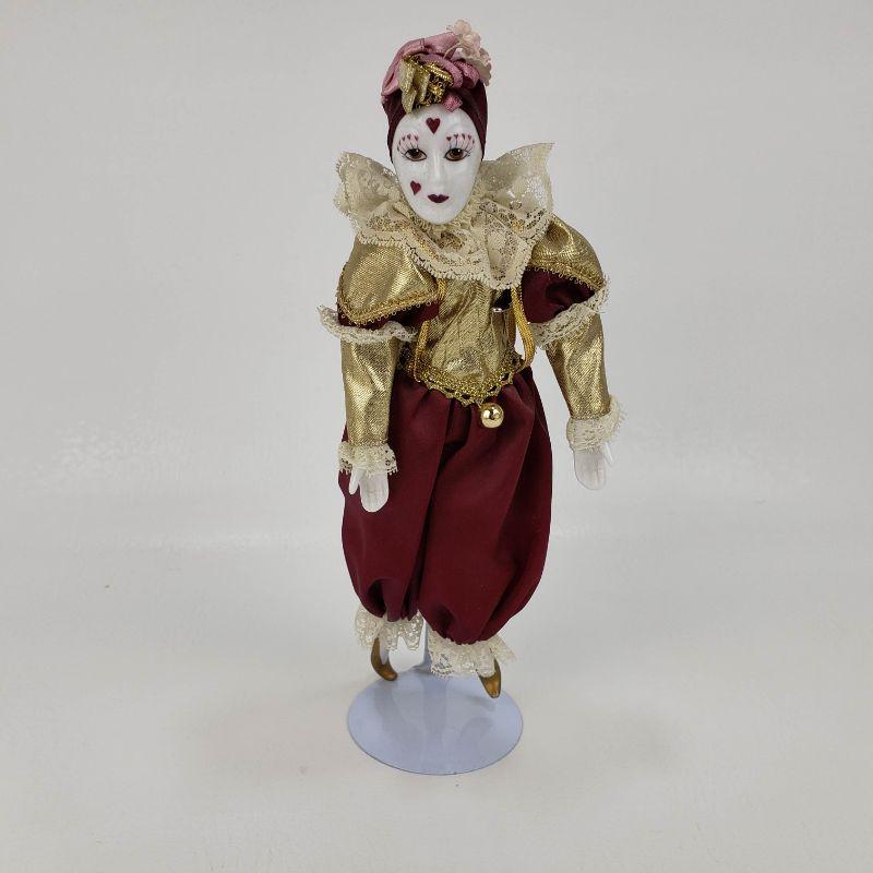 Porcelein Clown Doll - Victorian Clothing - 10.5" Tall