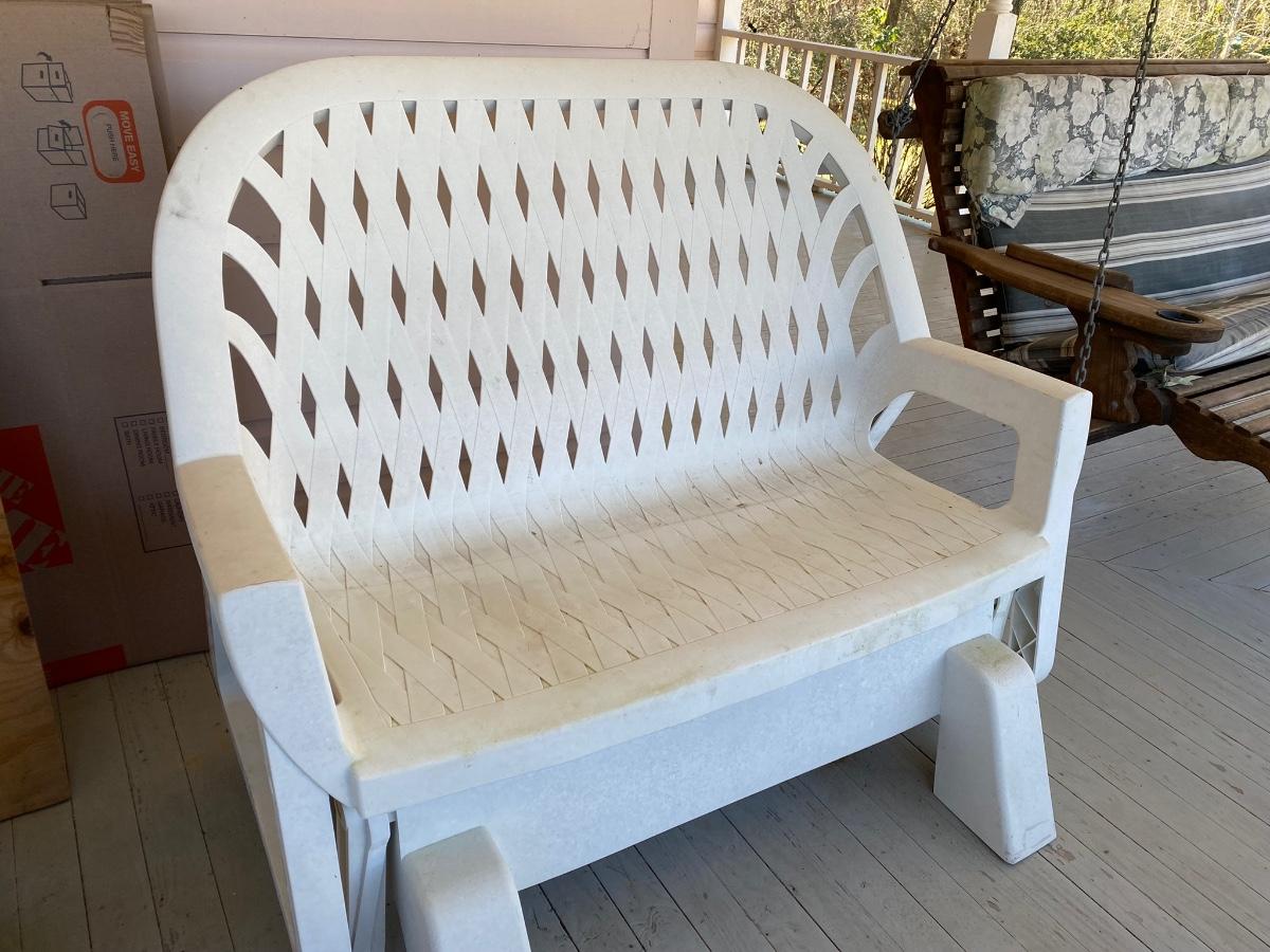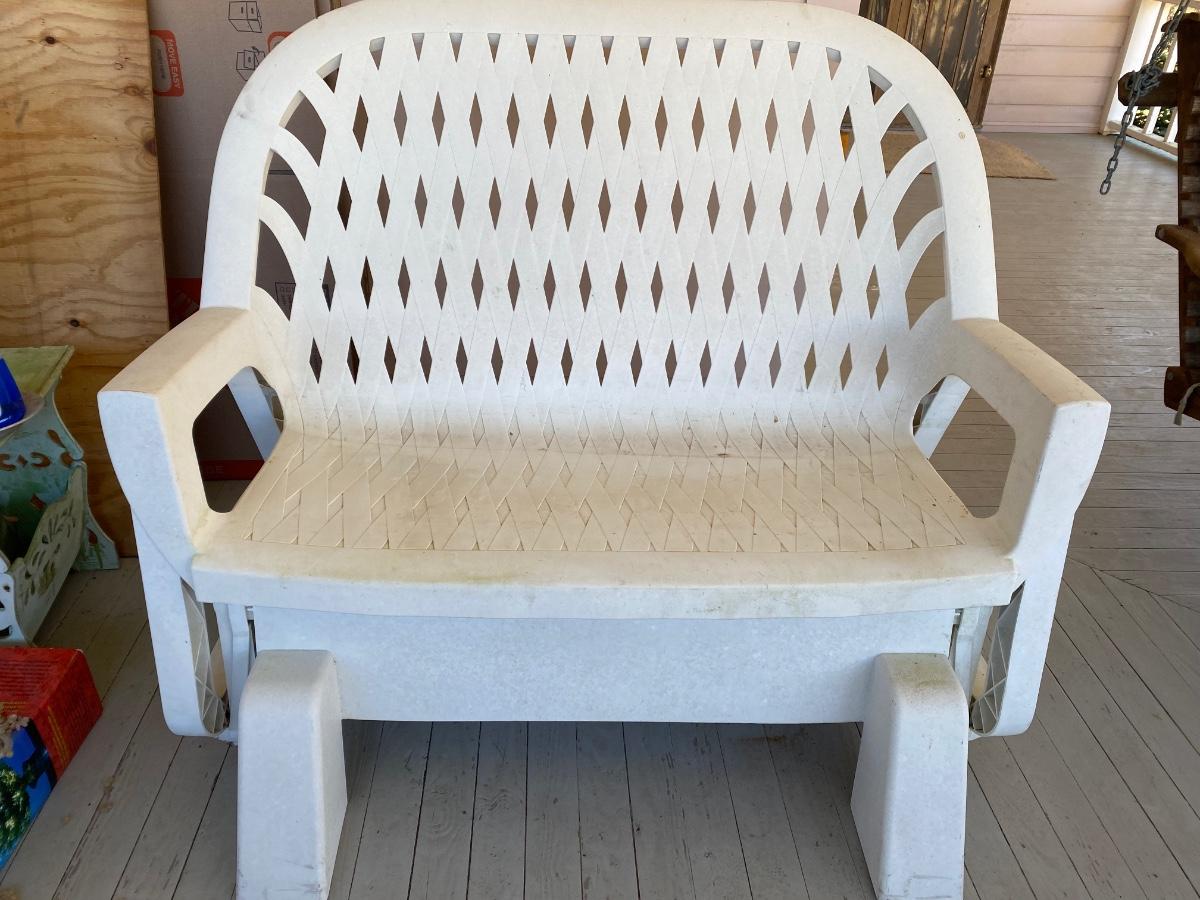 Porch two-person heavy duty plastic glider Approx 50 x 41. Good condition