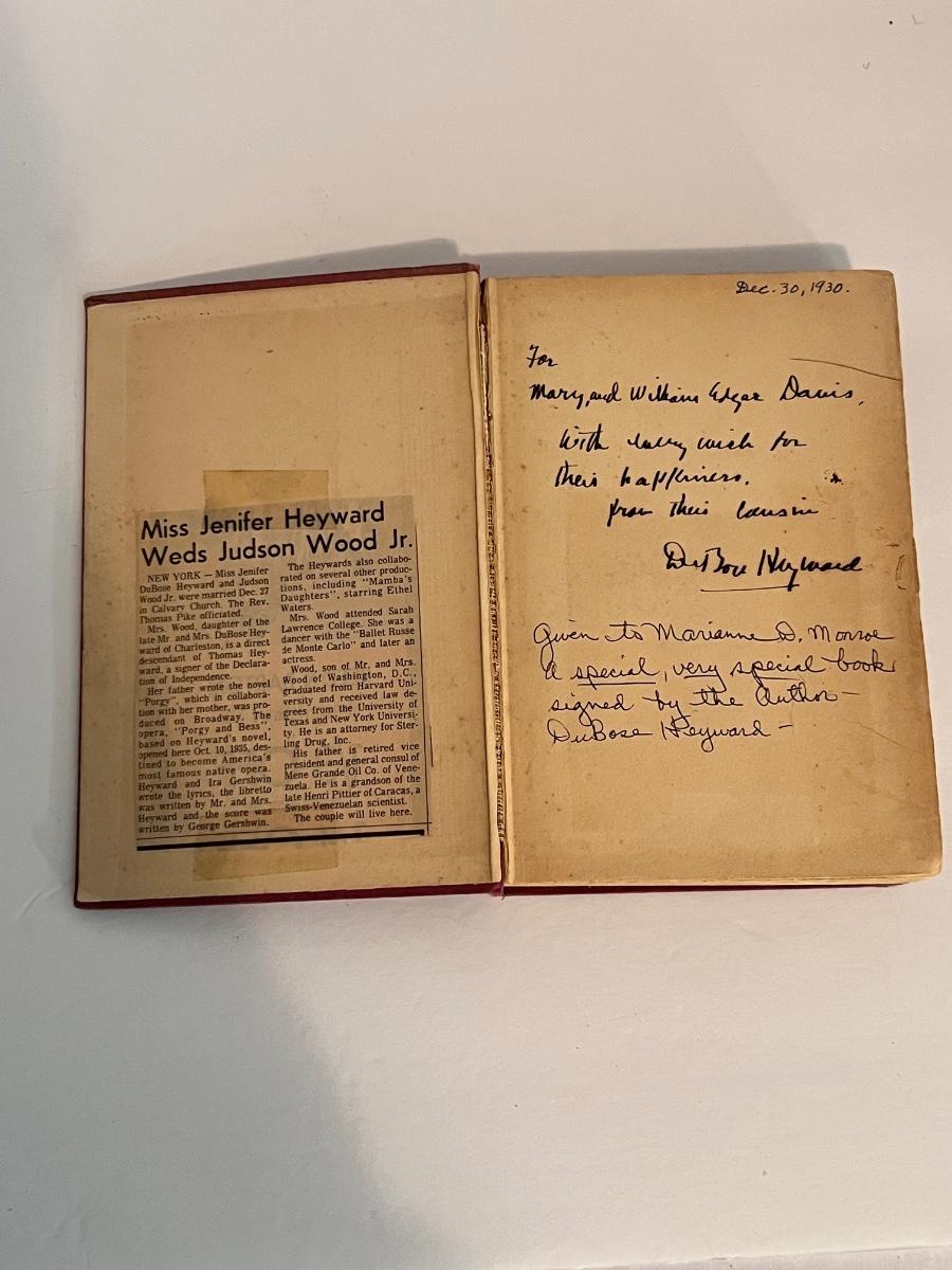 "Porgy" by DuBose Heyward, The Charleston Edition (AUTHOR SIGNED) (1930) as pictured
