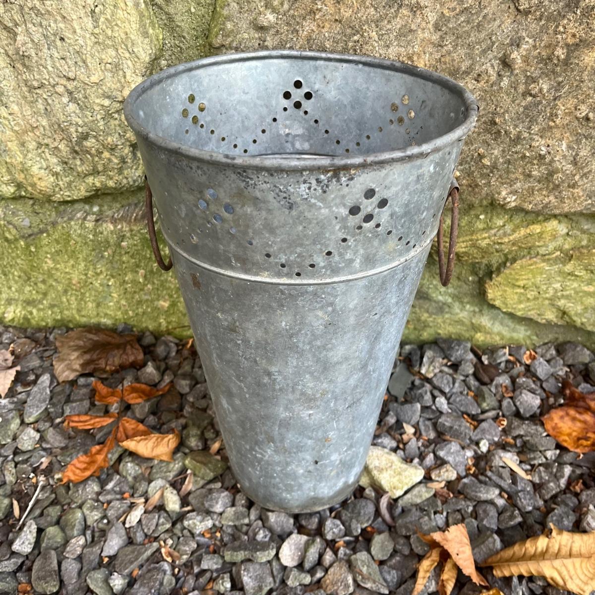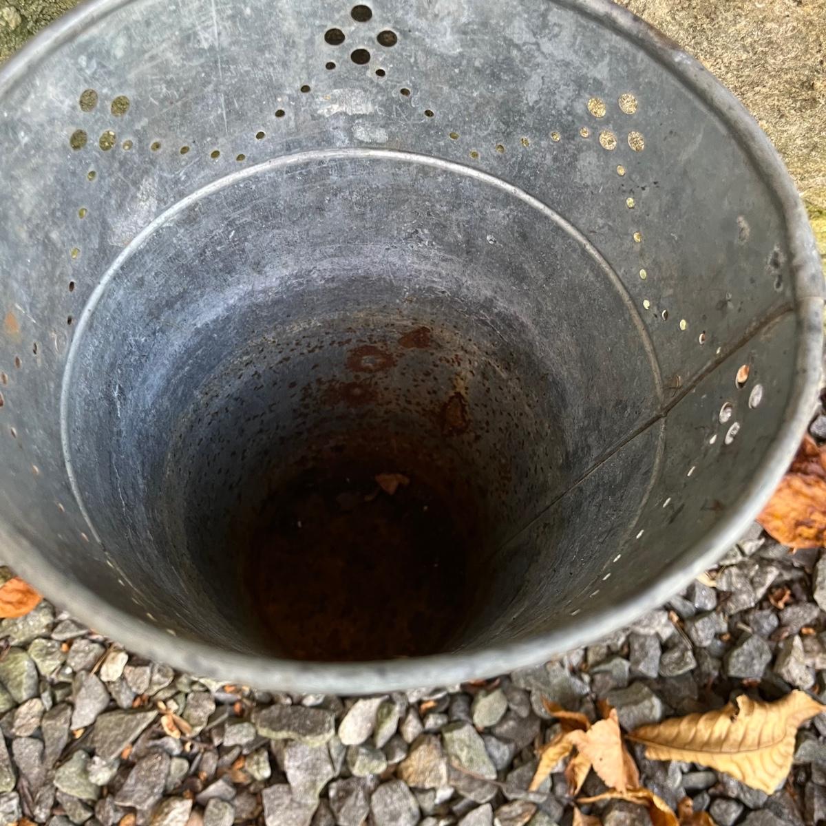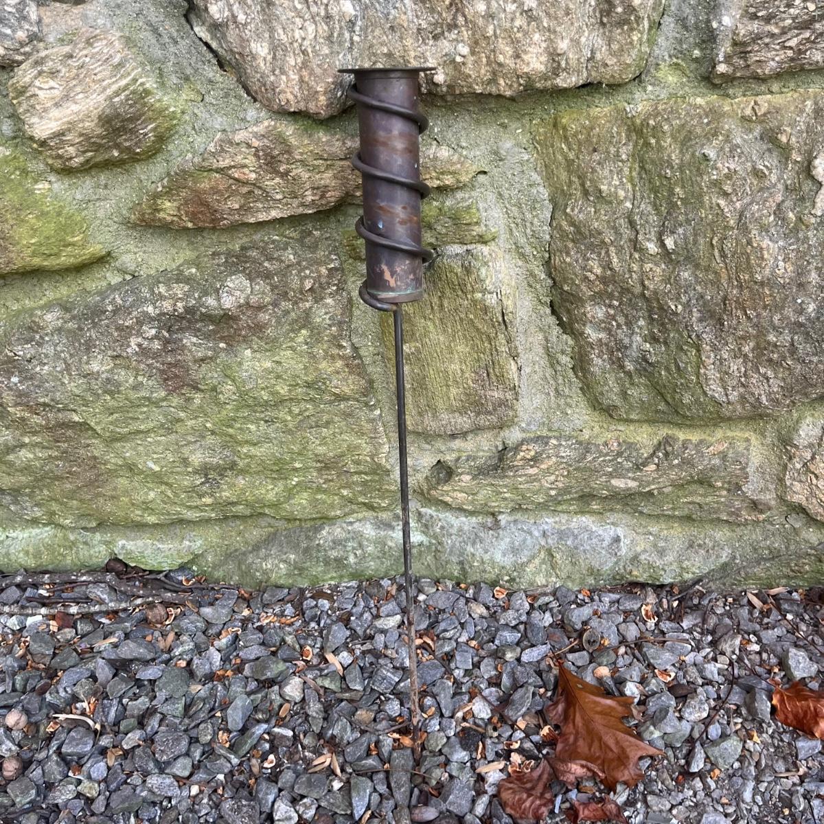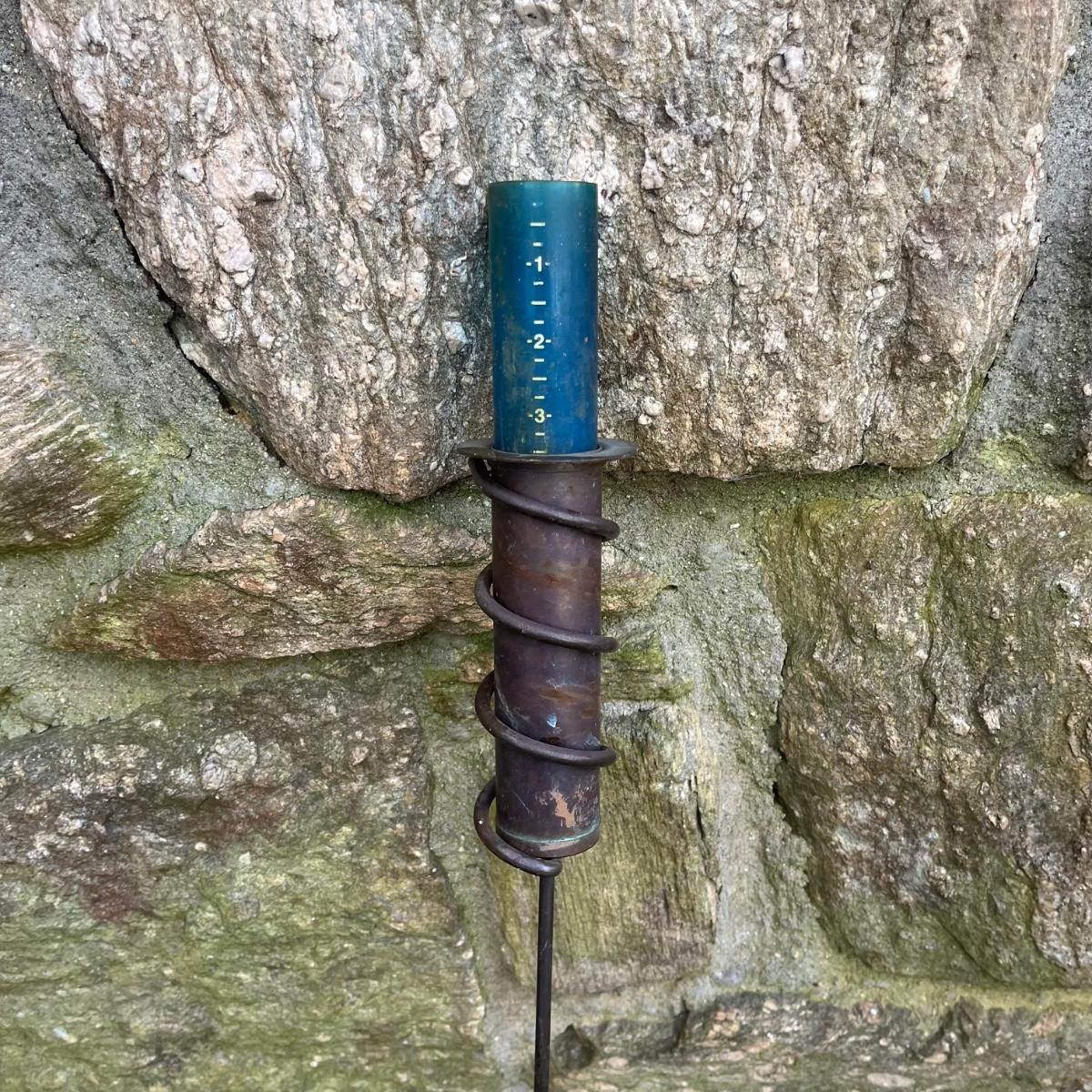 Lot includes a pottery hanging bird feeder, metal in ground hose hanger, metal wall hose hanger, plastic wall hose hanger, copper rain gauge, three plastic water cans, hose, hose nozzles and more. In ground hose hanger measures 8.5” x 13” x 42”.