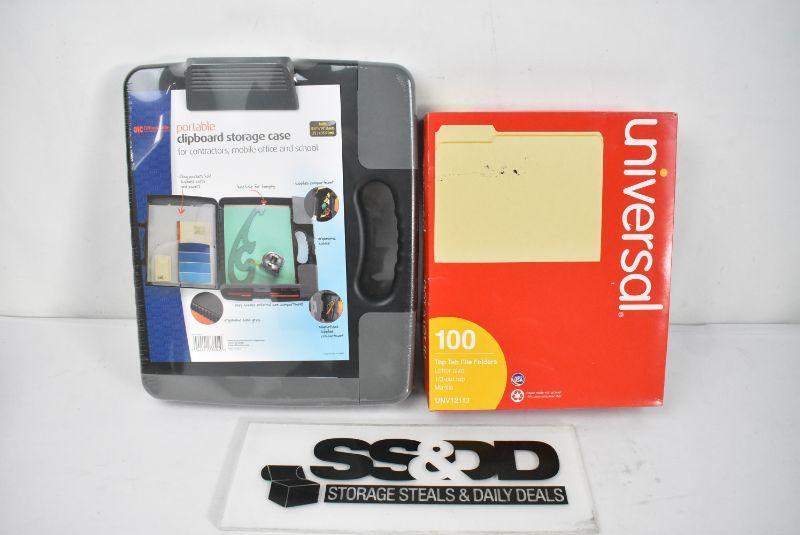 Portable Clipboard Storage Case & Universal Top Tab Manila File Folders, Letter Size, 100/Box - New