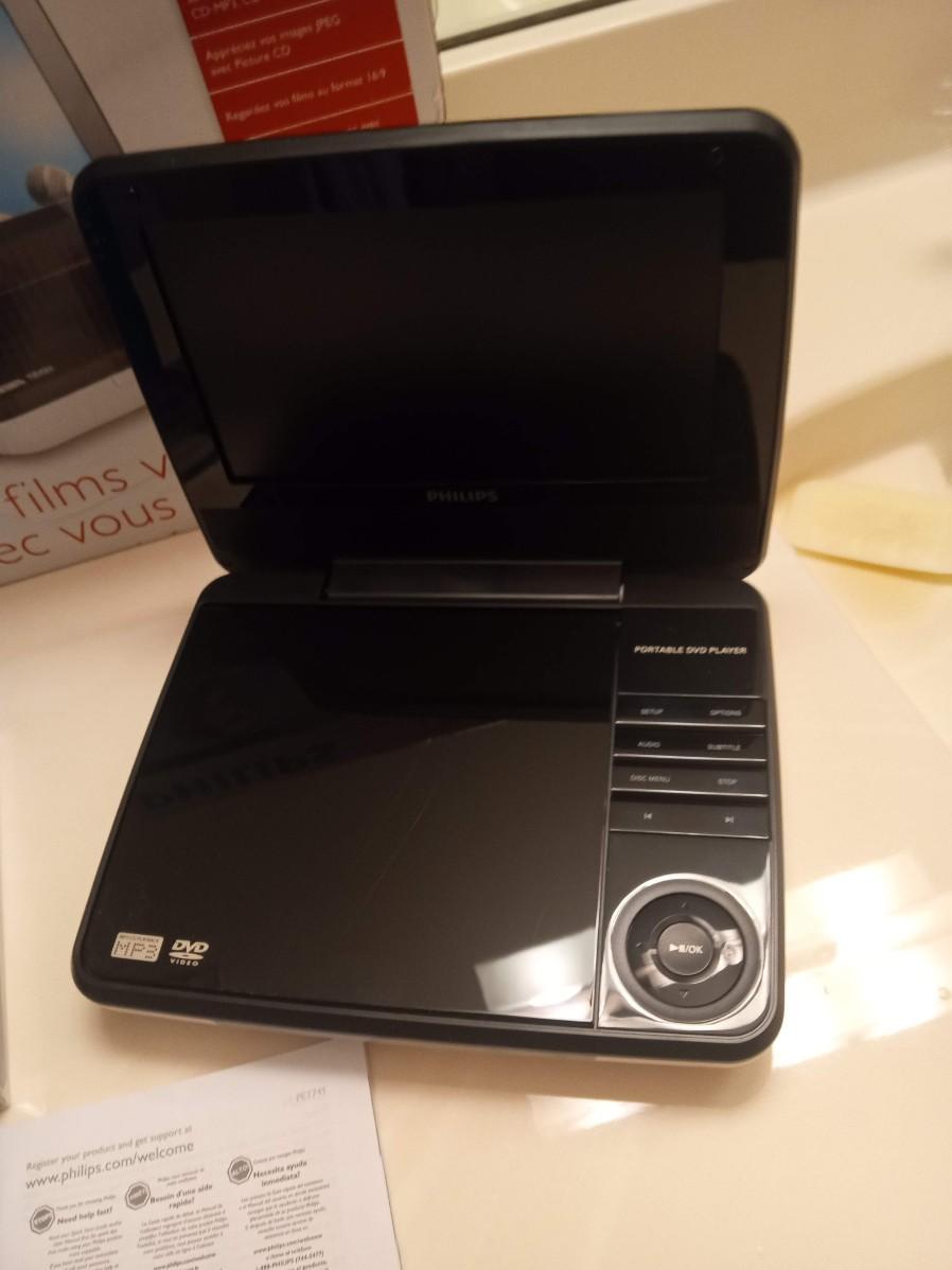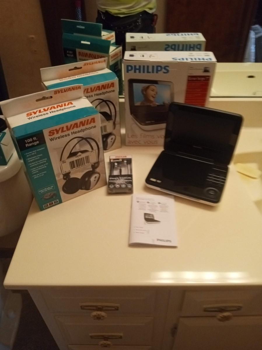 PORTABLE DVD PLAYER, 2 WIRELESS HEADPHONES AND MORE