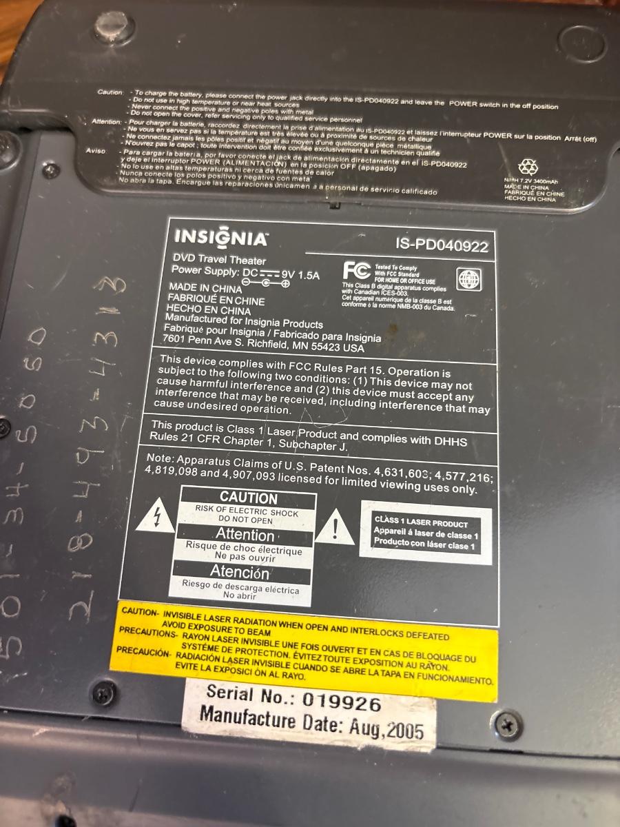 Untested. No chords included for the portable DVD players