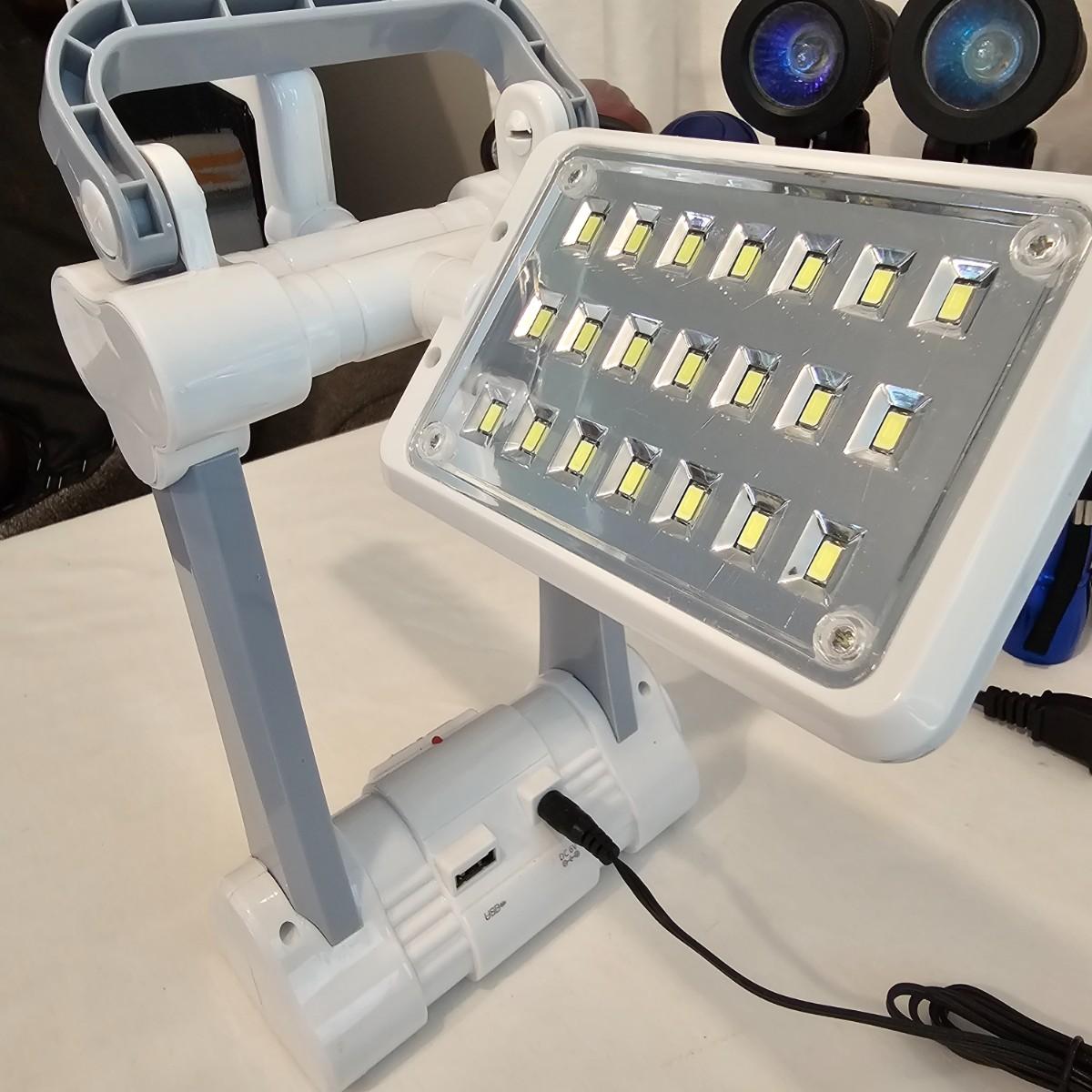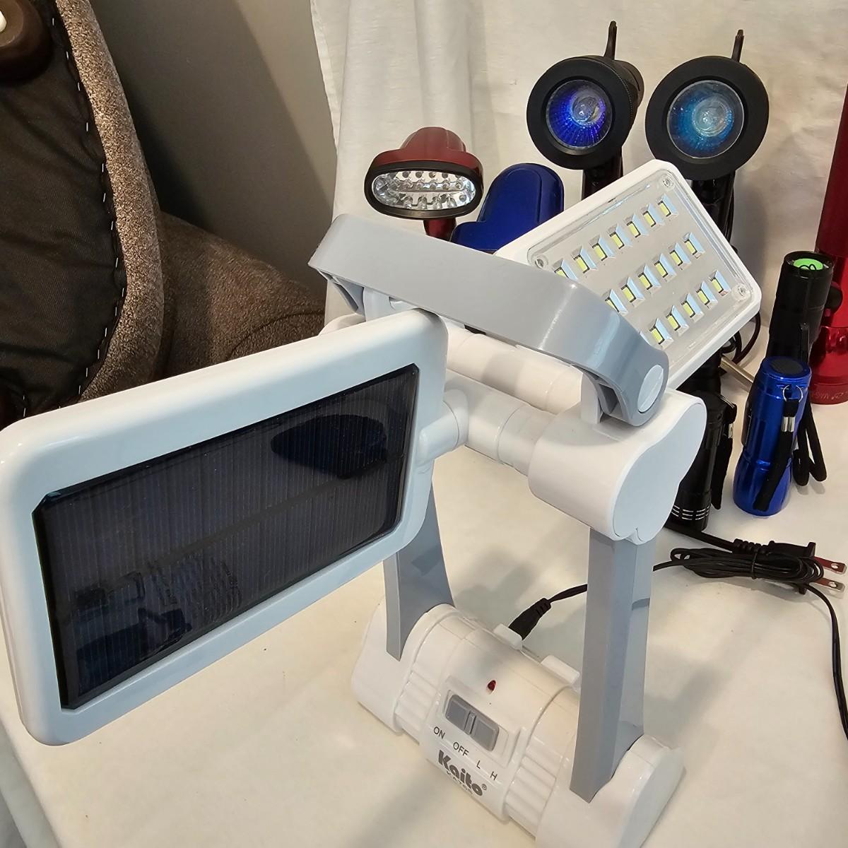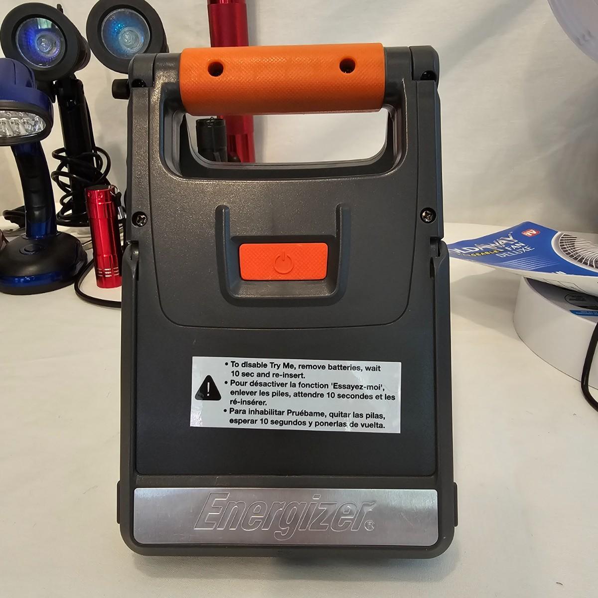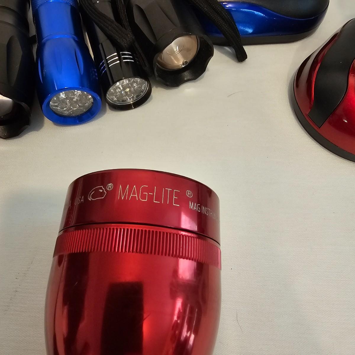 A collection of hand held and tabletop items including flashlights, fans, table lamps and more. All AC items powered on when plugged in. Mini flashlights, a four cell Maglite, other safety items. Note that some items are USB plugs and will need adapters, not included. See photos for details. Shipping available.