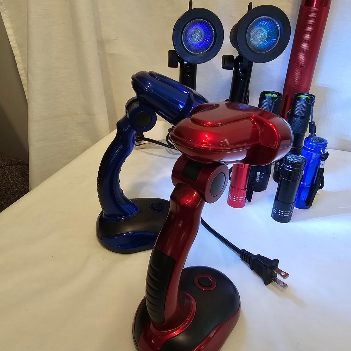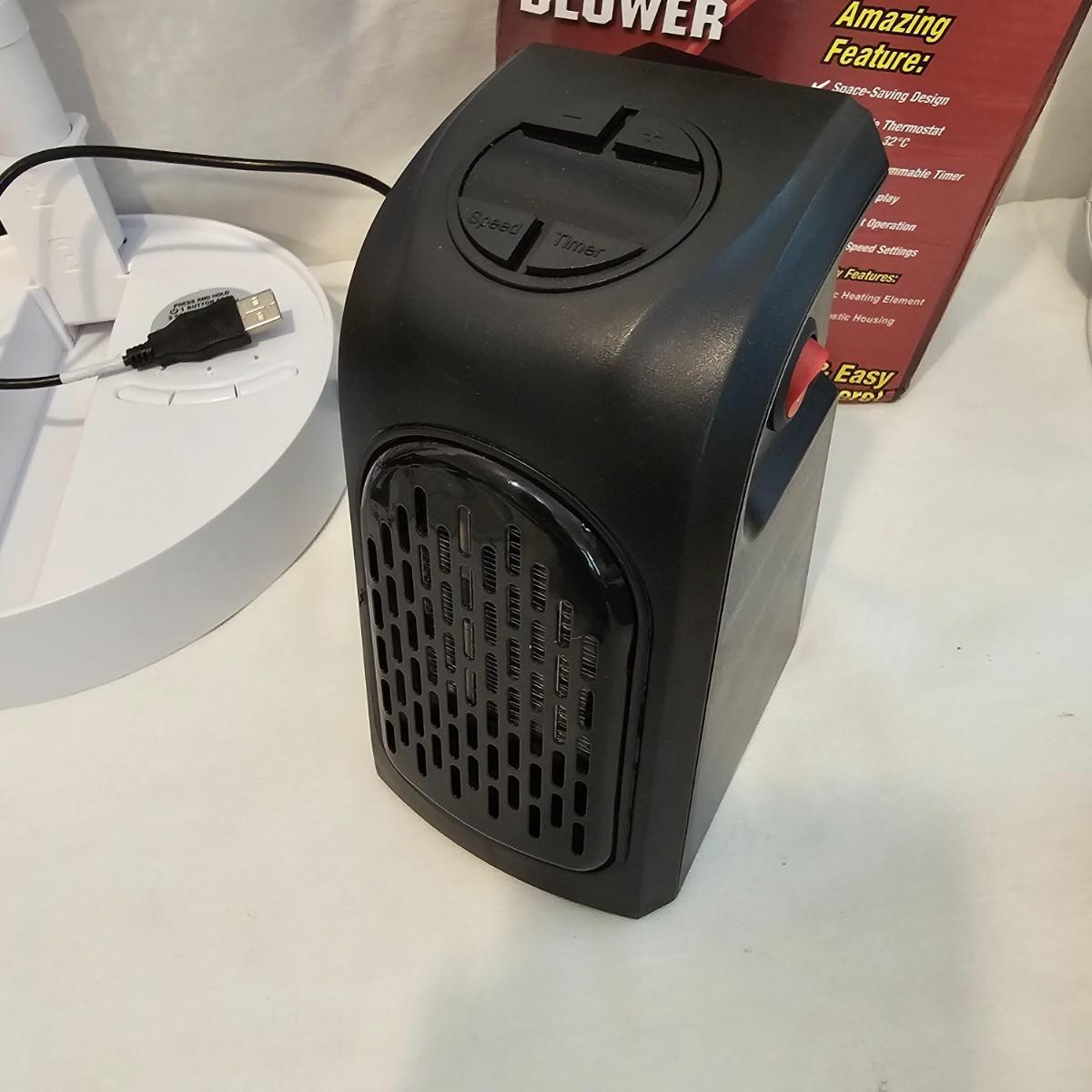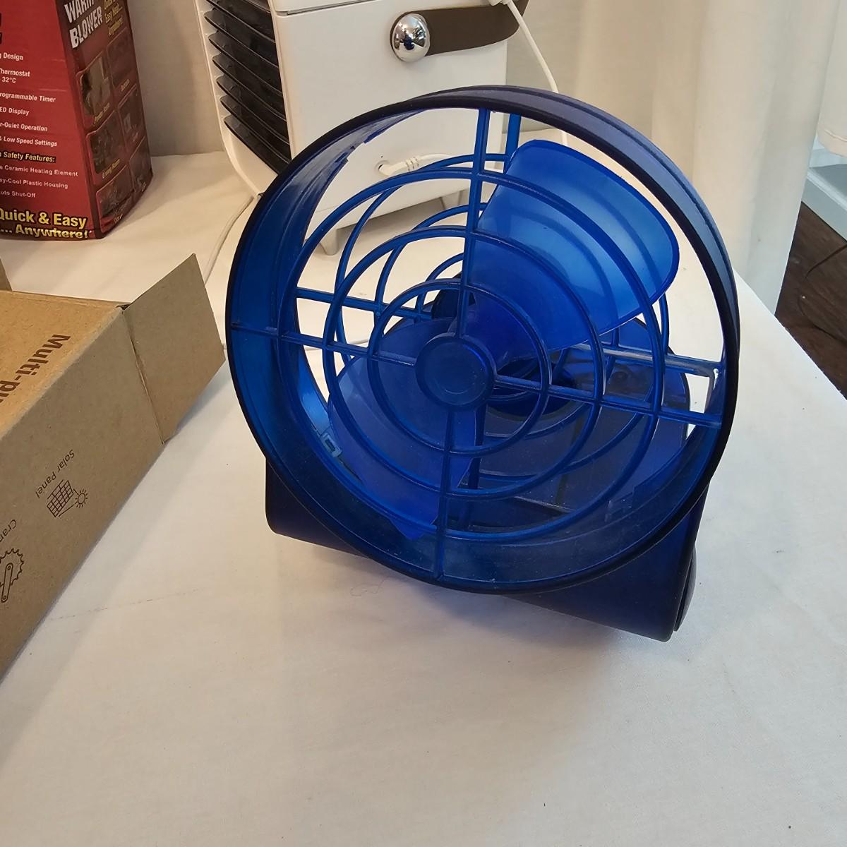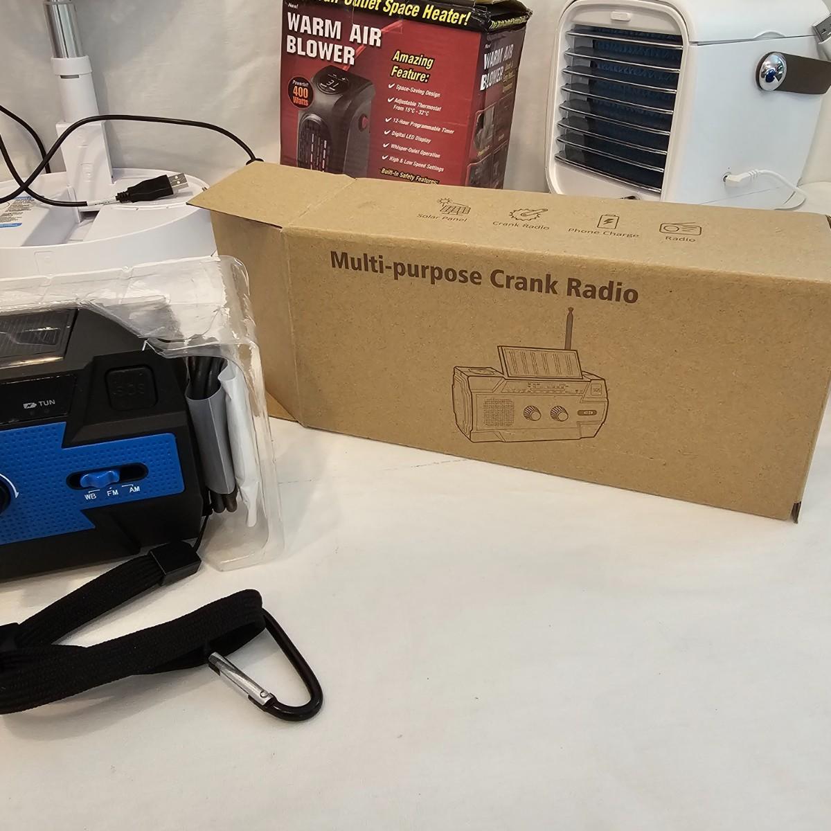 A collection of hand held and tabletop items including flashlights, fans, table lamps and more. All AC items powered on when plugged in. Mini flashlights, a four cell Maglite, other safety items. Note that some items are USB plugs and will need adapters, not included. See photos for details. Shipping available.