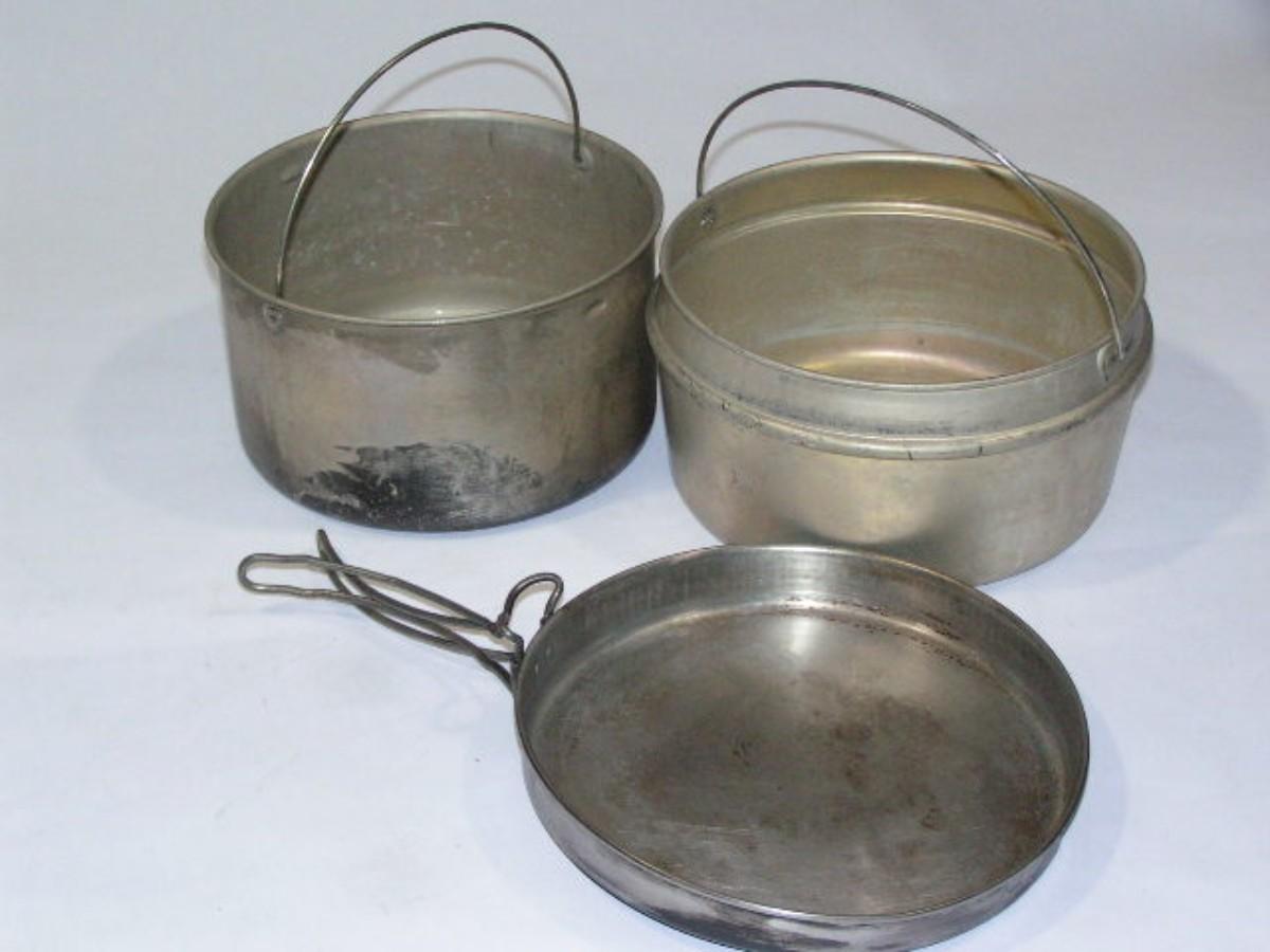 Portable “ROCKET STOVE” and Korean war era G.I. cook set with 2 bail handle nesting pots and a 7-1/2” stainless steel skillet w/folding handles that doubles as a pot lid/cover. Now for you preppers! Stove is about 10” tall X6-3/4” X6” w/o pot grate on top. Burns charcoal, wood scraps, pine cones, whatever wood scrap material is available. FREE FUEL! Has air flow control slider and ash drawer. This is a unique, very well thought out design and very well built stove made with galvanized sheet steel that's painted w/stove black. It fits neatly in a S.A.W.(Fat 50) ammo can for storage. Rocket Stoves are really handy for campers, back packers, outdoorsman or just for fun in the back yard. AND they are a great back-up cooking appliance for preppers OR anyone in an emergency.