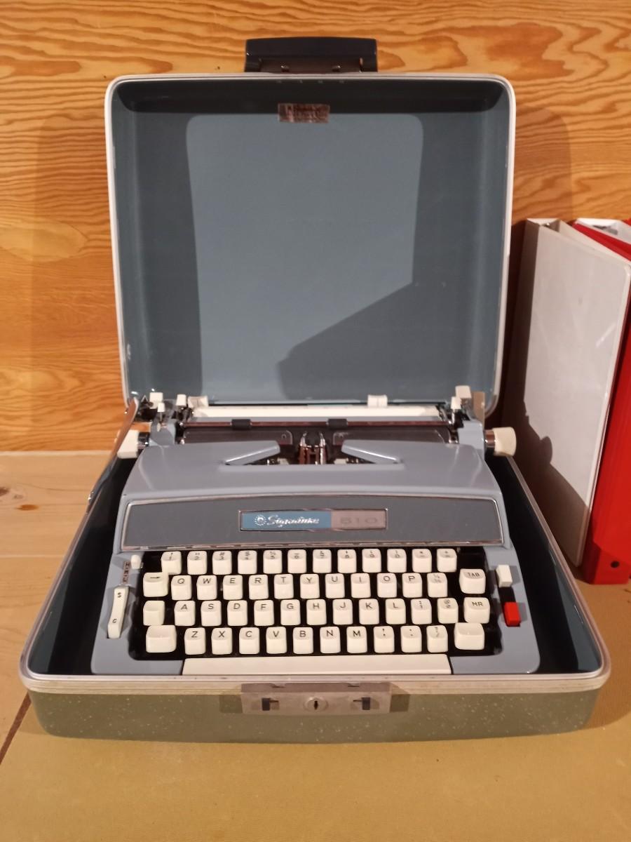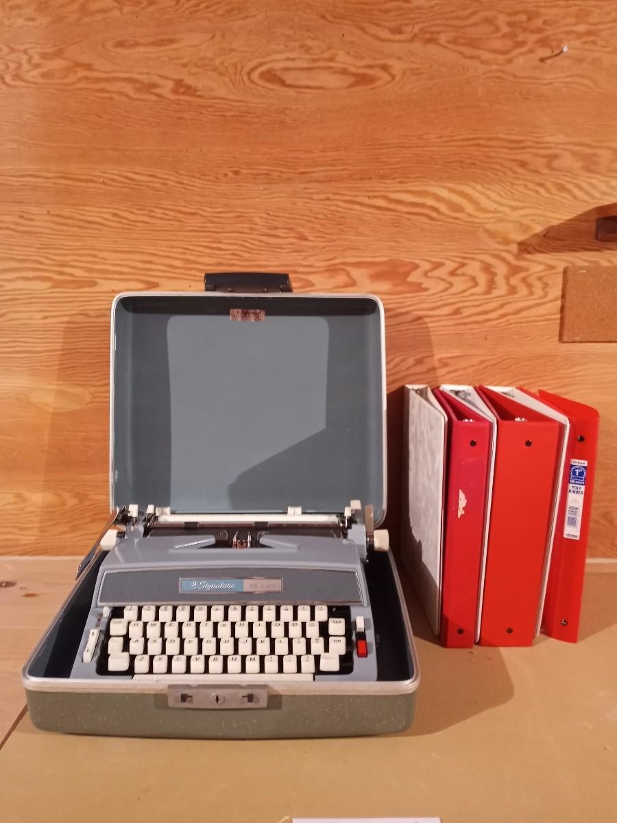 PORTABLE SIGNATURE 510 TYPEWRITER IN CARRY CASE ANE NOTEBOOKS