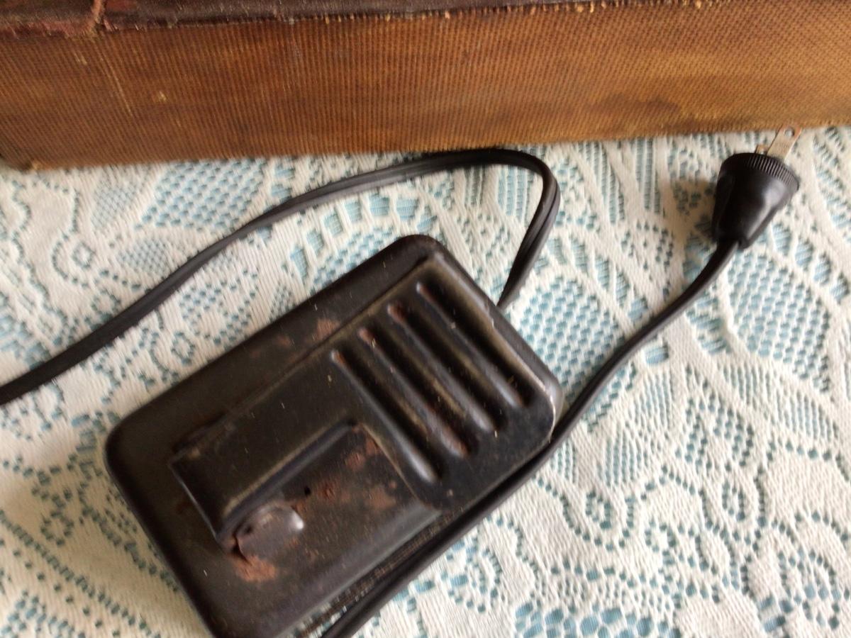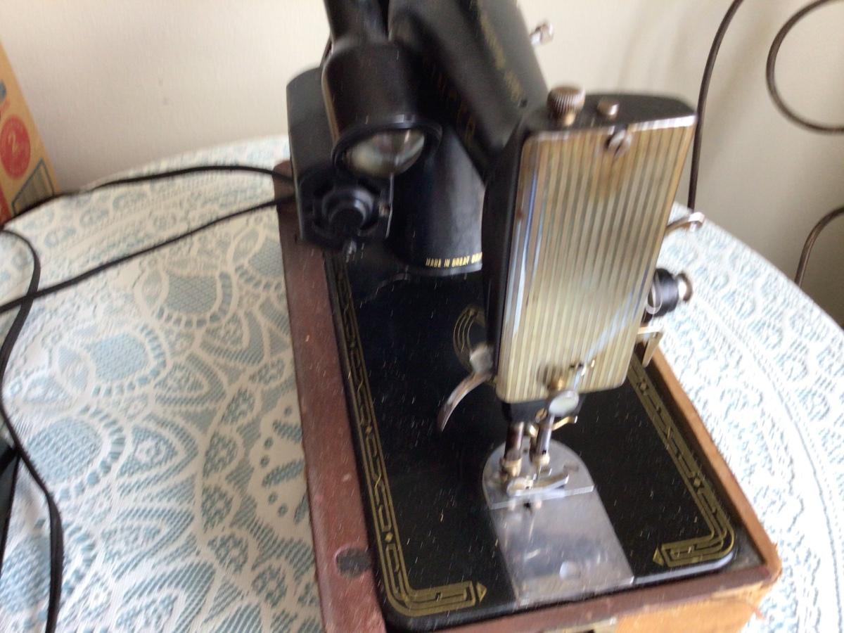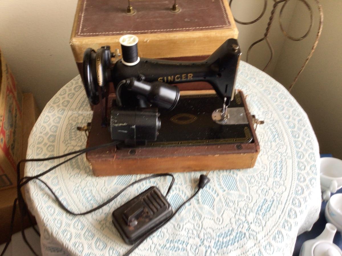 This is a great portable Singer sewing machine. Has a light and foot peddle. The cover locks on for taking the machine on the go. Great for quilting.