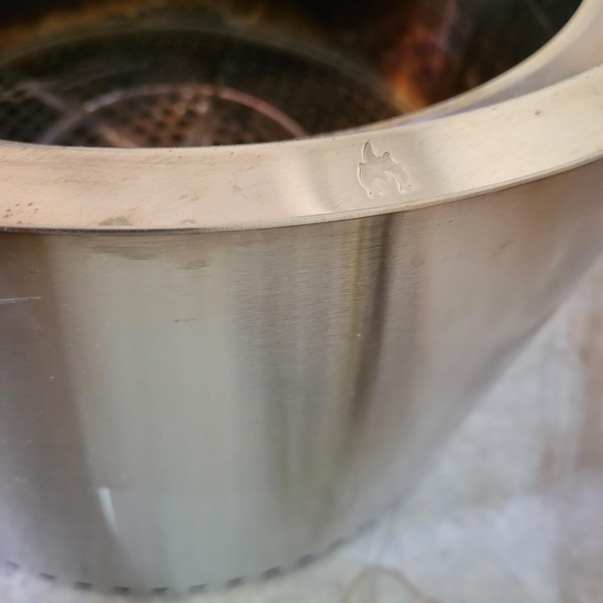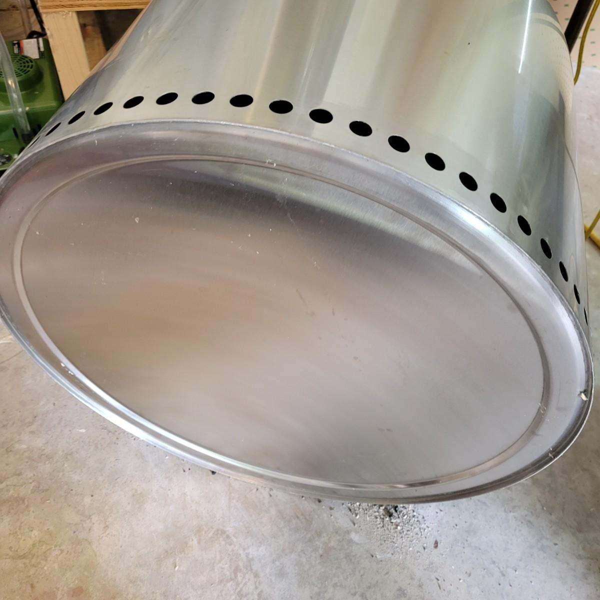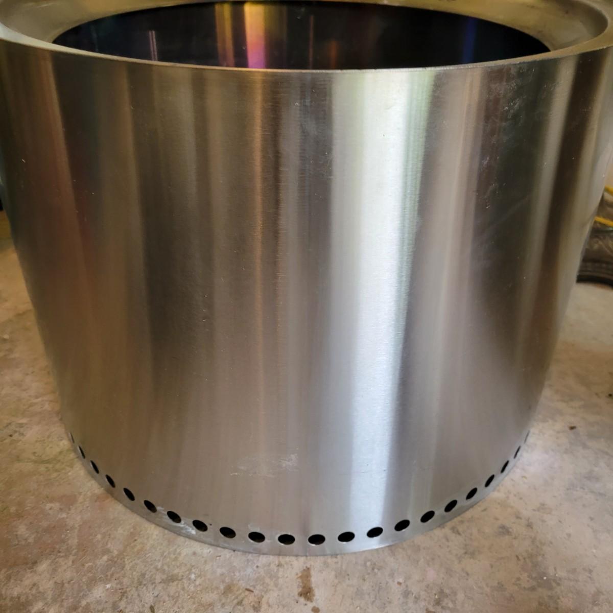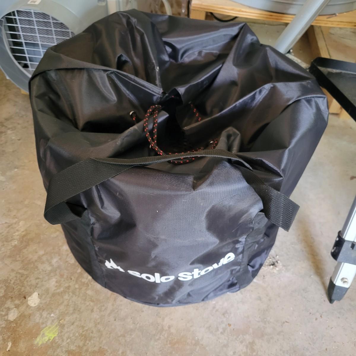 A portable fire pit made of steel manufactured by Solo Stove. This piece appears to have seen minimal use and measures approximately 19.5"D x 14"H. This stove also comes with a bag and therebis no base.. Local pickup only
