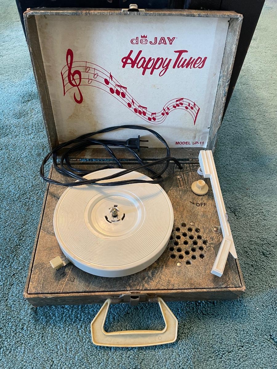 Happy Tunes portable record player, model SP-11 works. Needs a needle. In case.