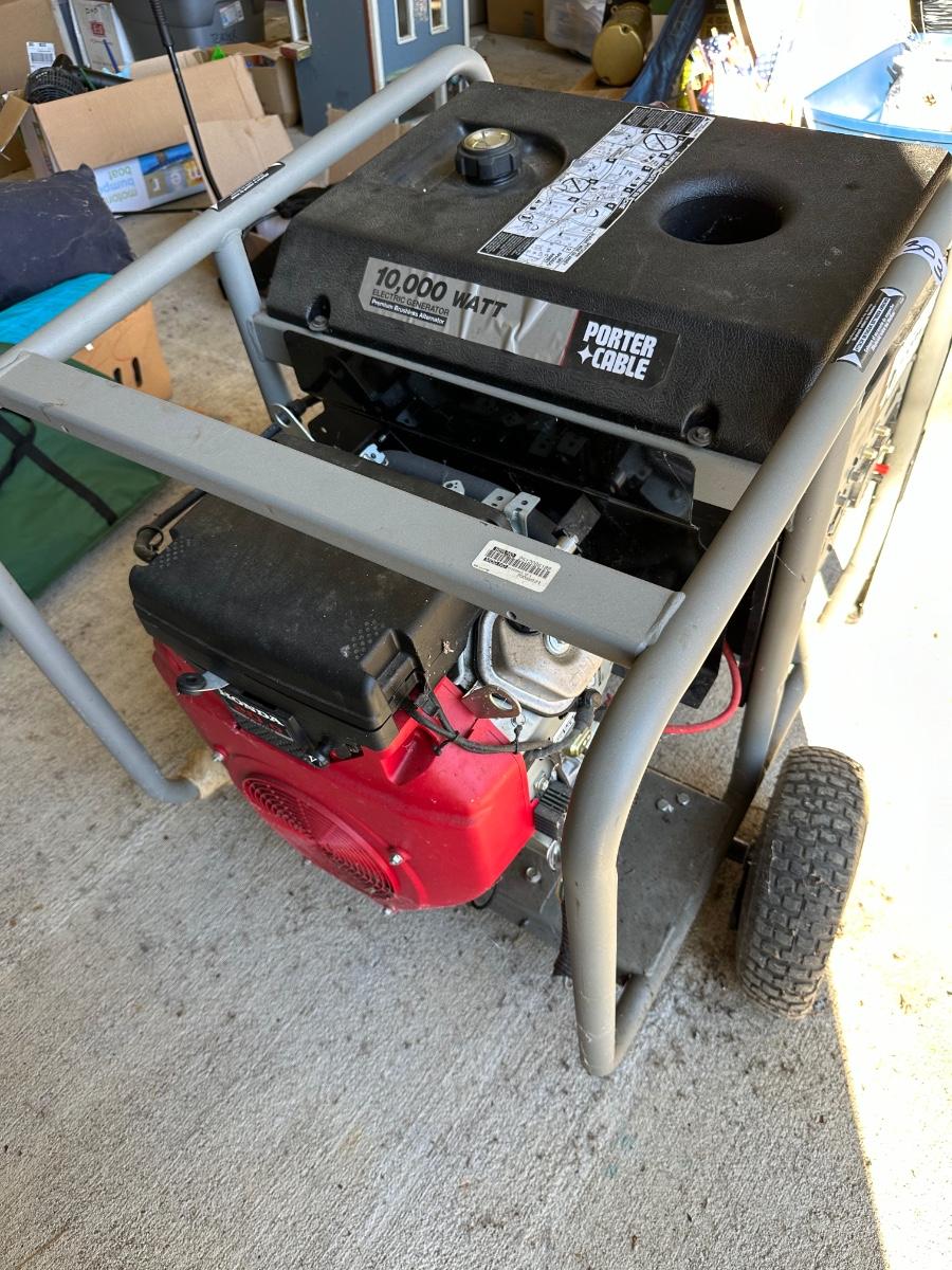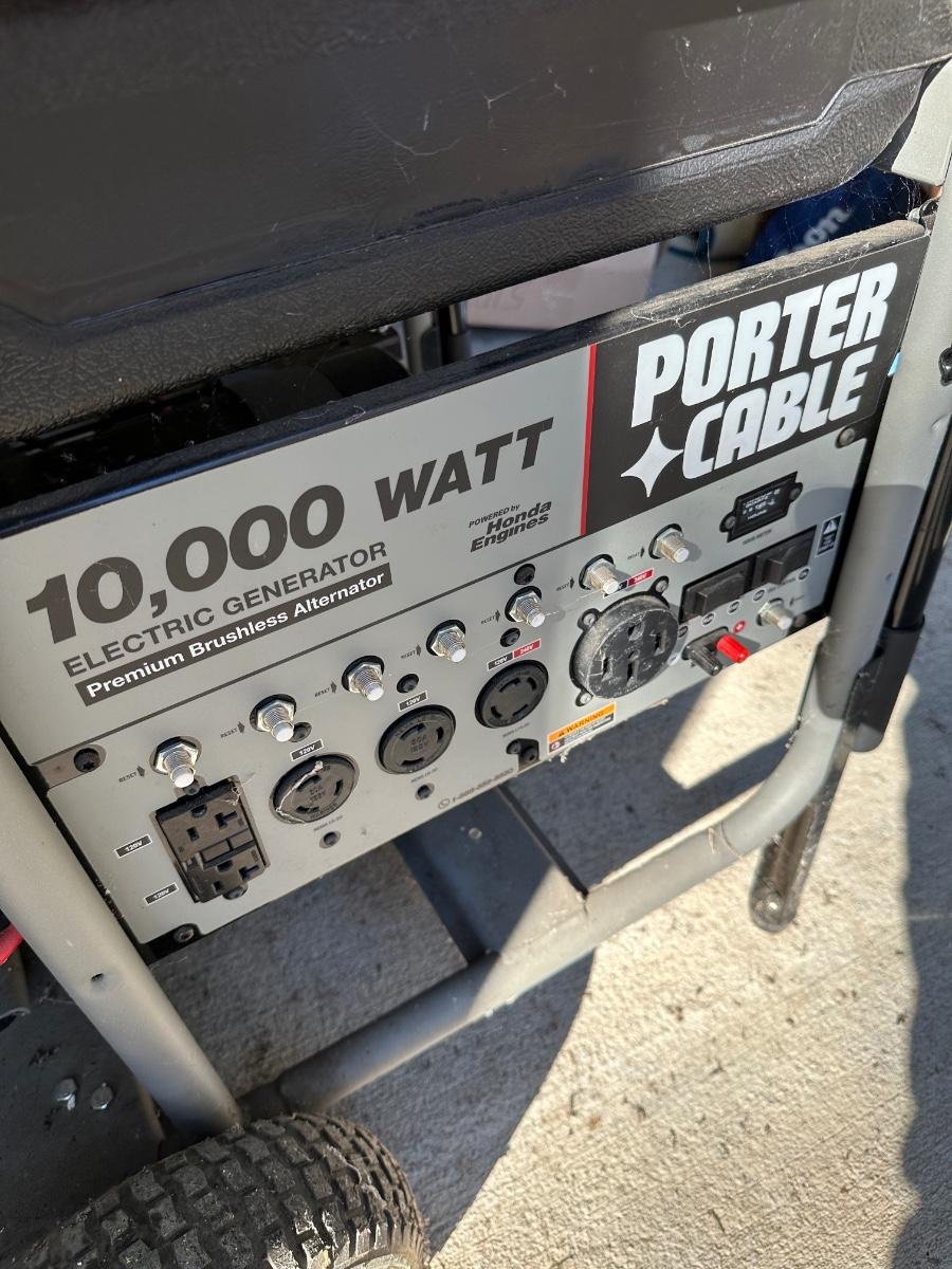 PORTER CABLE 1000 WATT ELECTRIC GENERATOR Honda motor AS PICTURED Tested, runs. Shows 5 hours run time