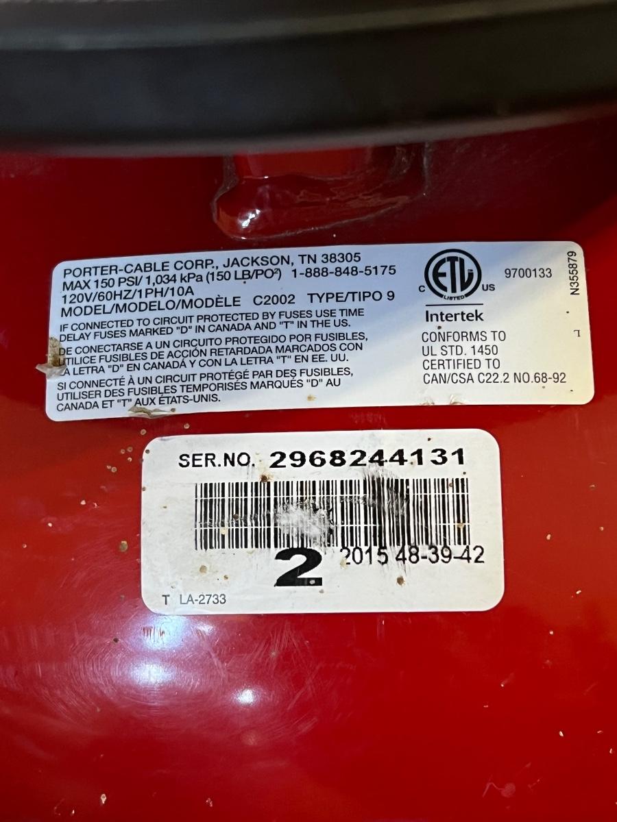 PORTER CABLE ~ 150 PSI Air Compressor With NAPA Hose