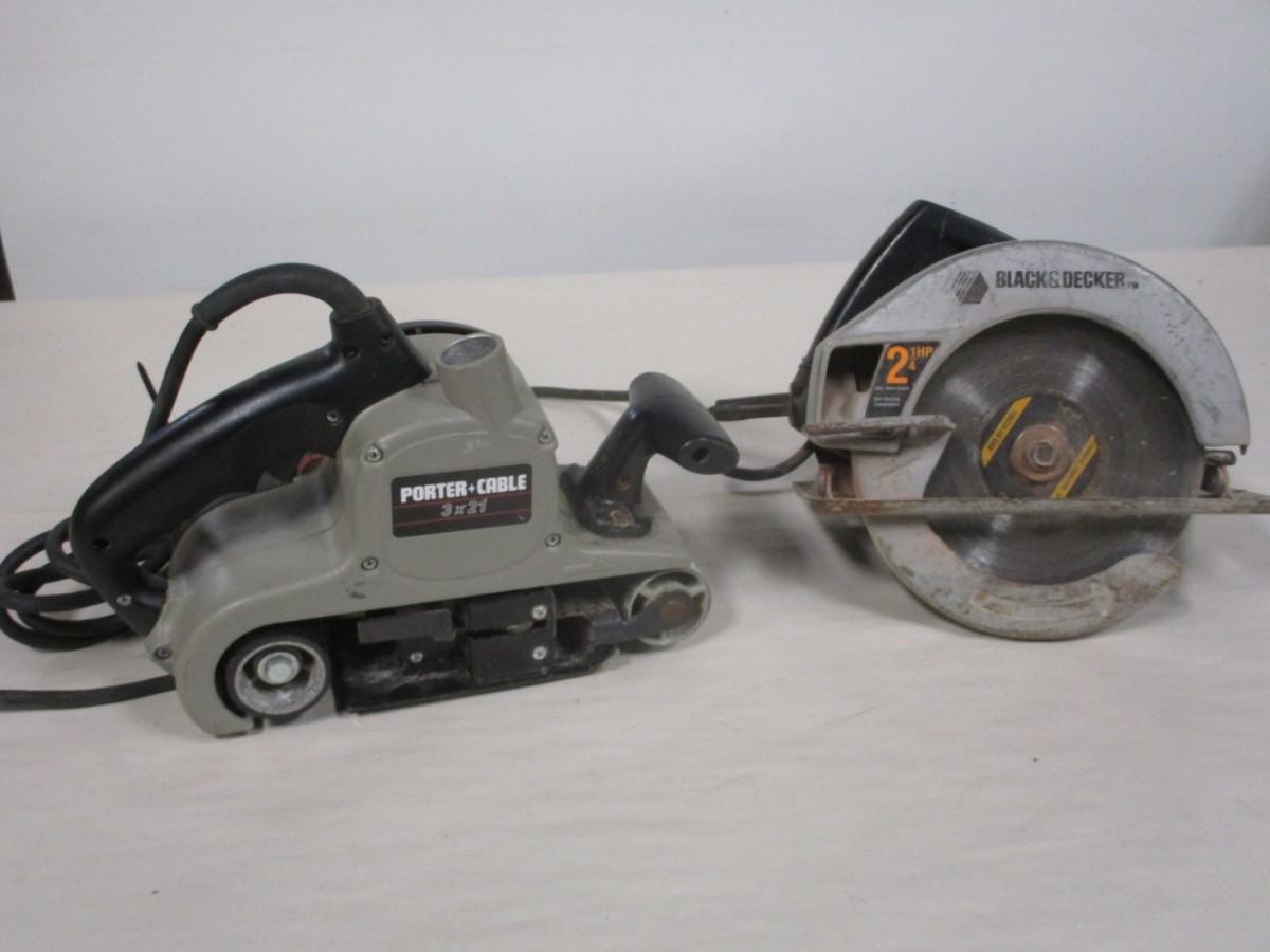 Porter Cable 3 x 21 Sander & Black & Decker 7 1/2" Circular Saw