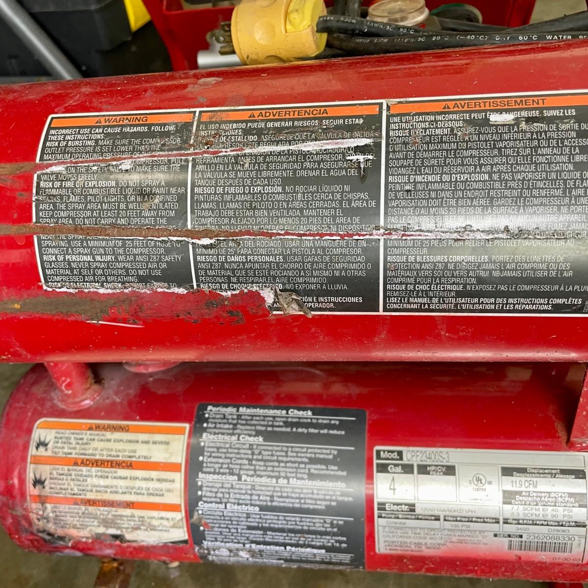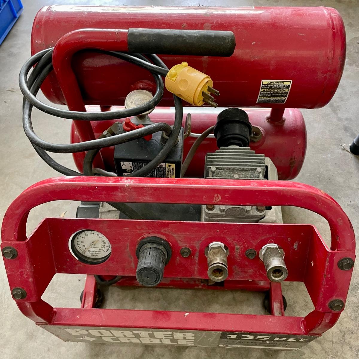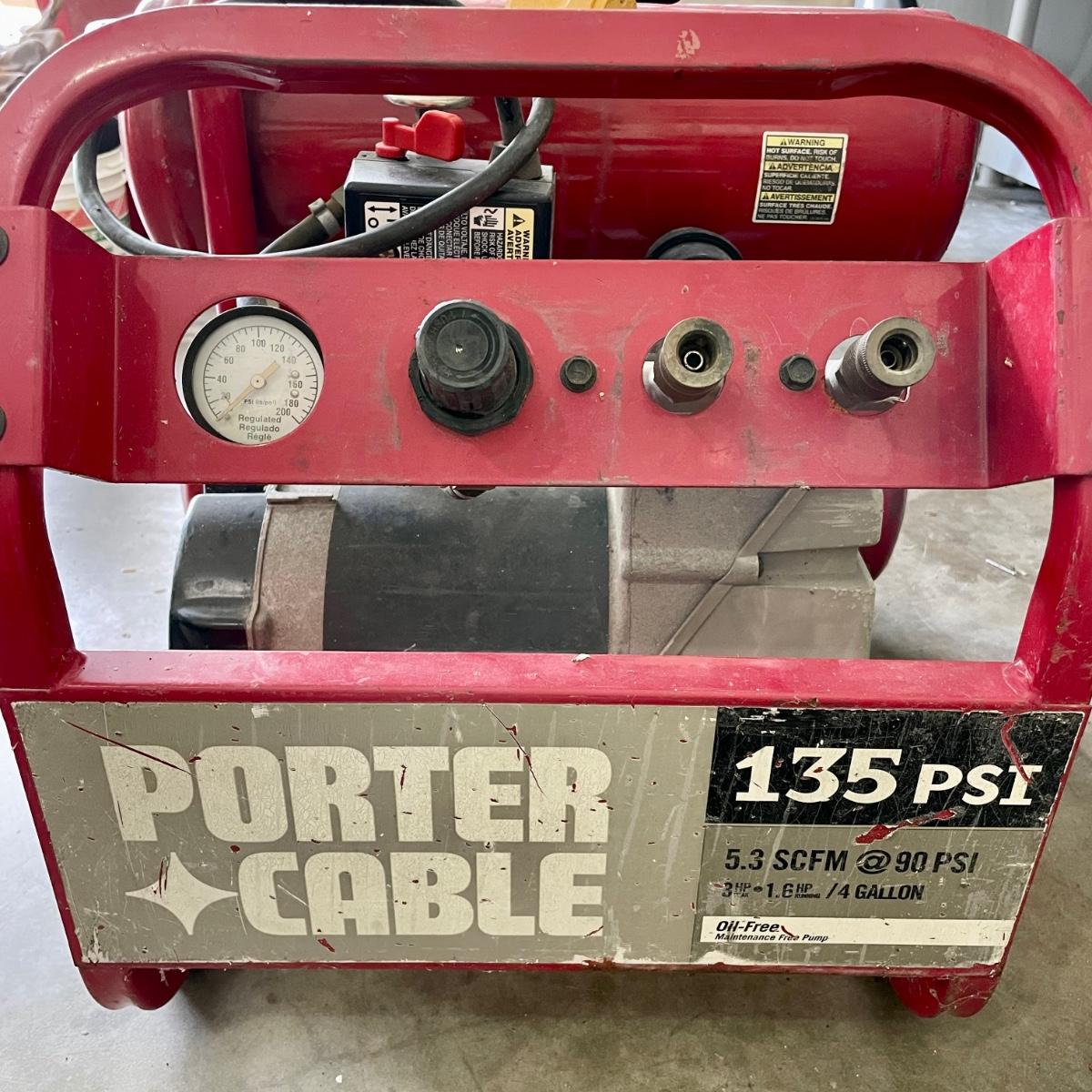 Used Porter Cable 135 PSI air compressor in working condition. 4gallon oil-free, maintenance free air pump.