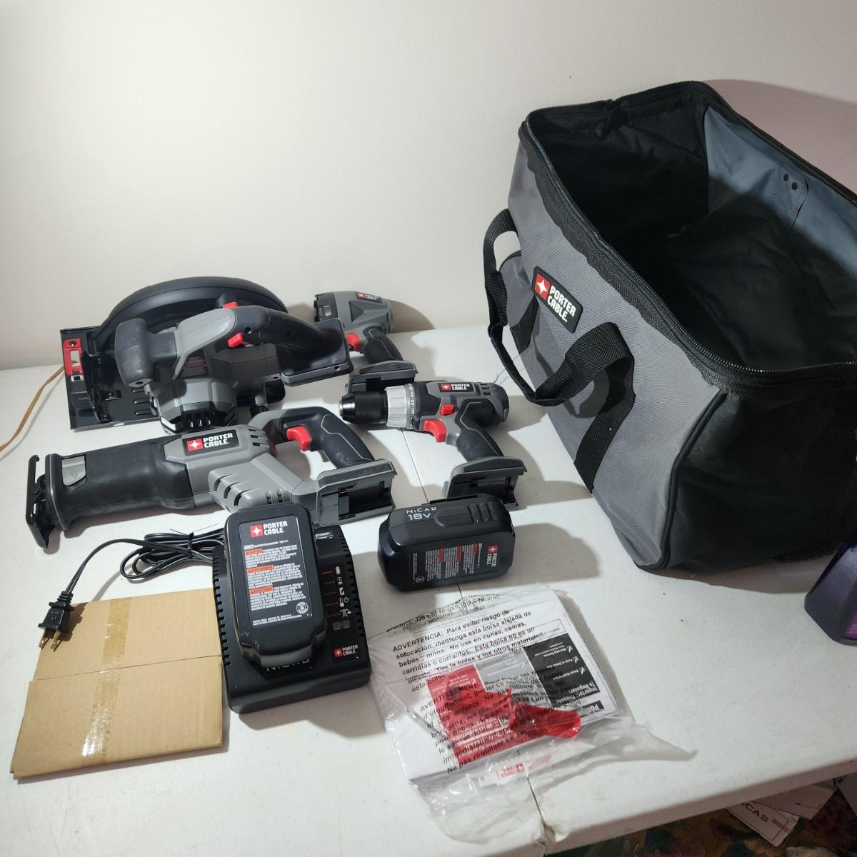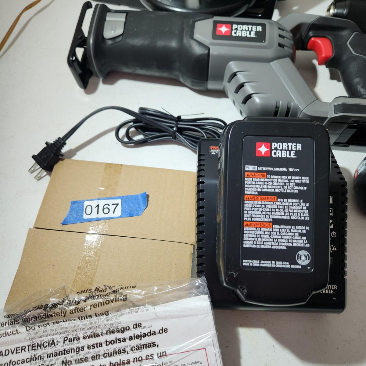 Porter Cable Cordless Tool lot w 2 Batteries & Charger w Bag