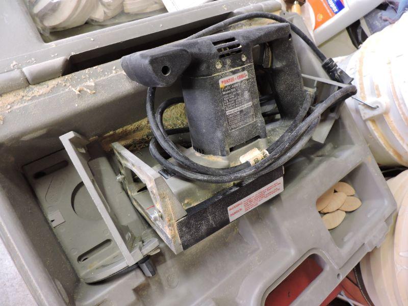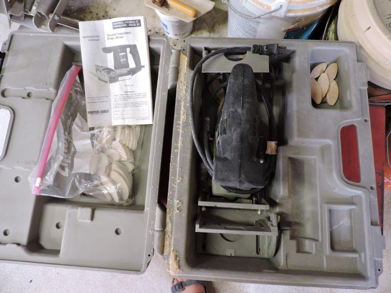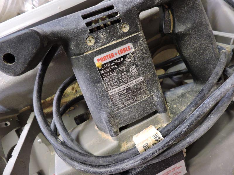 Porter Cable Plate Joiner Kit model 556. Please read Terms and Conditions before placing a bid. Pick up is Friday, October 25th between 4 and 7, and Saturday, October 26th between 9 and 1. Please bring boxes, tools, and muscle to help move your items. Props included in photos are not included in listing. All measurements are approximate.