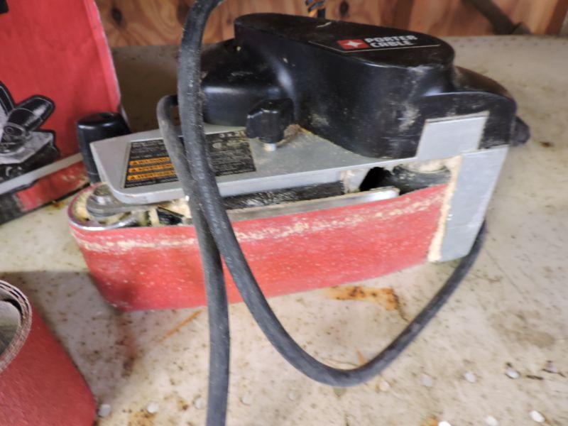 Belt sandere with belts. Please read Terms and Conditions before placing a bid. Pick up is Friday, October 25th between 4 and 7, and Saturday, October 26th between 9 and 1. Please bring boxes, tools, and muscle to help move your items. Props included in photos are not included in listing. All measurements are approximate.