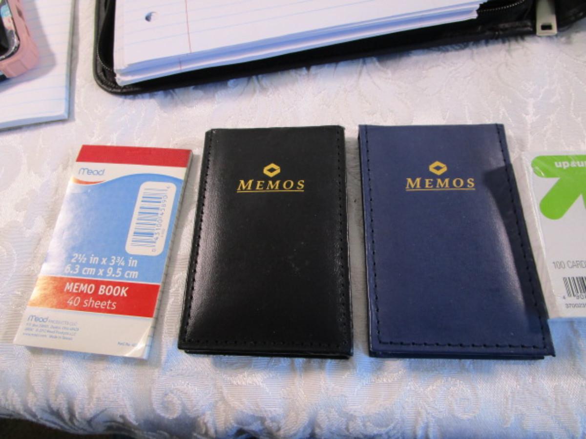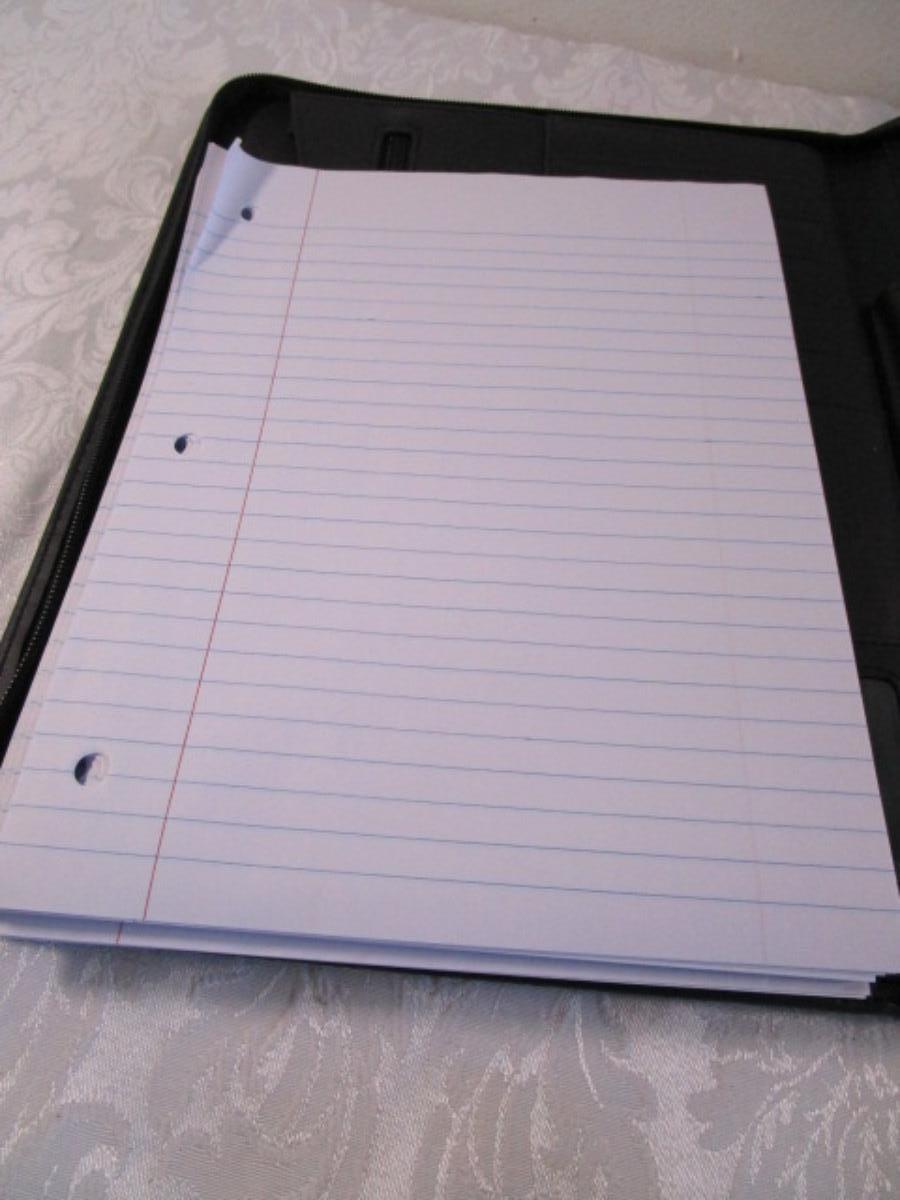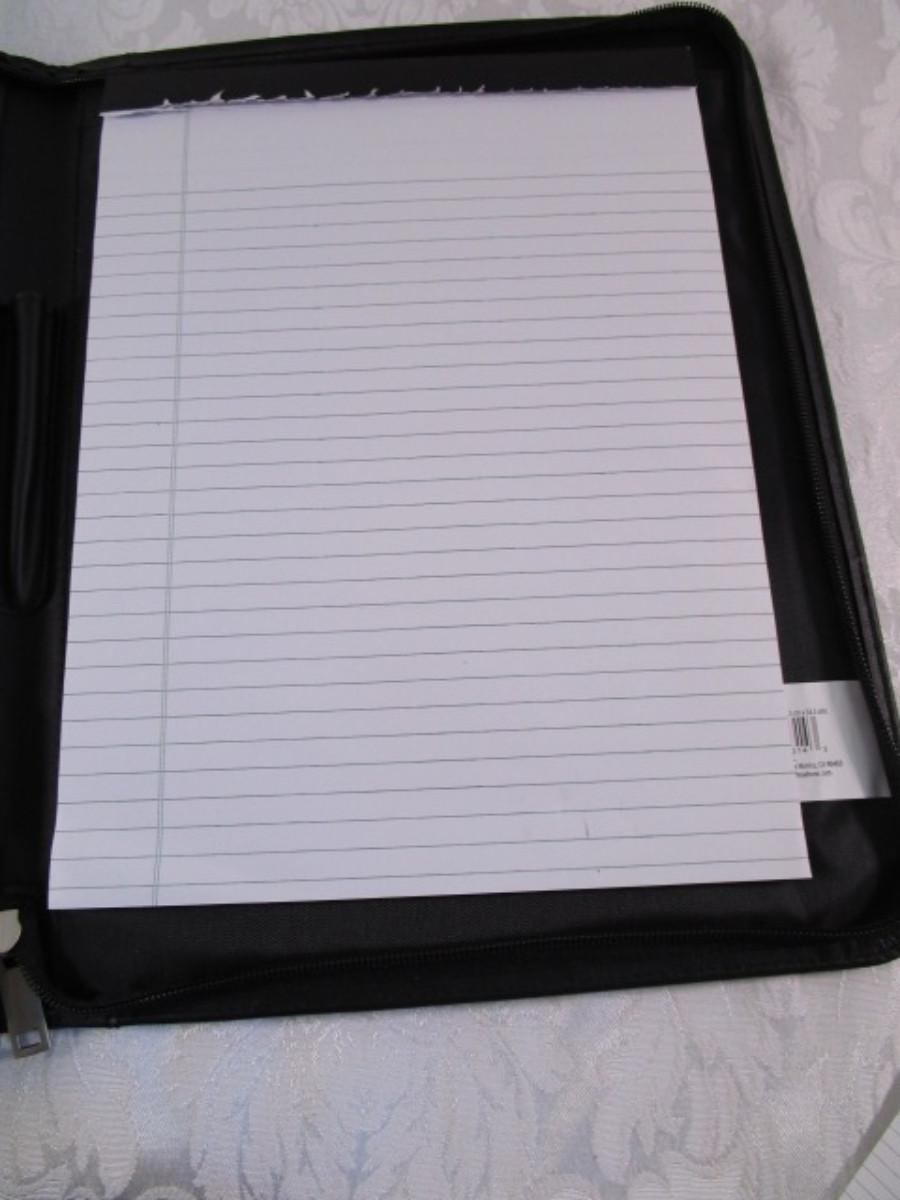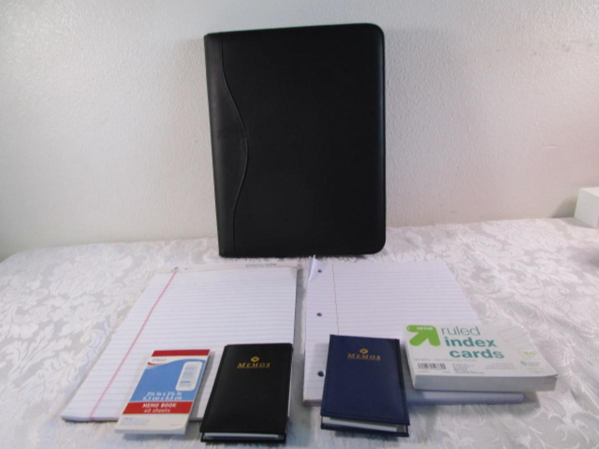 Portfolio with pad, 2 memo pads, 1 tablet, looseleaf paper, index cards