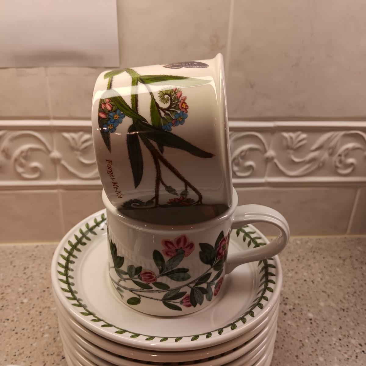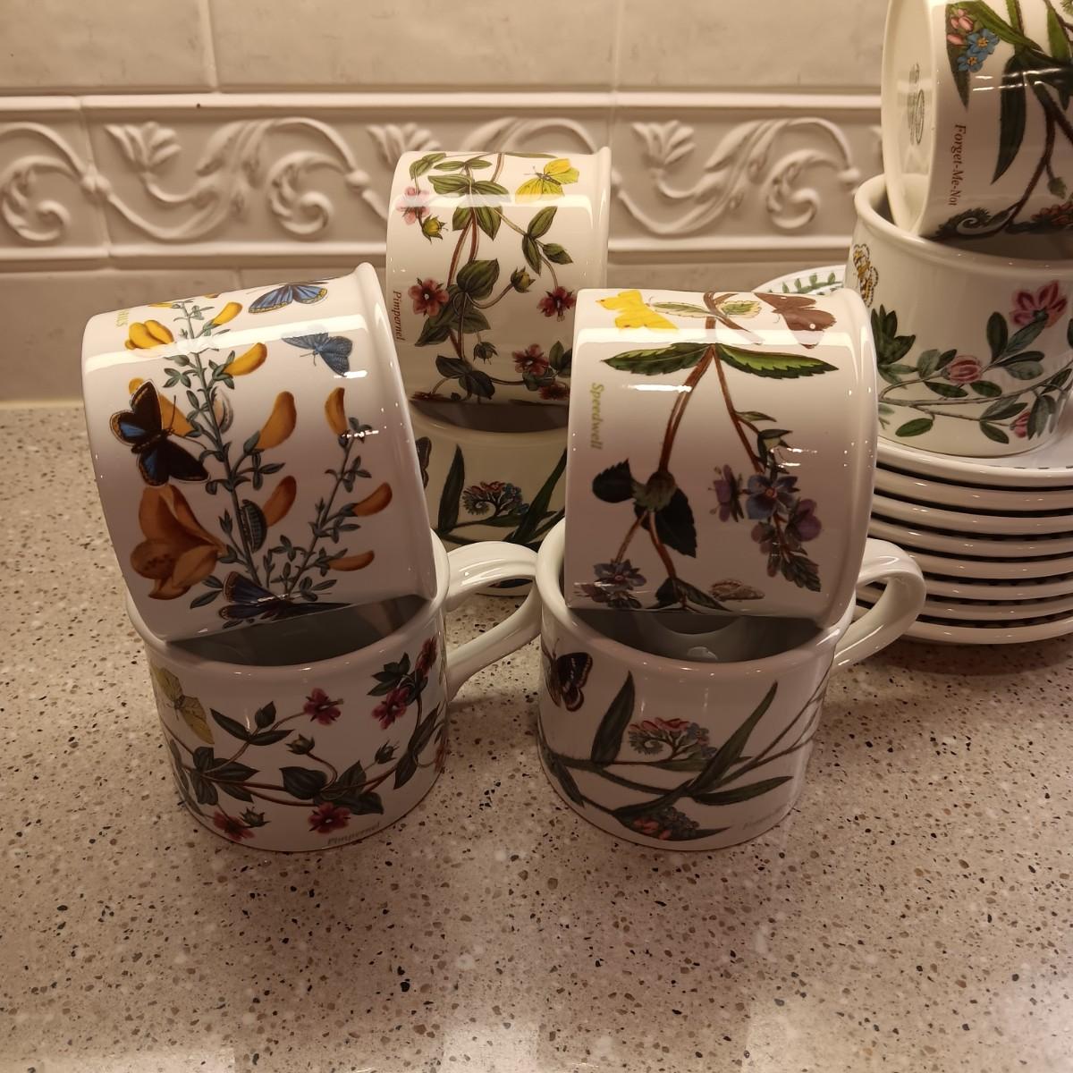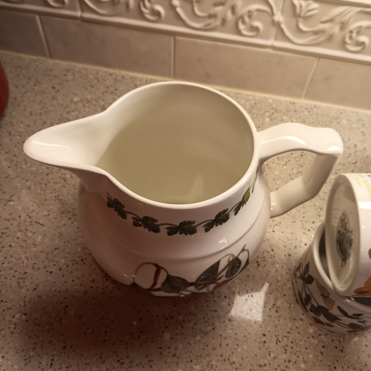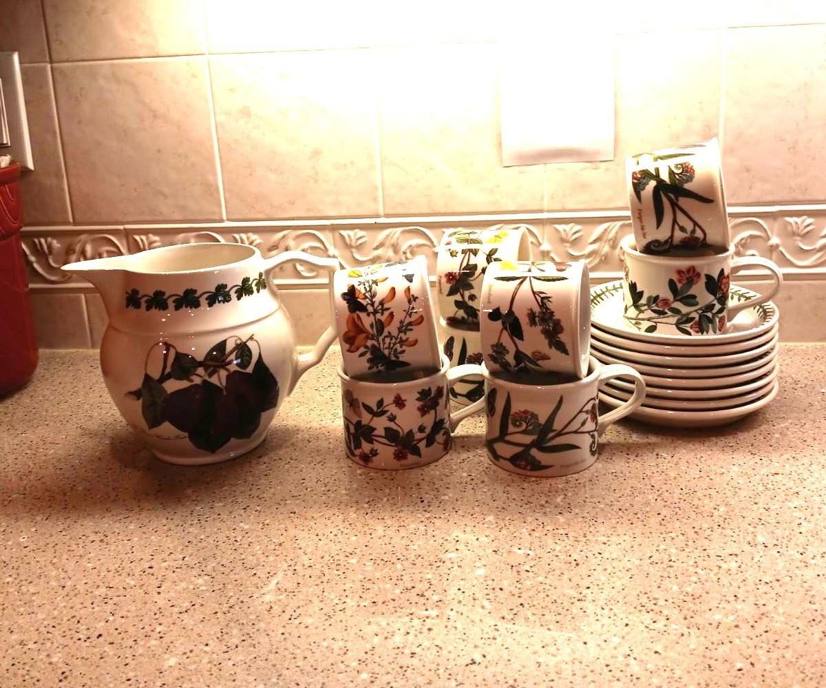 PORTMEIRION BOTANIC CUPS AND SAUCERS PLUS A PITCHER
