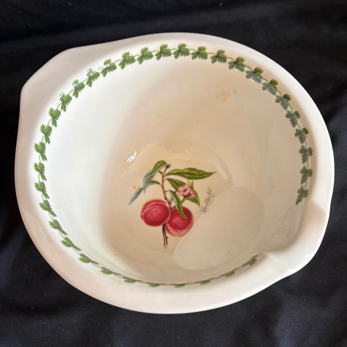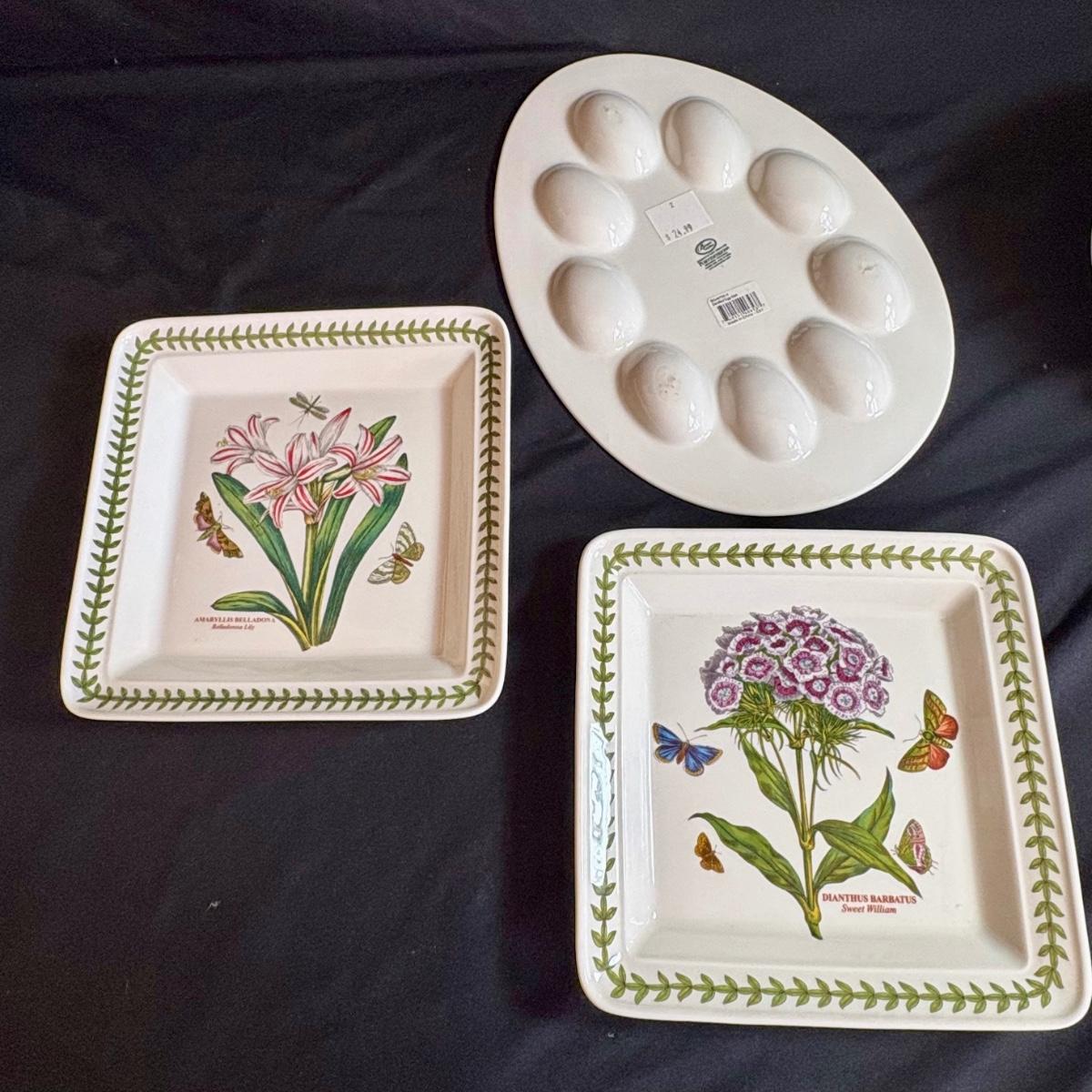 Classic English china in the Botanic Garden and Pomona patterns. Six cotton napkins 17” x 17”. Tea cozy measures 12.5” x 9”H. Some fading or slight stains. Three 8.5” lunch plates, eight 7” salad plates (two Pomona six Botanic Garden) Deviled egg plate, batter bowl, two square plates (8.5” x 8.5”) and more. Two mugs have a chipped rim (see pictures). Shipping available. Shipping can be costly. We suggest contacting our preferred local shipping provider, Postage Express, with dimensions and getting an estimate before bidding: (828) 255-9250 or shipping@postageexpressnc.com.