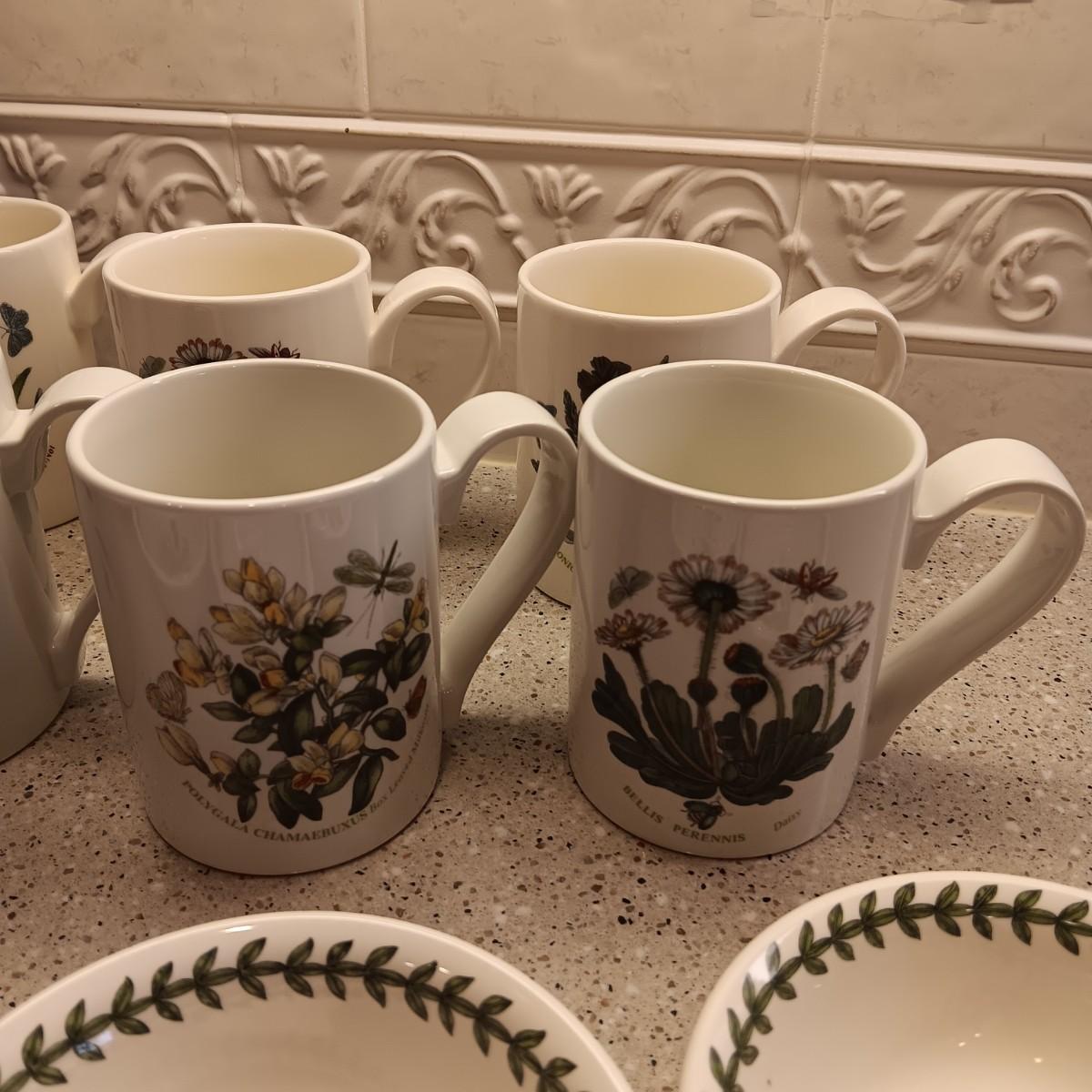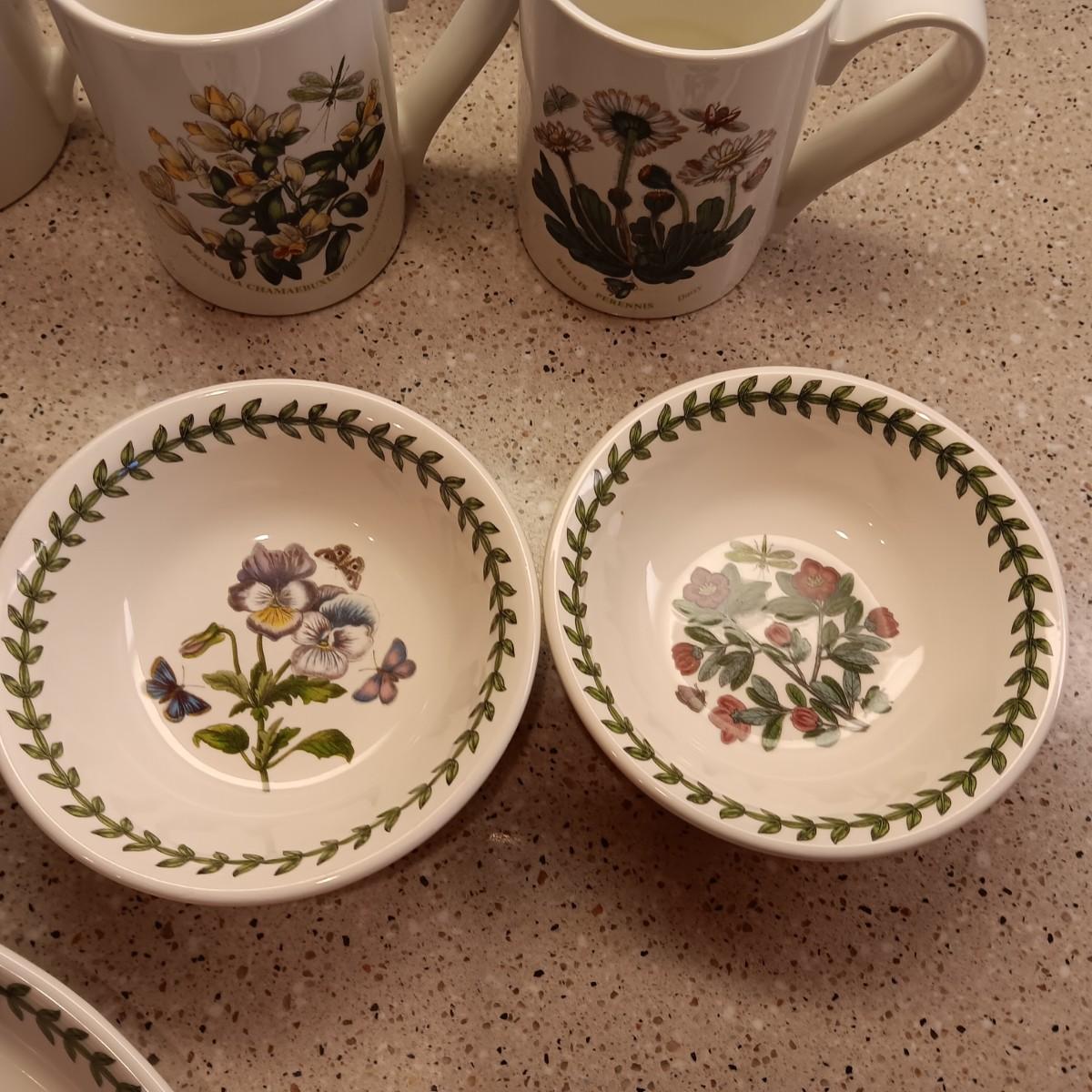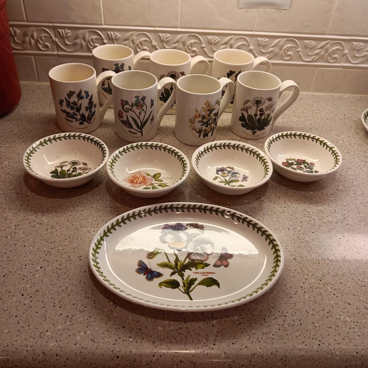 PORTMEIRION SUSAN WILLIAMS-ELLIS BOTANIC GARDEN COFFEE MUGS, SMALL BOWLS AND PLATTER