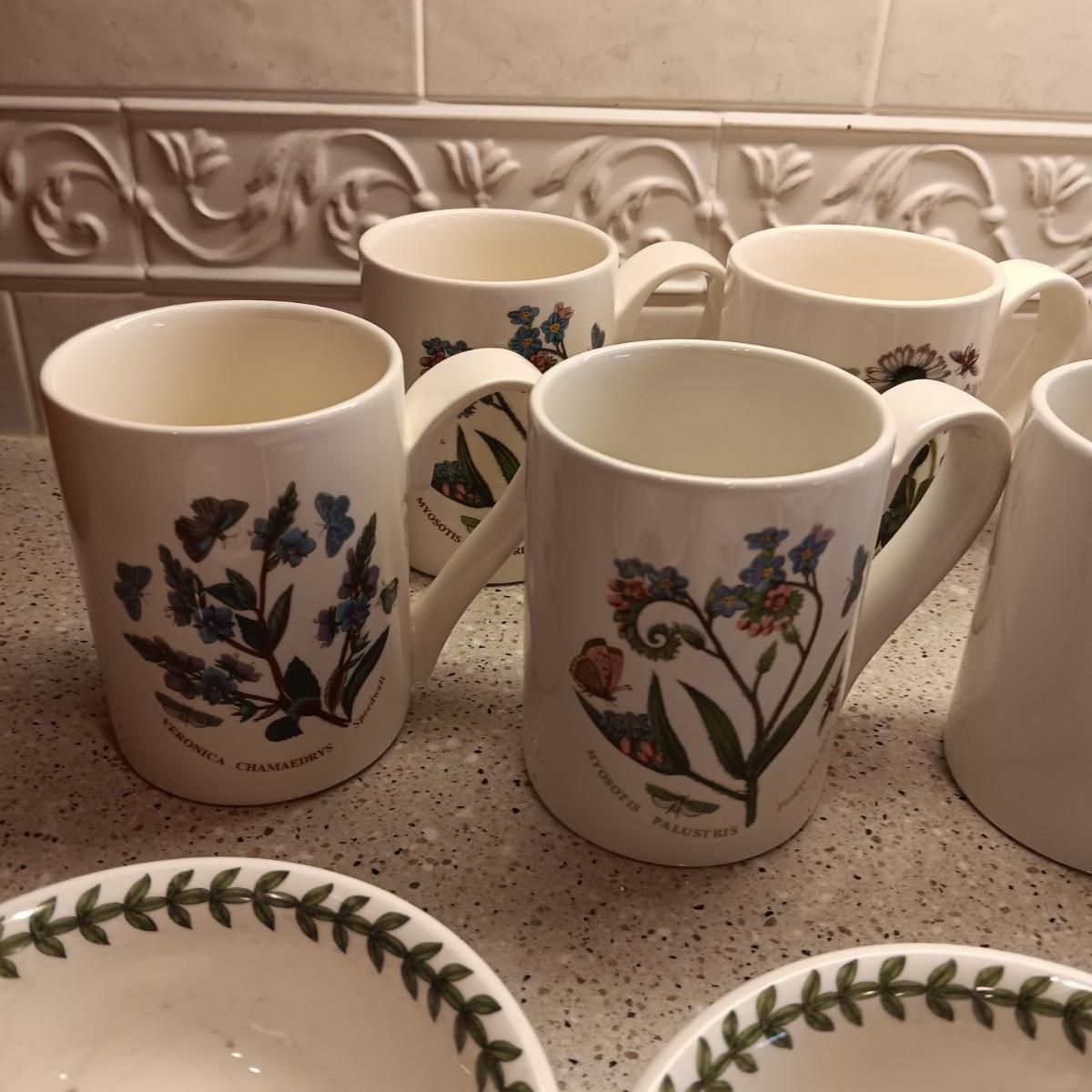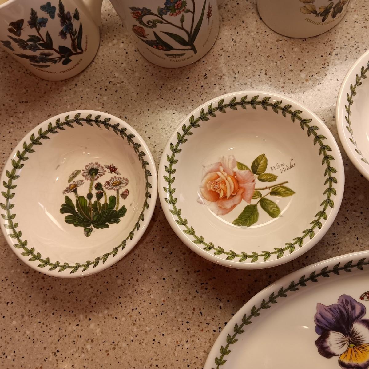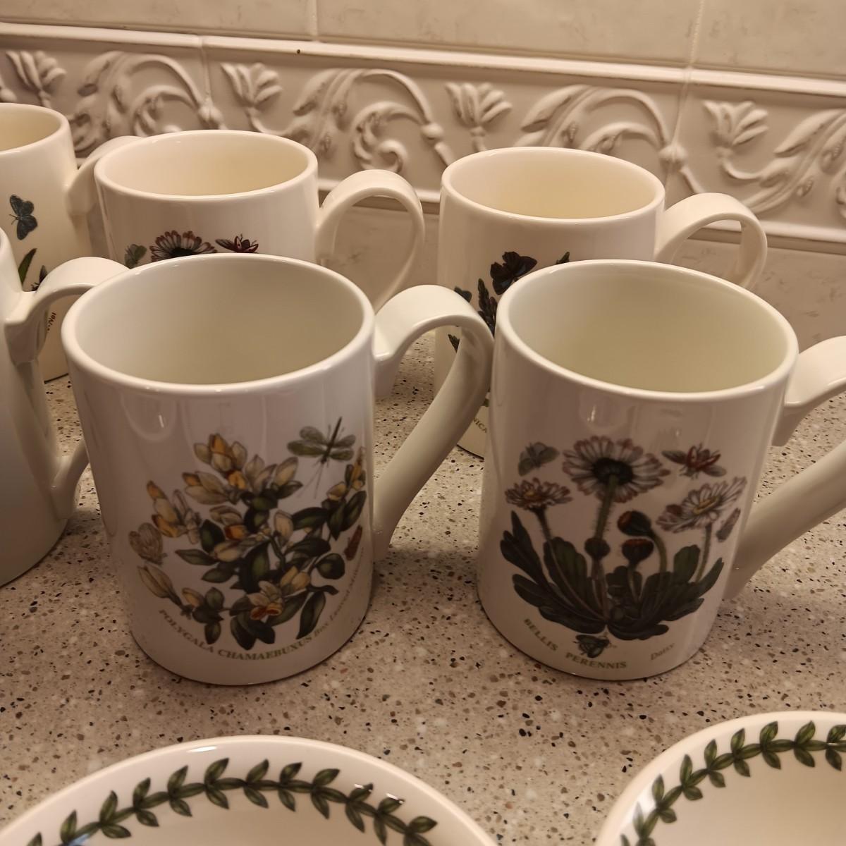 PORTMEIRION SUSAN WILLIAMS-ELLIS BOTANIC GARDEN COFFEE MUGS, SMALL BOWLS AND PLATTER