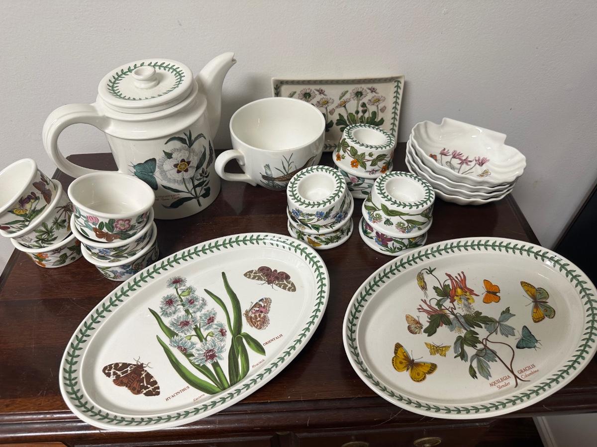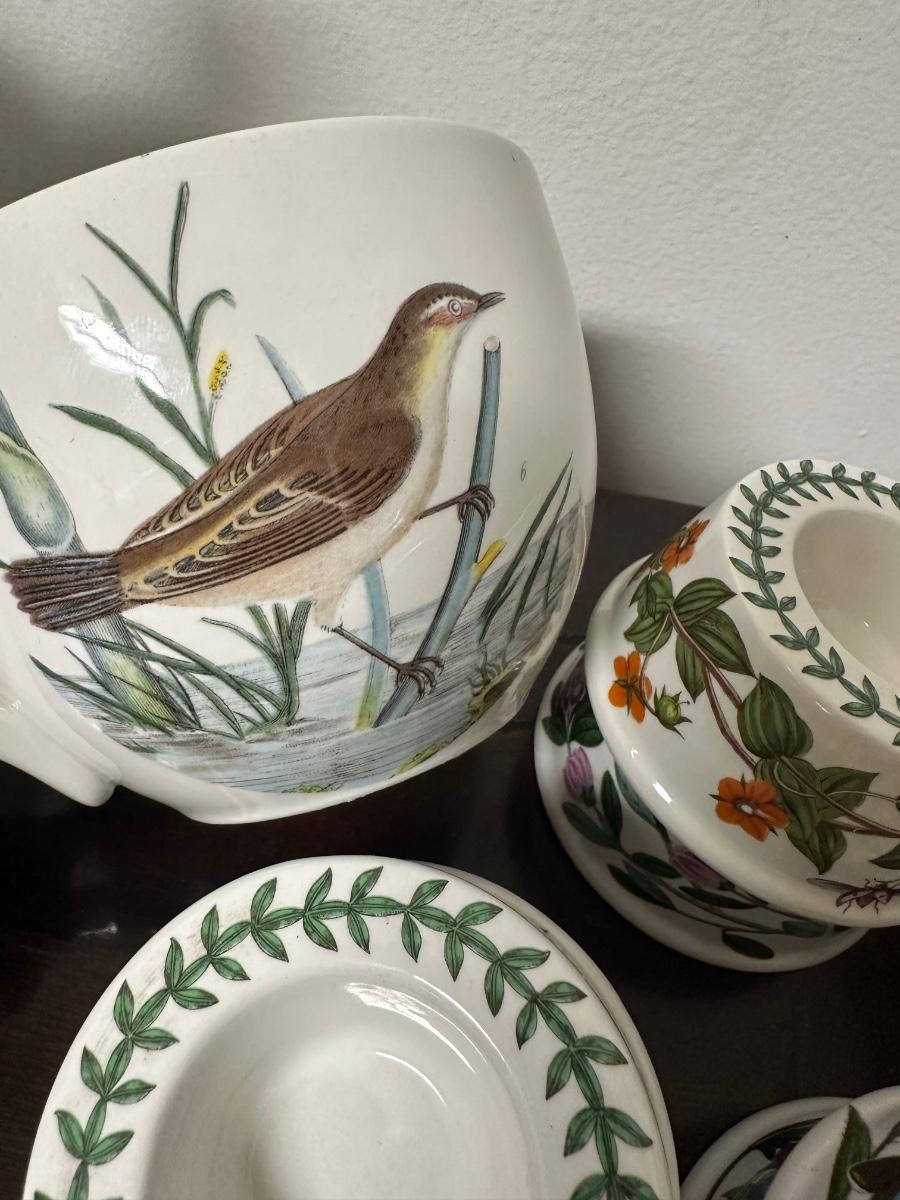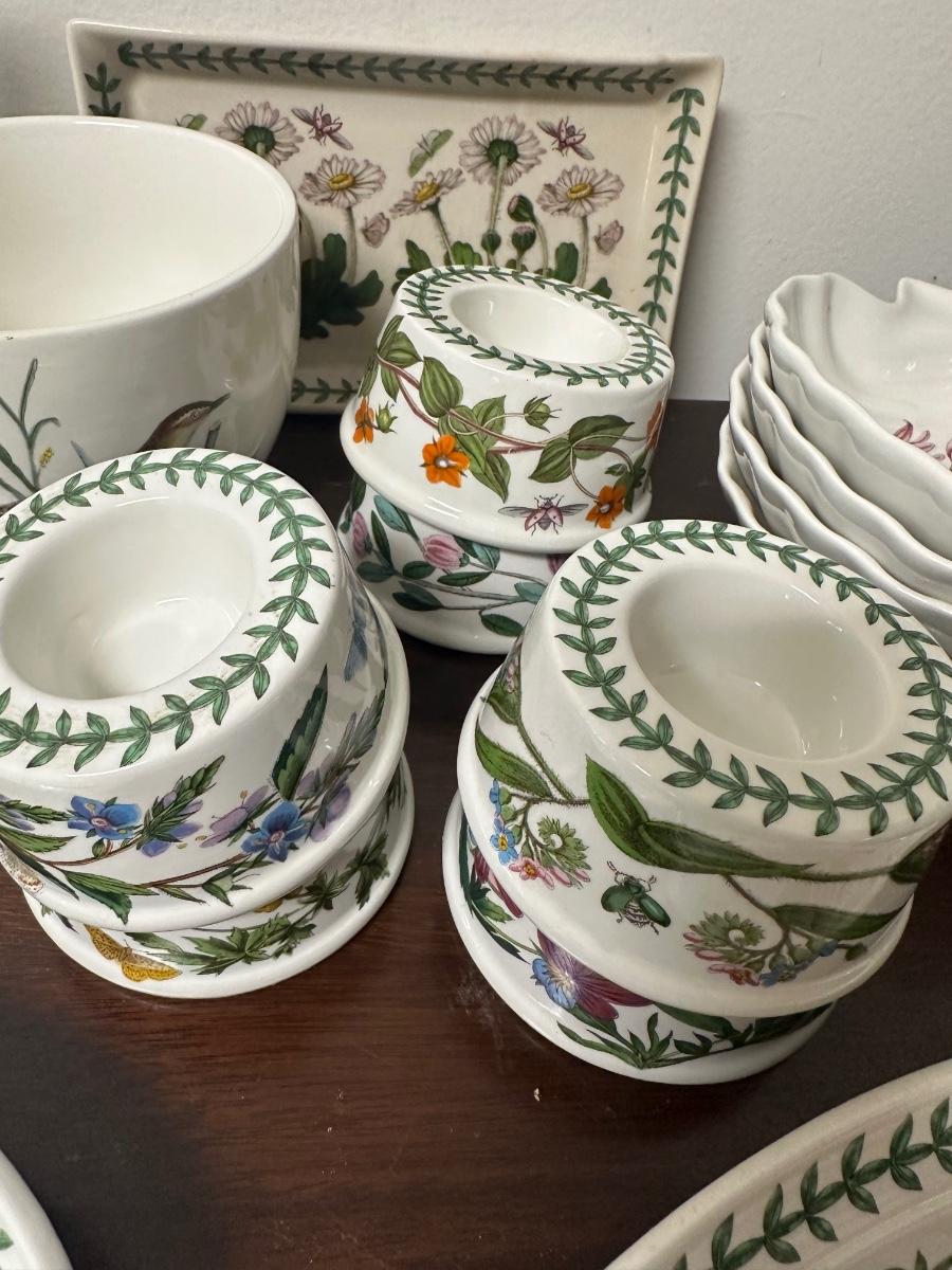 PORTMEIRION THE BOTANIC GARDEN PIECES 2 PLATTERS, 6 EGGS CUPS, 6 CUSTARD CUPS, PITCHER, BUTTER PLATE, CLAM SHELL DISHES & BONUS BIRDS OF BRITAIN LG MUG
