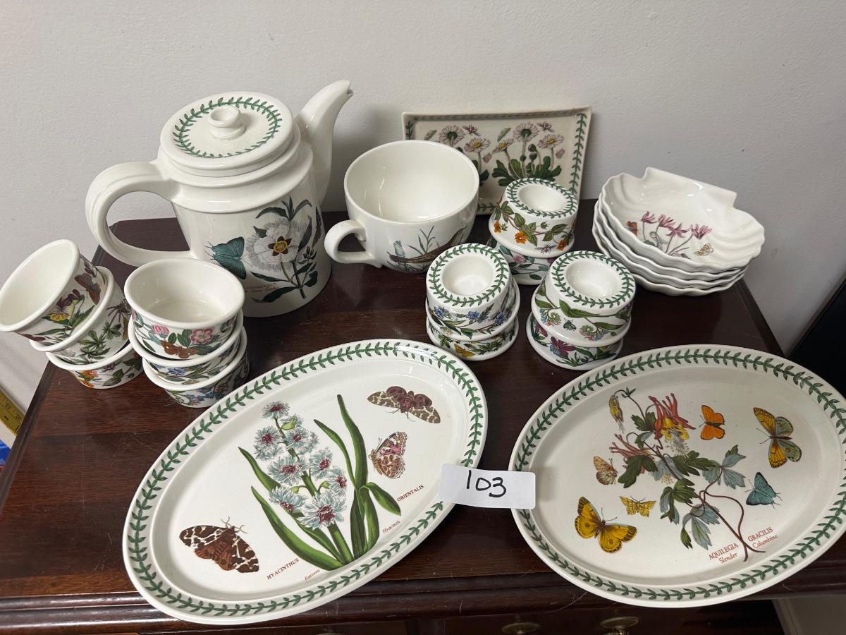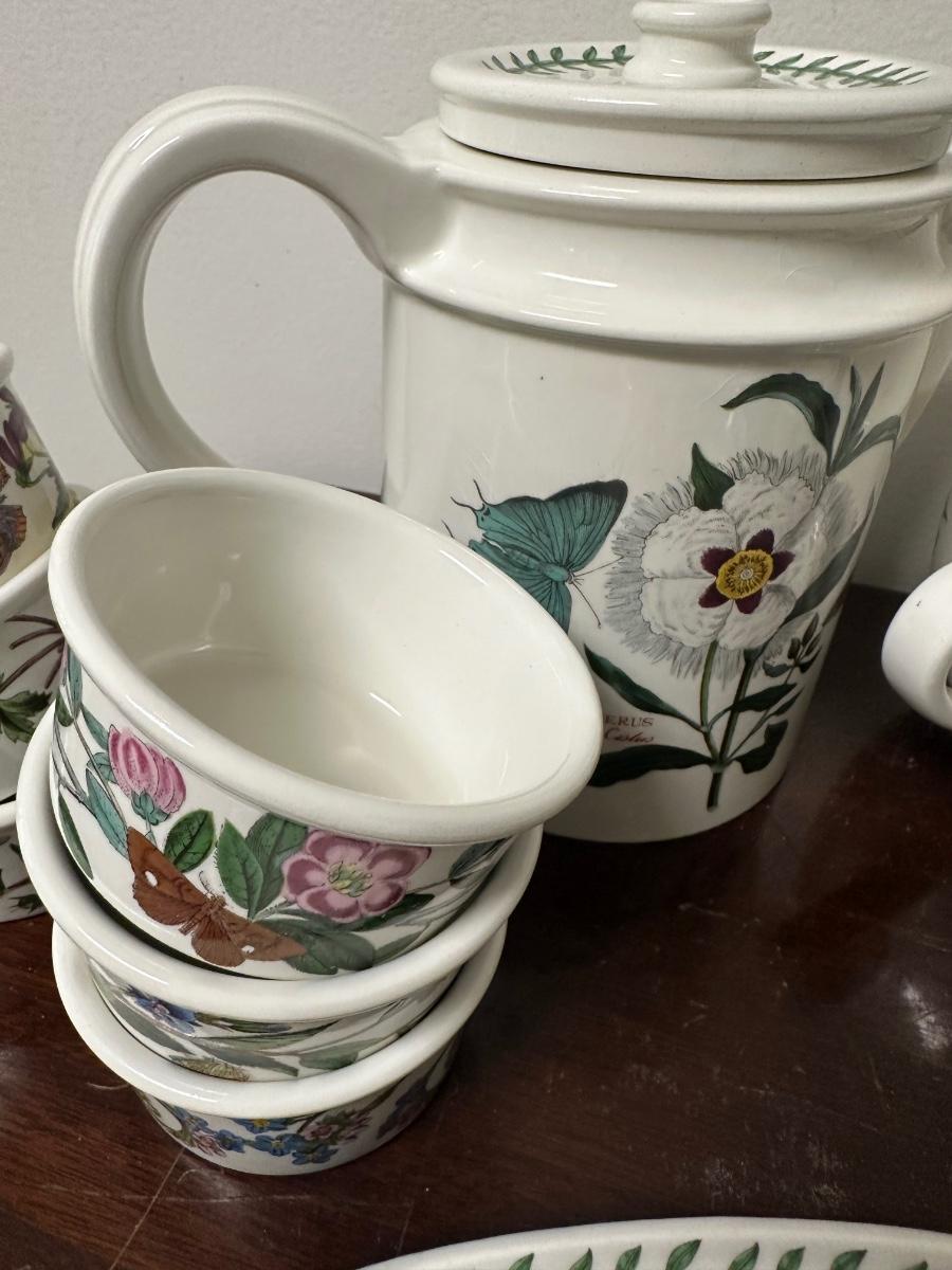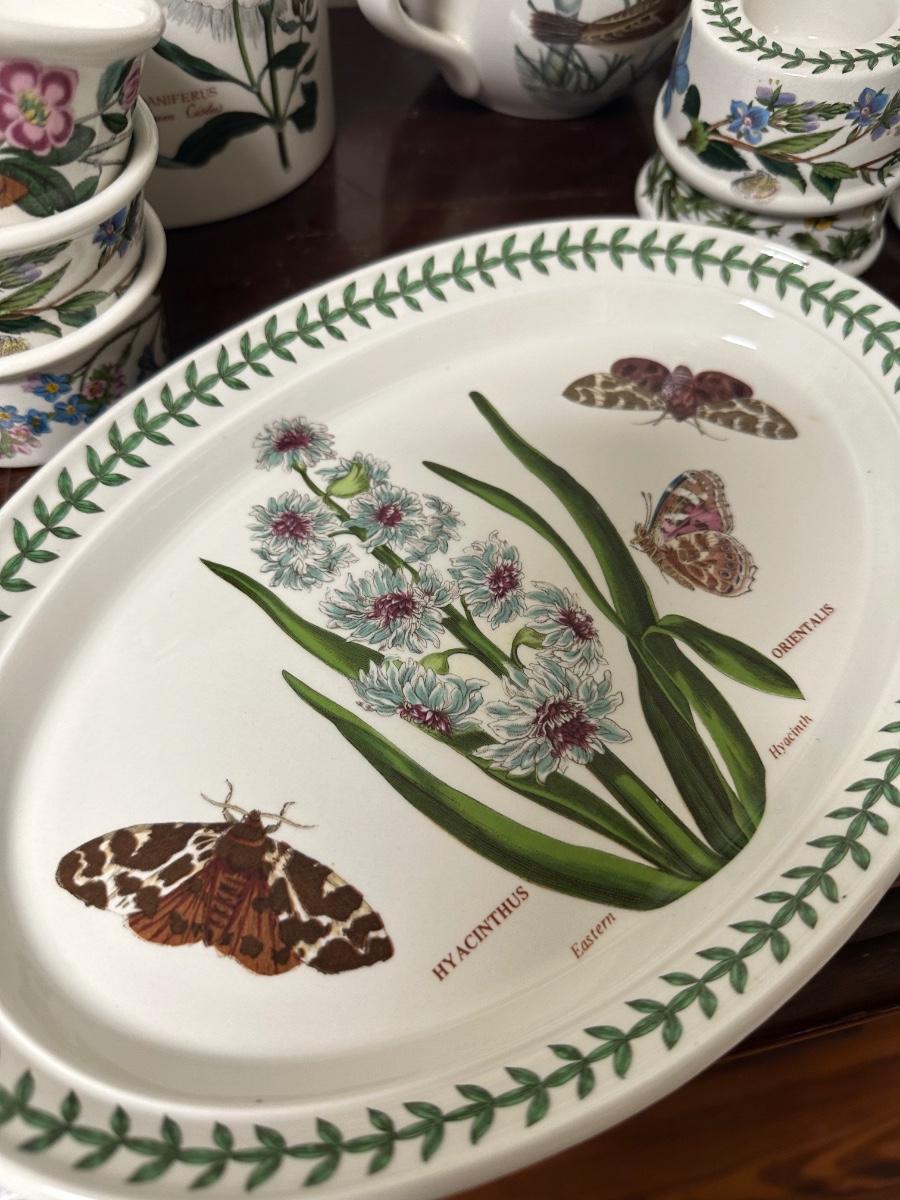 PORTMEIRION THE BOTANIC GARDEN PIECES 2 PLATTERS, 6 EGGS CUPS, 6 CUSTARD CUPS, PITCHER, BUTTER PLATE, CLAM SHELL DISHES & BONUS BIRDS OF BRITAIN LG MUG