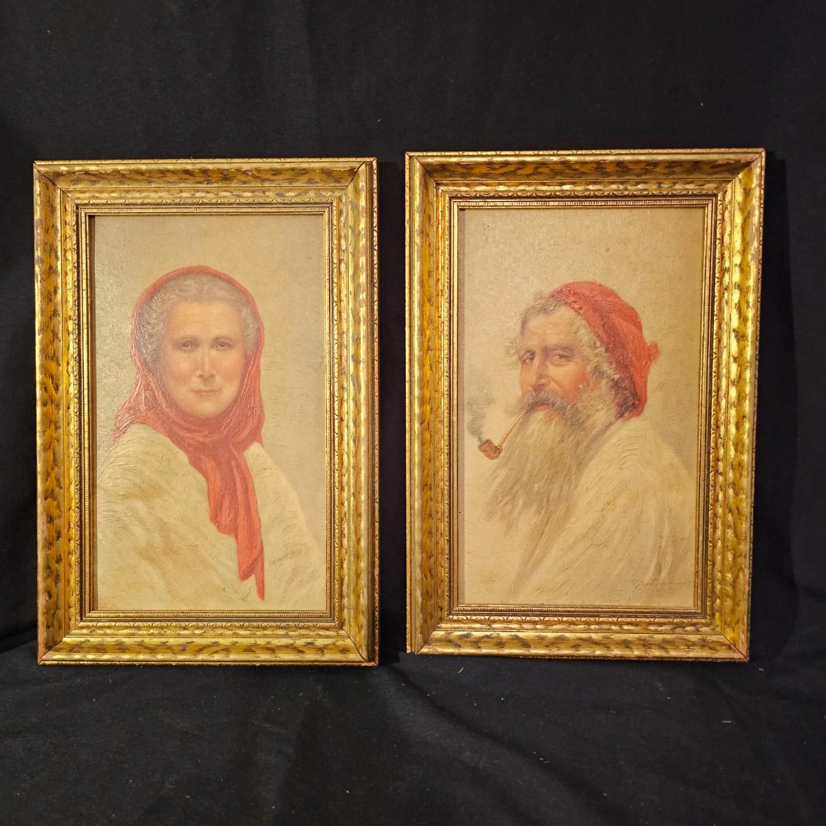 Old World looking man and woman prints in gold wood frames. Typical seating and pose for early images. Pictures measure 9.5" x 14". See photos for details. Shipping available. Shipping can be costly. We suggest contacting our preferred local shipping provider, Postage Express, with dimensions and getting an estimate before bidding: (828) 225-9250 or shipping@postageexpressnc.com.