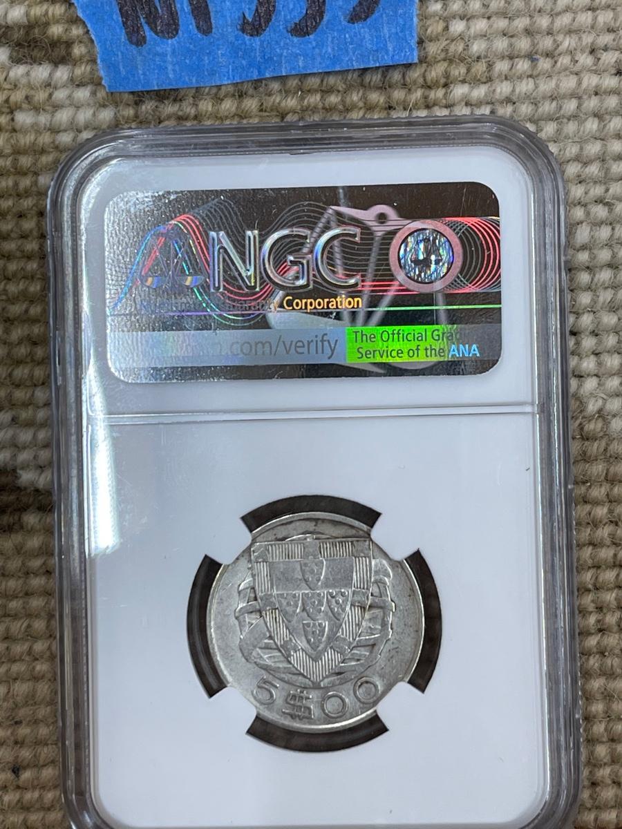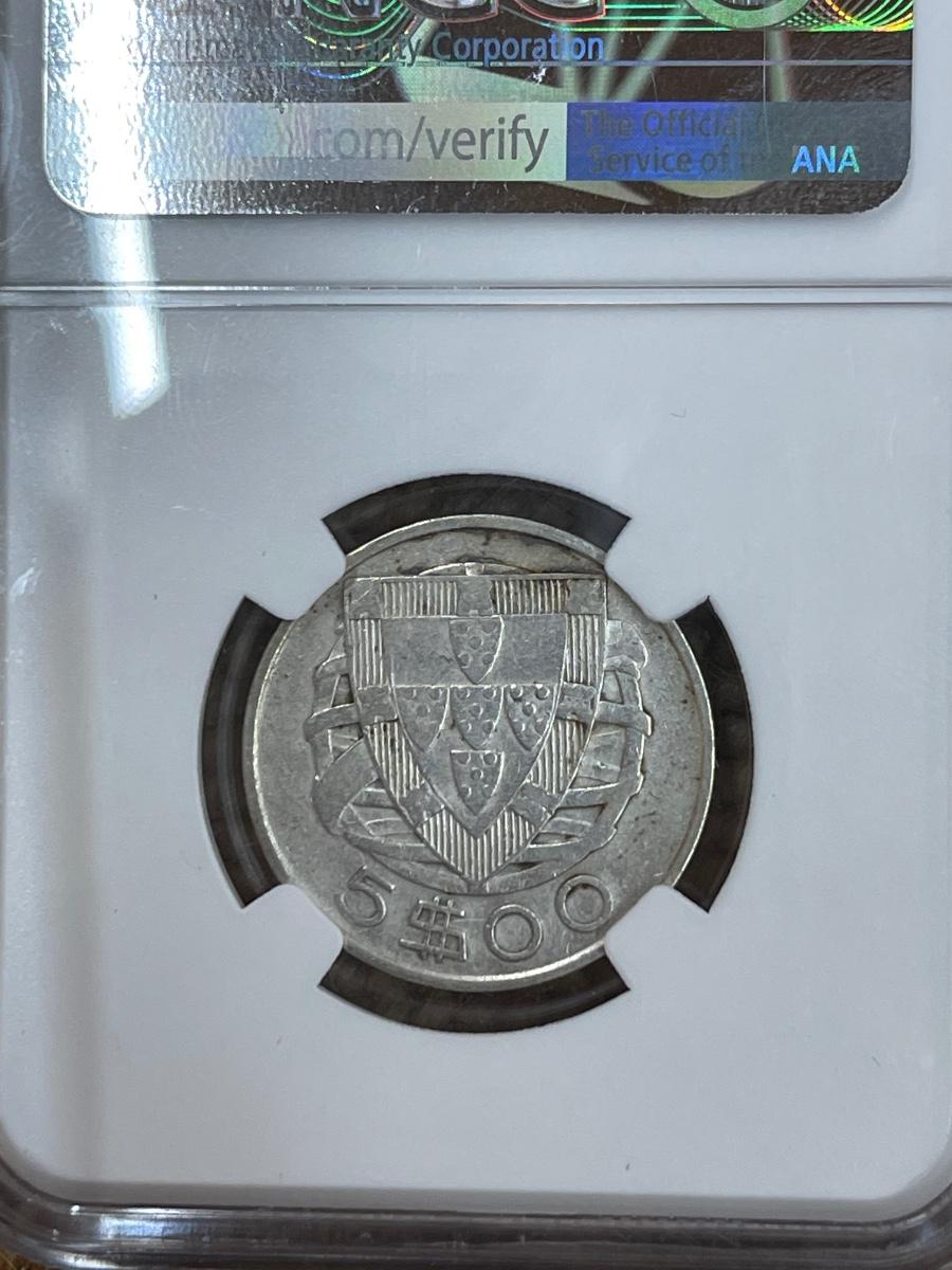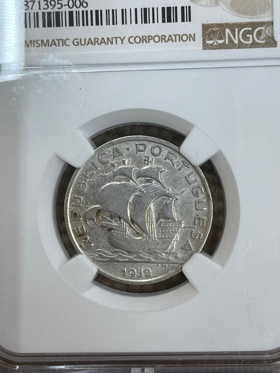 1932 Portugal 5 E NGC cert. XF details cleaned.