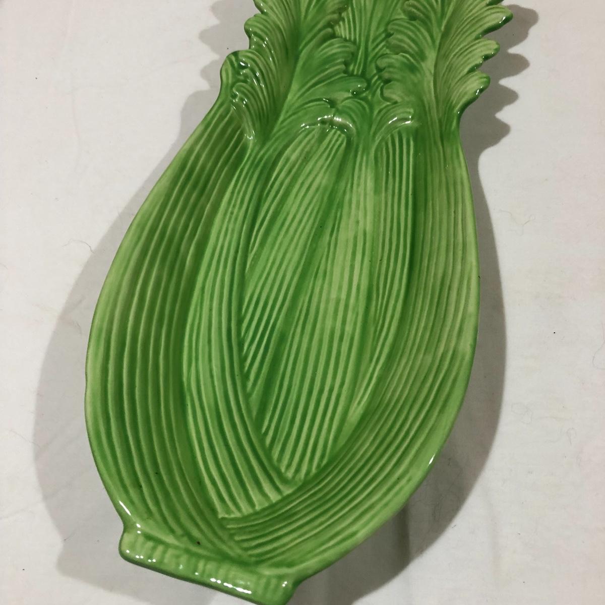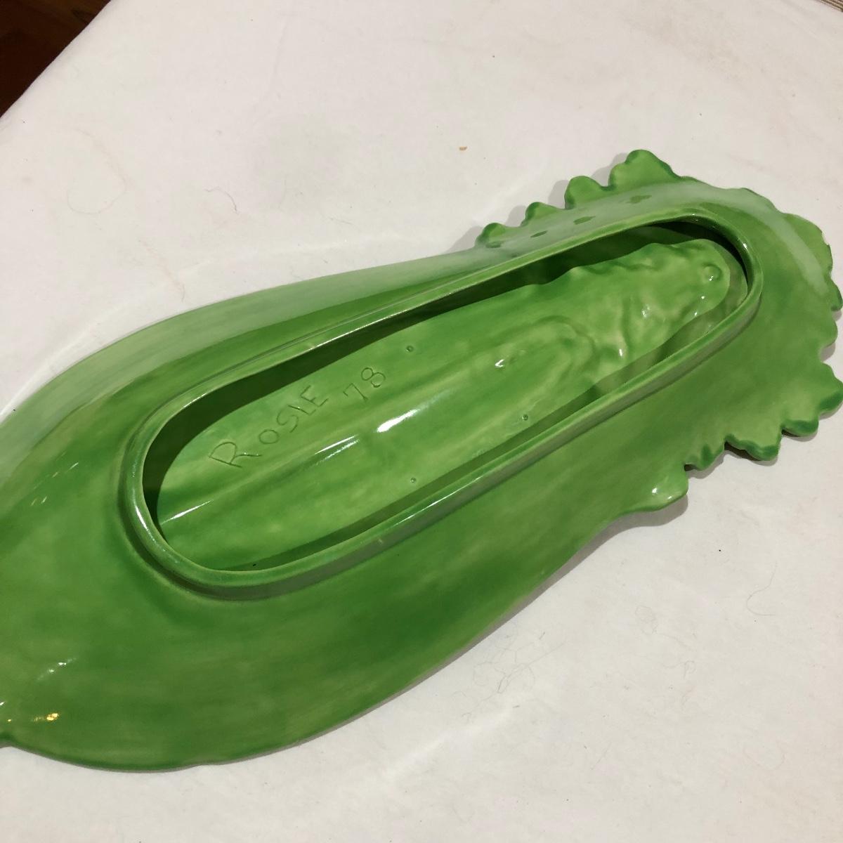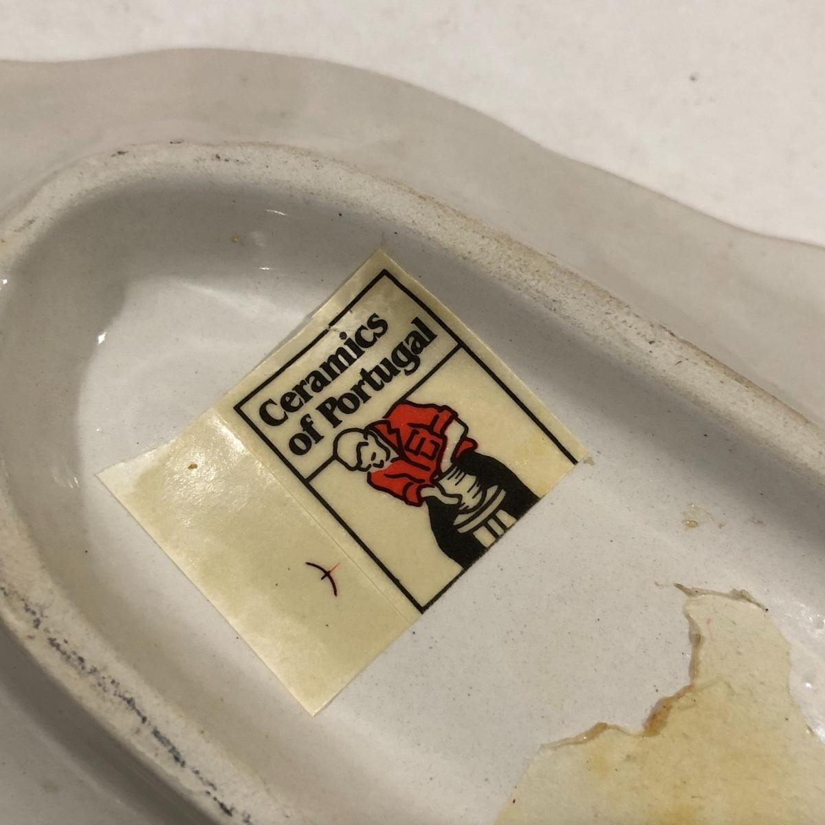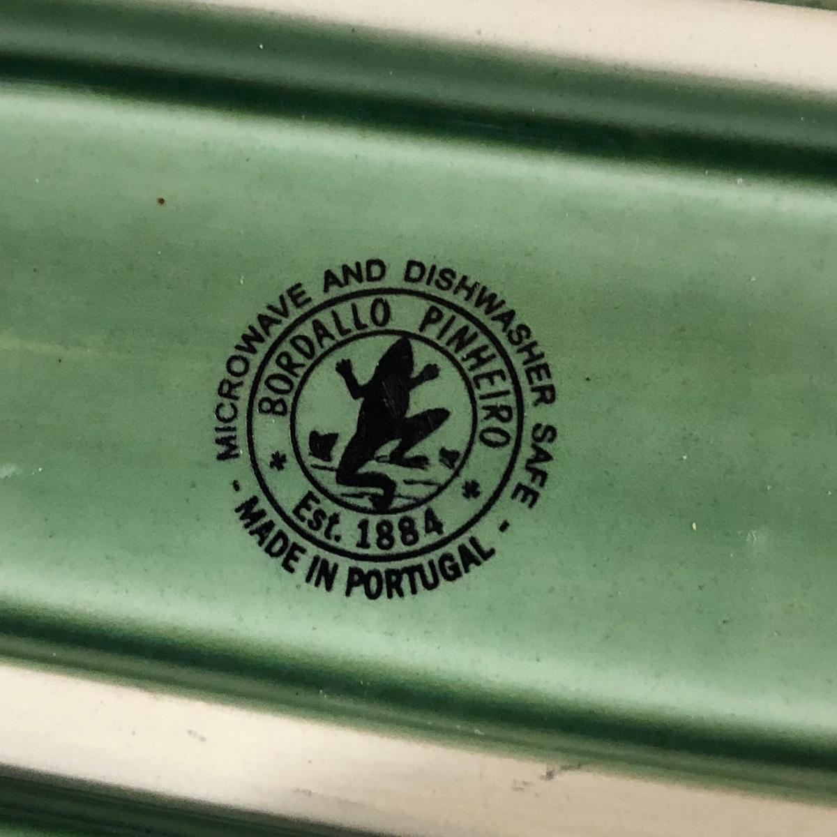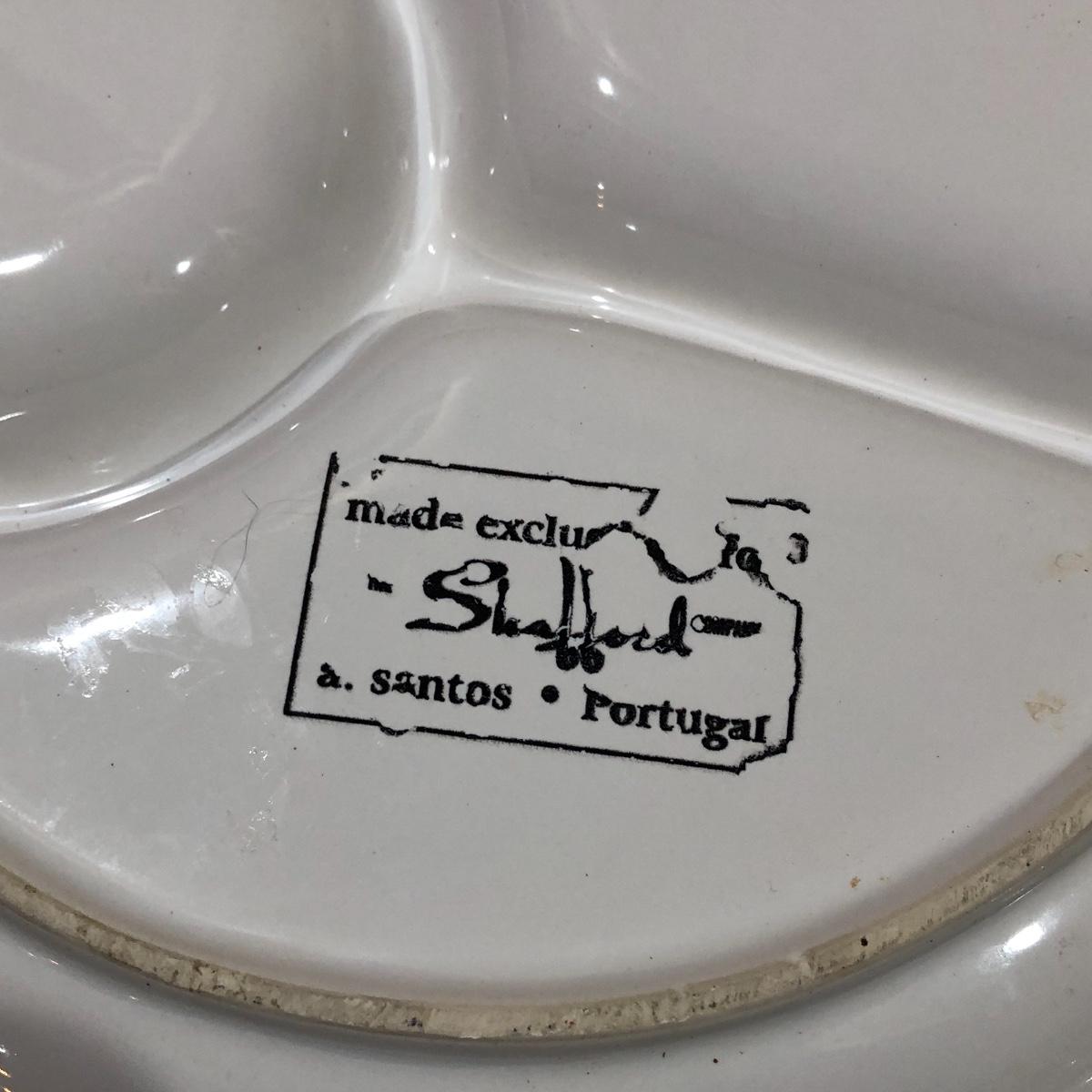 The Portuguese vegetable dishes are the celery dish (6.5” x 16.5”) marked Rosle 78, the oval pea appetizer dish (12.5” in diameter) marked A. Santos for Shafford and the seven corn on the cob trays, 6 marked Bordallo Pinheiro. Note one of the dishes is different than the other six. There are chips on the end of the celery dish and one small chip on the pea dish. The Hermetic spaghetti jar has a green glass bottom and is 10.5” tall and 4” in diameter. There is no ring seal. There is also a cookie max cookie press that looks as if it has never been used. And finally there are four apple measuring cups. Shipping Available.