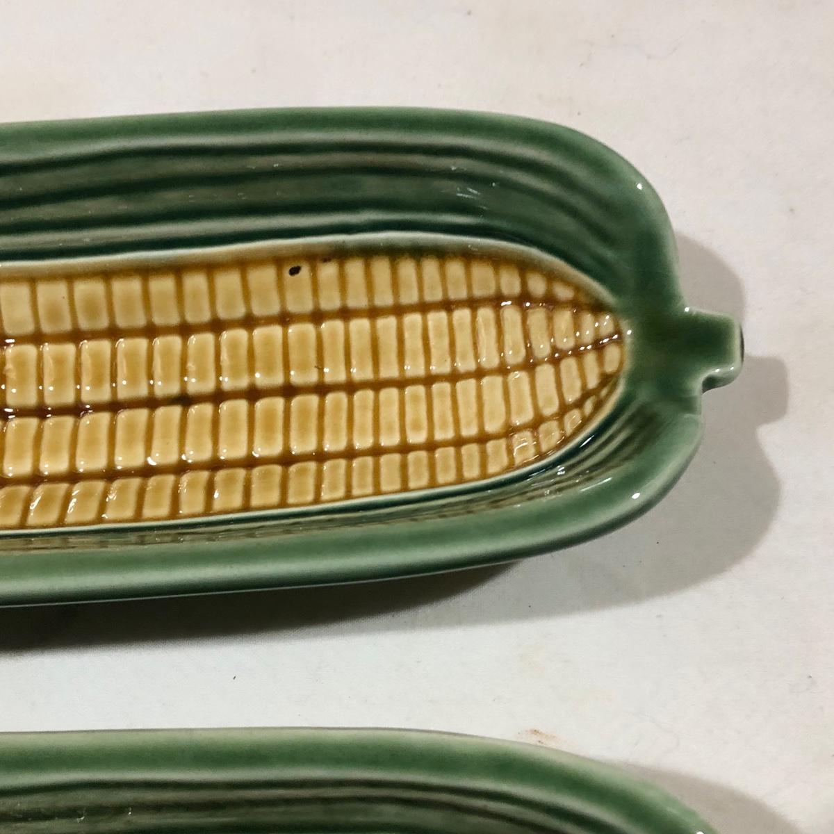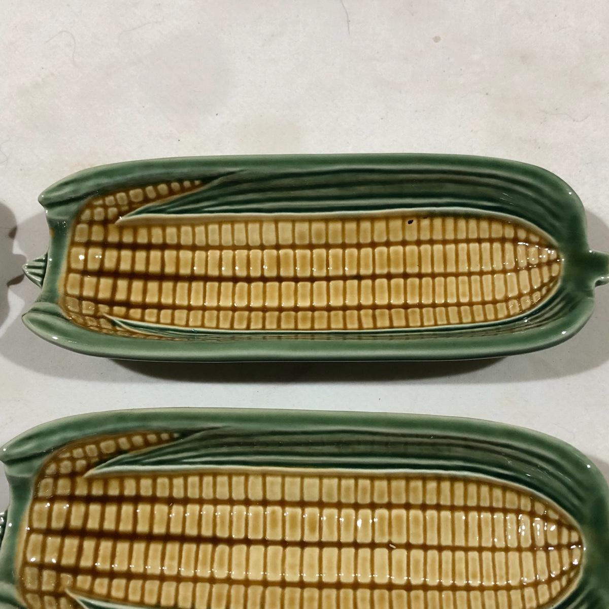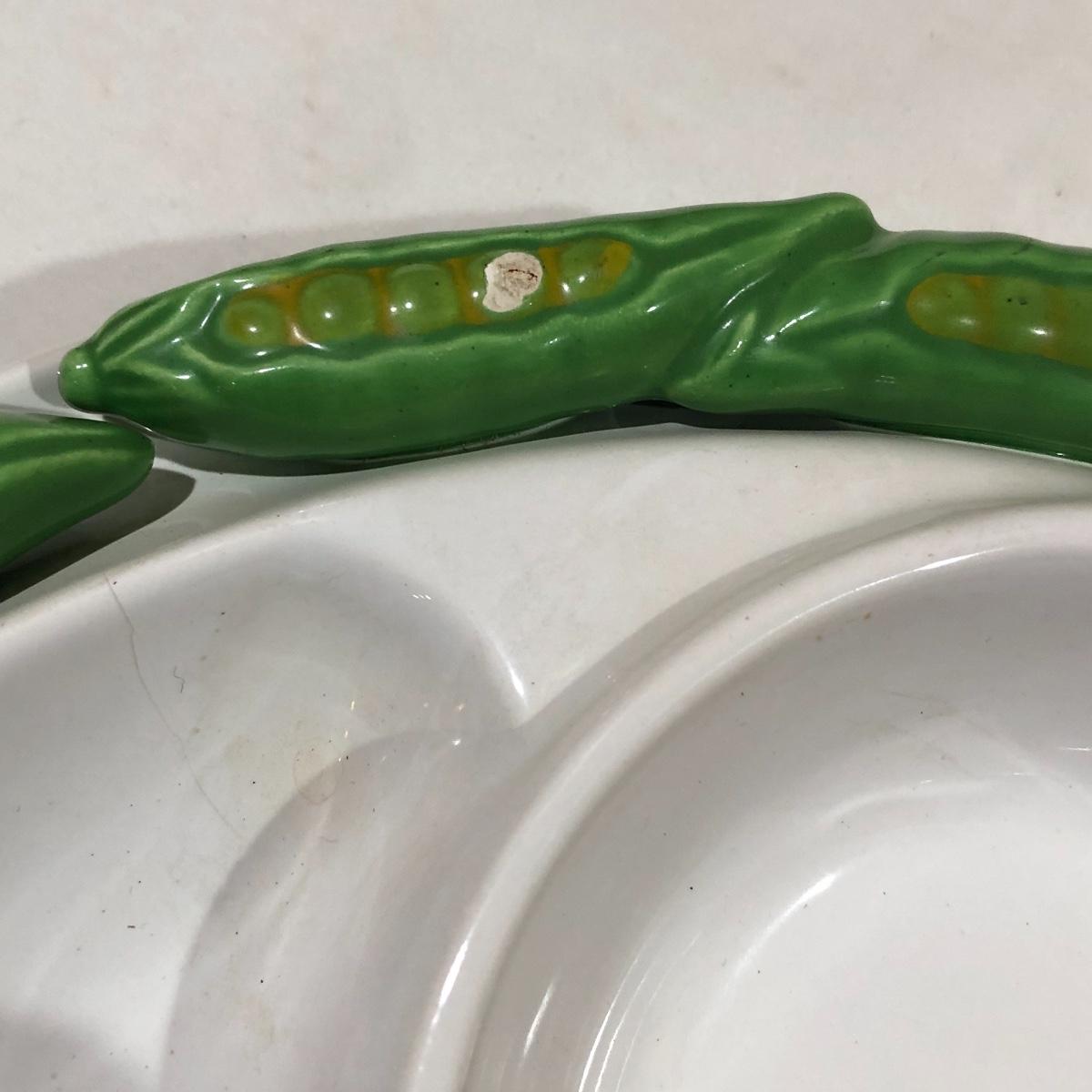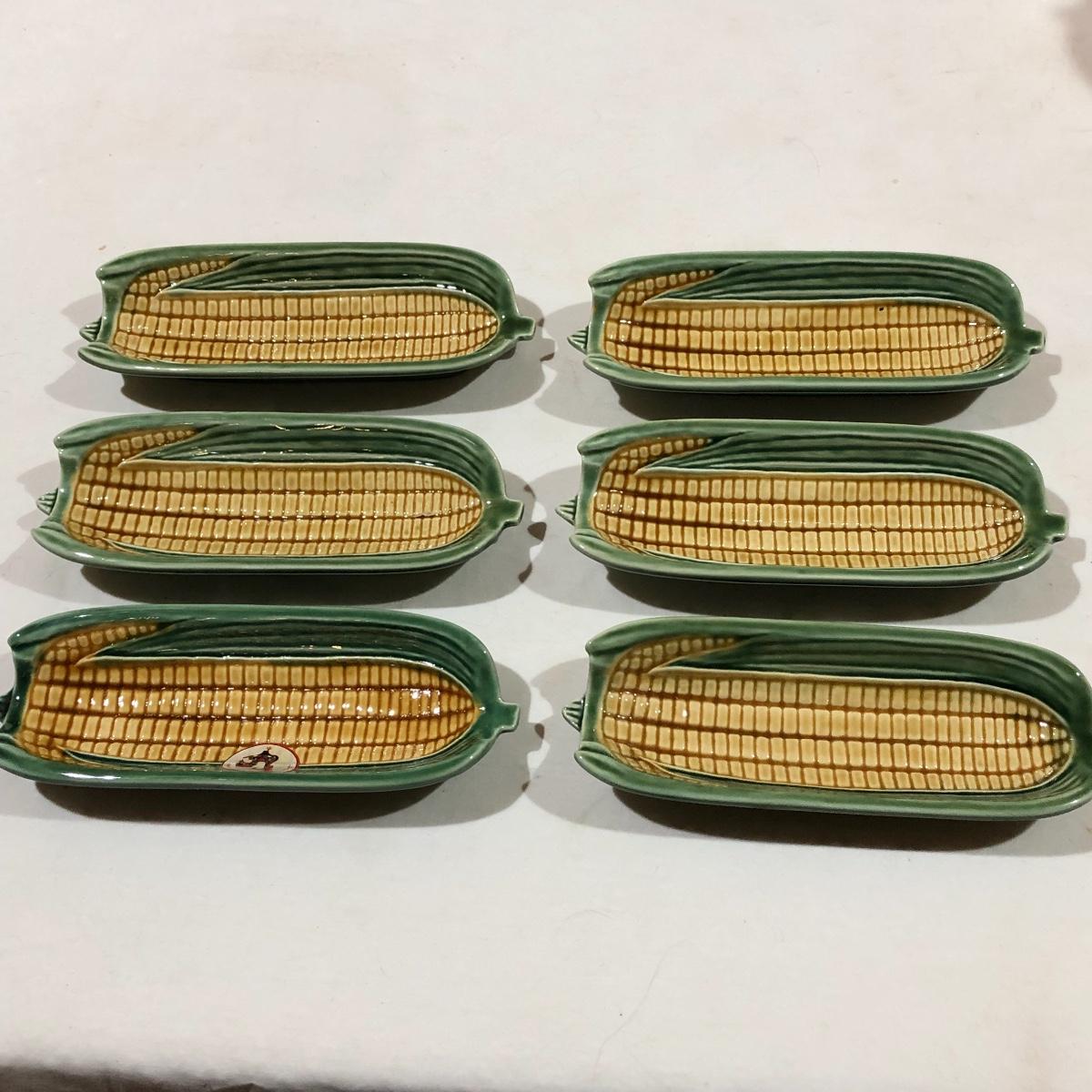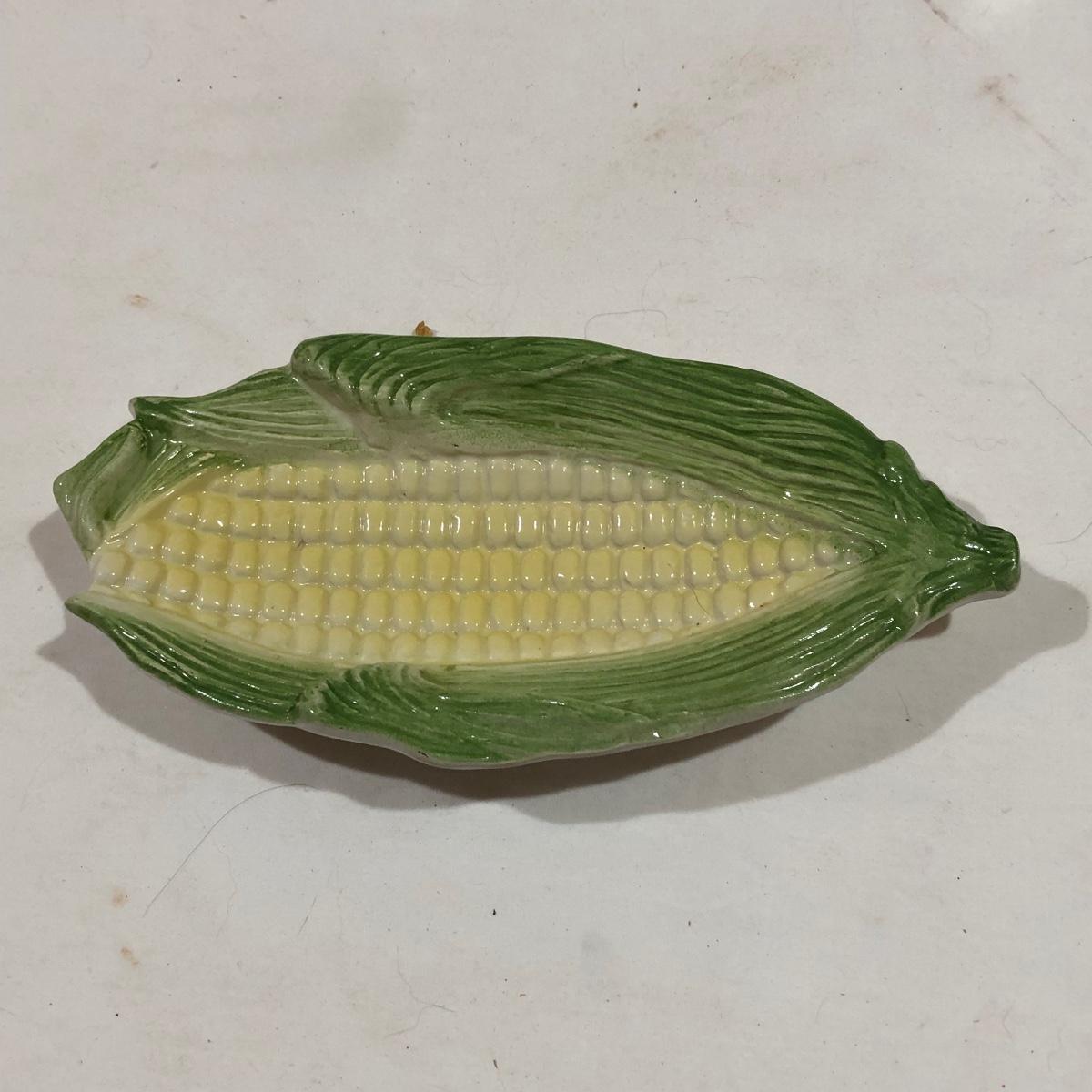 The Portuguese vegetable dishes are the celery dish (6.5” x 16.5”) marked Rosle 78, the oval pea appetizer dish (12.5” in diameter) marked A. Santos for Shafford and the seven corn on the cob trays, 6 marked Bordallo Pinheiro. Note one of the dishes is different than the other six. There are chips on the end of the celery dish and one small chip on the pea dish. The Hermetic spaghetti jar has a green glass bottom and is 10.5” tall and 4” in diameter. There is no ring seal. There is also a cookie max cookie press that looks as if it has never been used. And finally there are four apple measuring cups. Shipping Available.